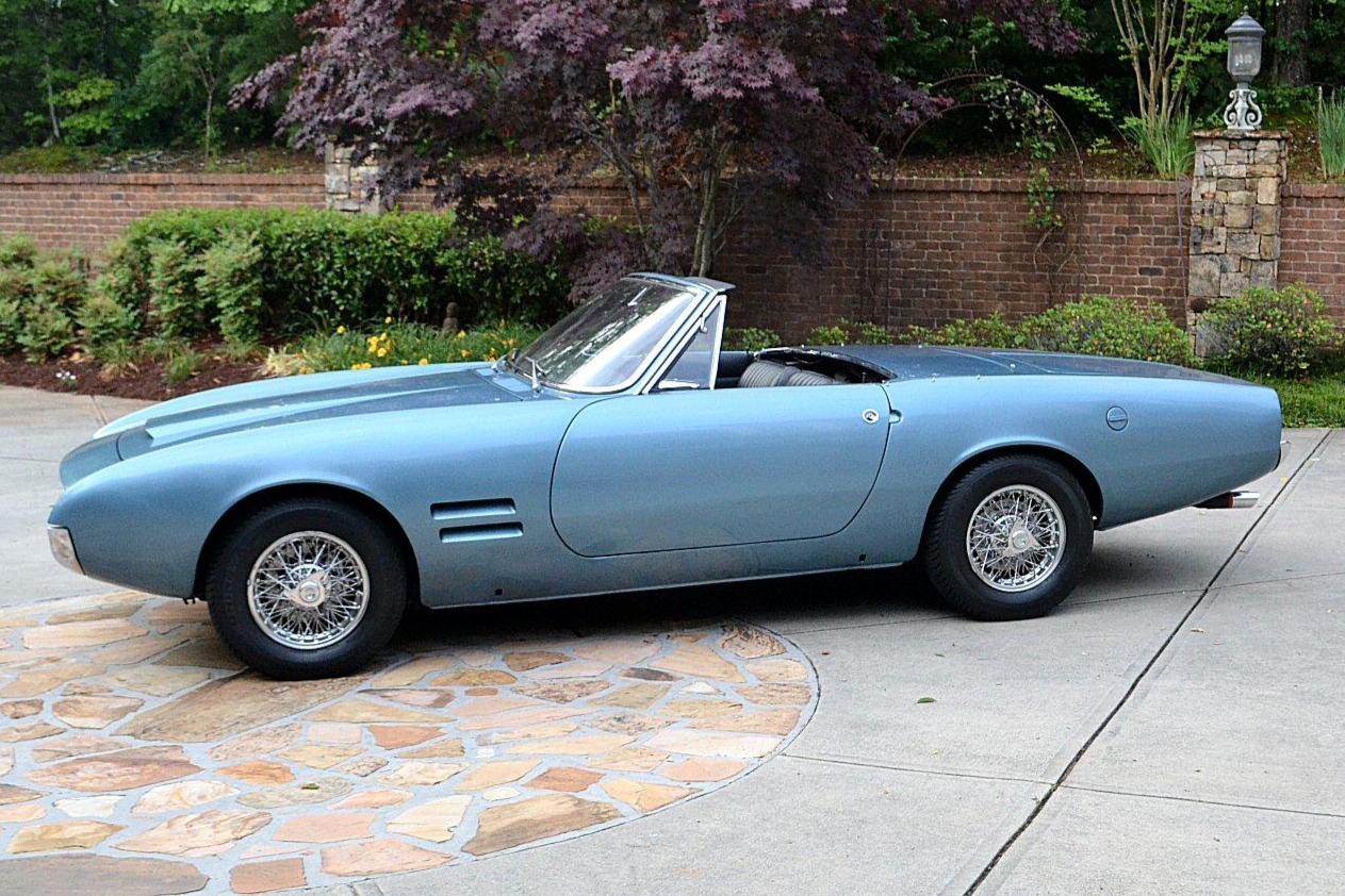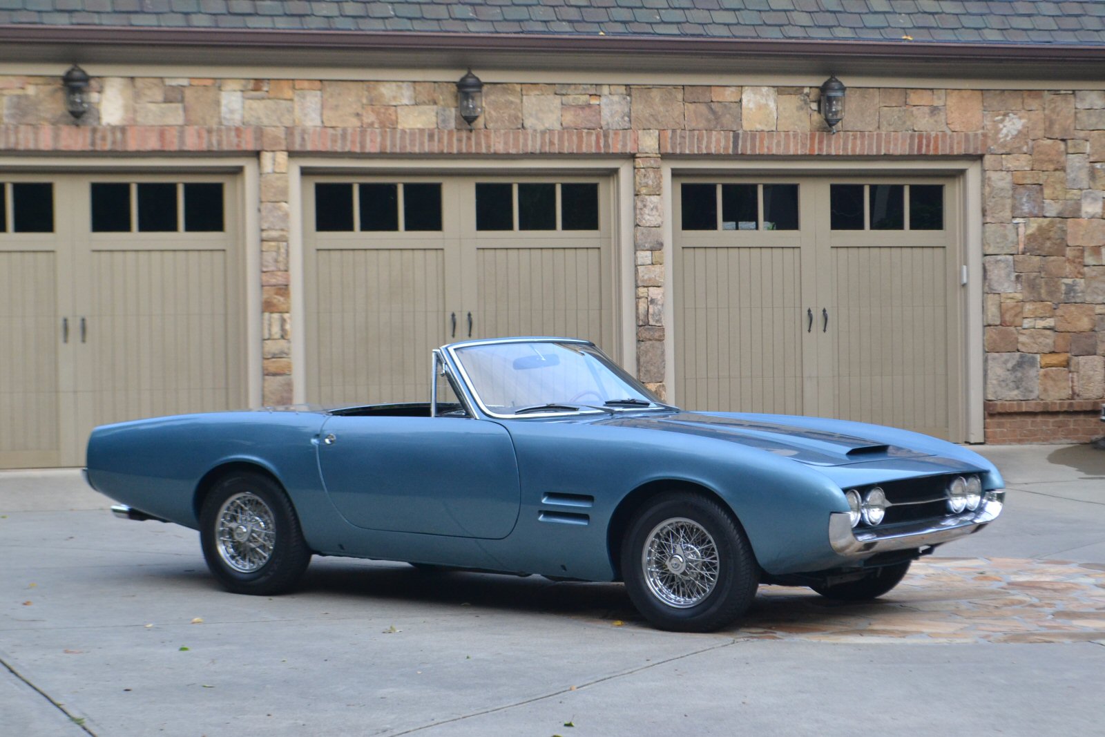 The car was optioned new with a body-colored hardtop, and is also equipped with a dark brown convertible top that is shown raised in the gallery below. Chrome 14″ Borrani knock-off wire wheels were mounted with 195/75 Uniroyal Tiger Paw AWP II tires in 2017. The sway bar links as well as the lower control arms and ball joints were replaced the same year. Braking is handled by power-assisted 11.5″ Kelsey-Hayes discs up front and drums out back. The power steering system was rebuilt in 2016.