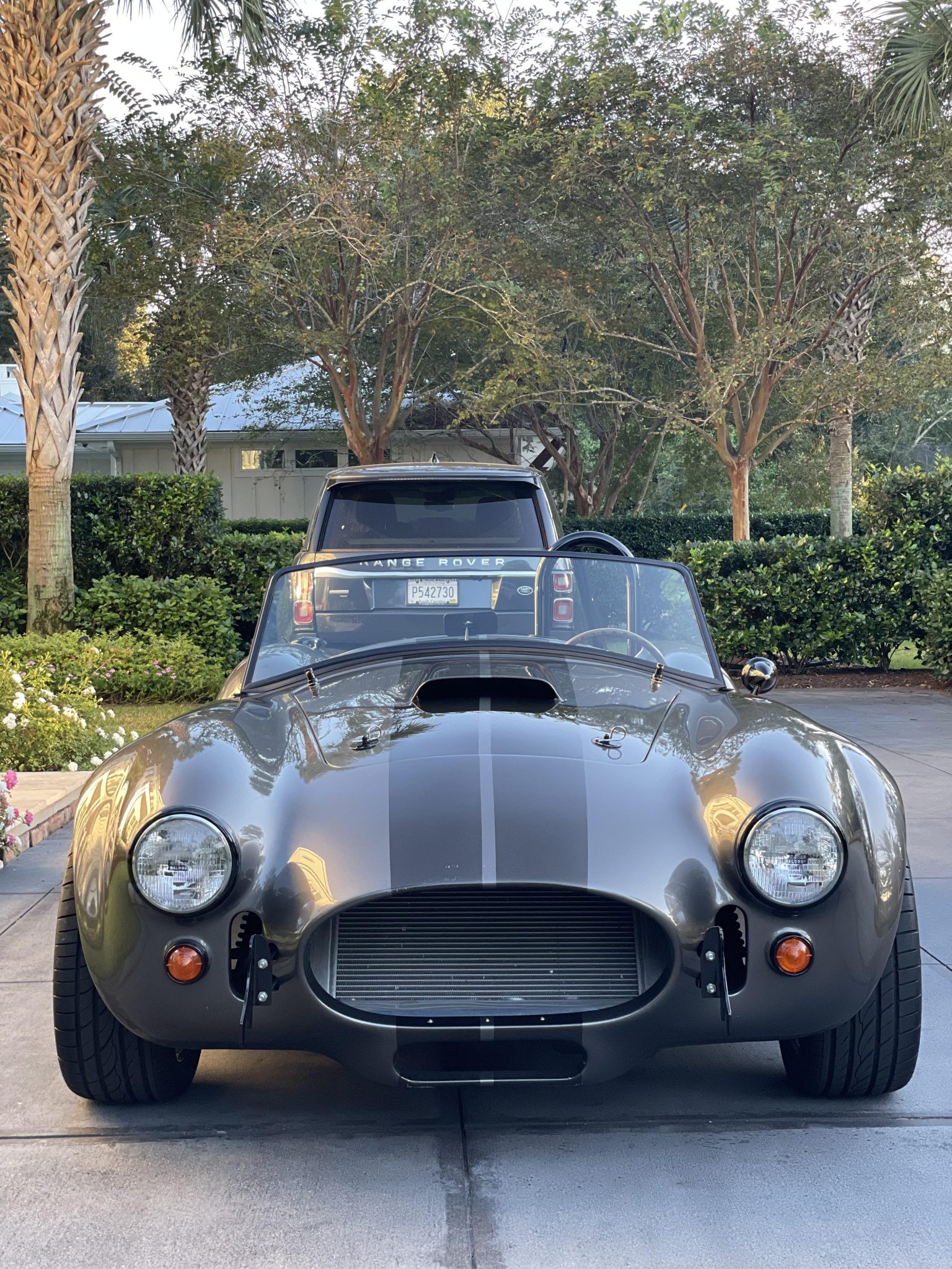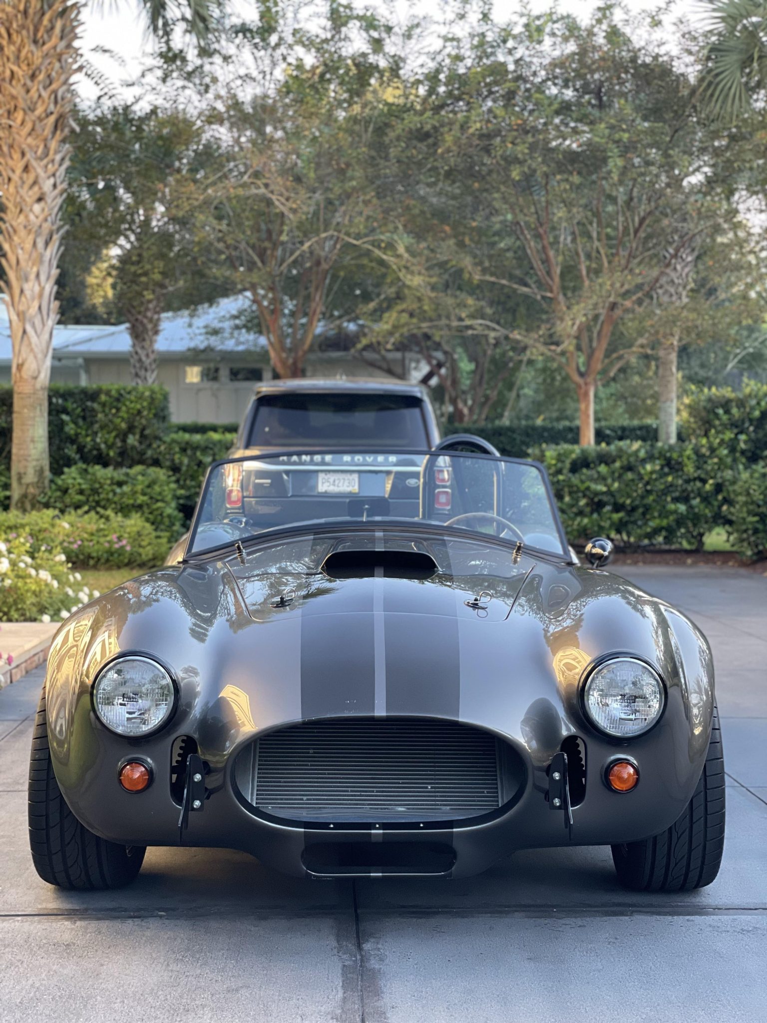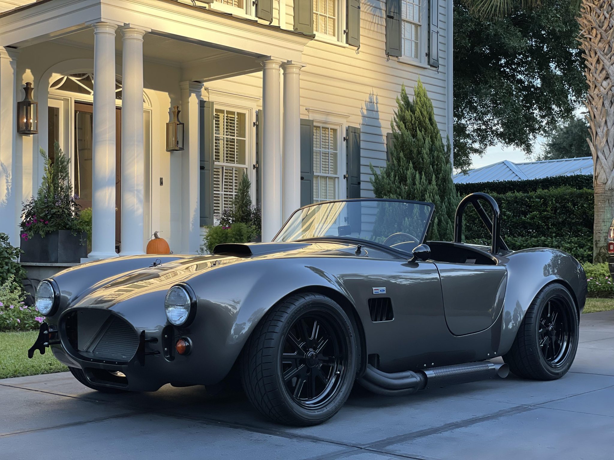 Halibrand-style 17″ wheels are powder coated black and wear Sumitomo HTR ZII tires. The car is equipped with power steering and features disc brakes all around.