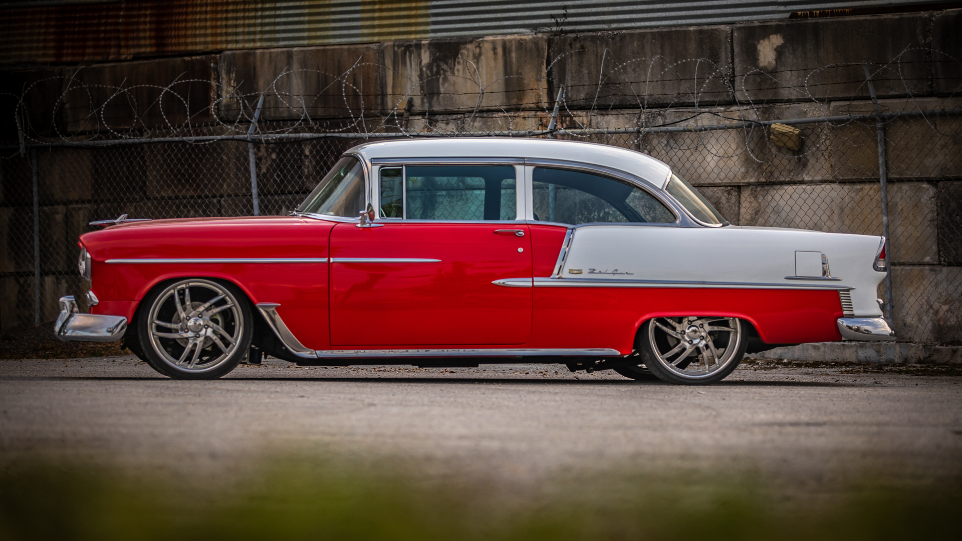 Chrome 20″ Billet Specialities wheels wear Sumitomo tires. The front suspension has reportedly been modified with components from Classic Performance Products, and a four-link rear suspension with coilovers and a power rack and pinion steering system are installed. Stopping power is provided by a Wilwood master cylinder and four-wheel disc brakes.