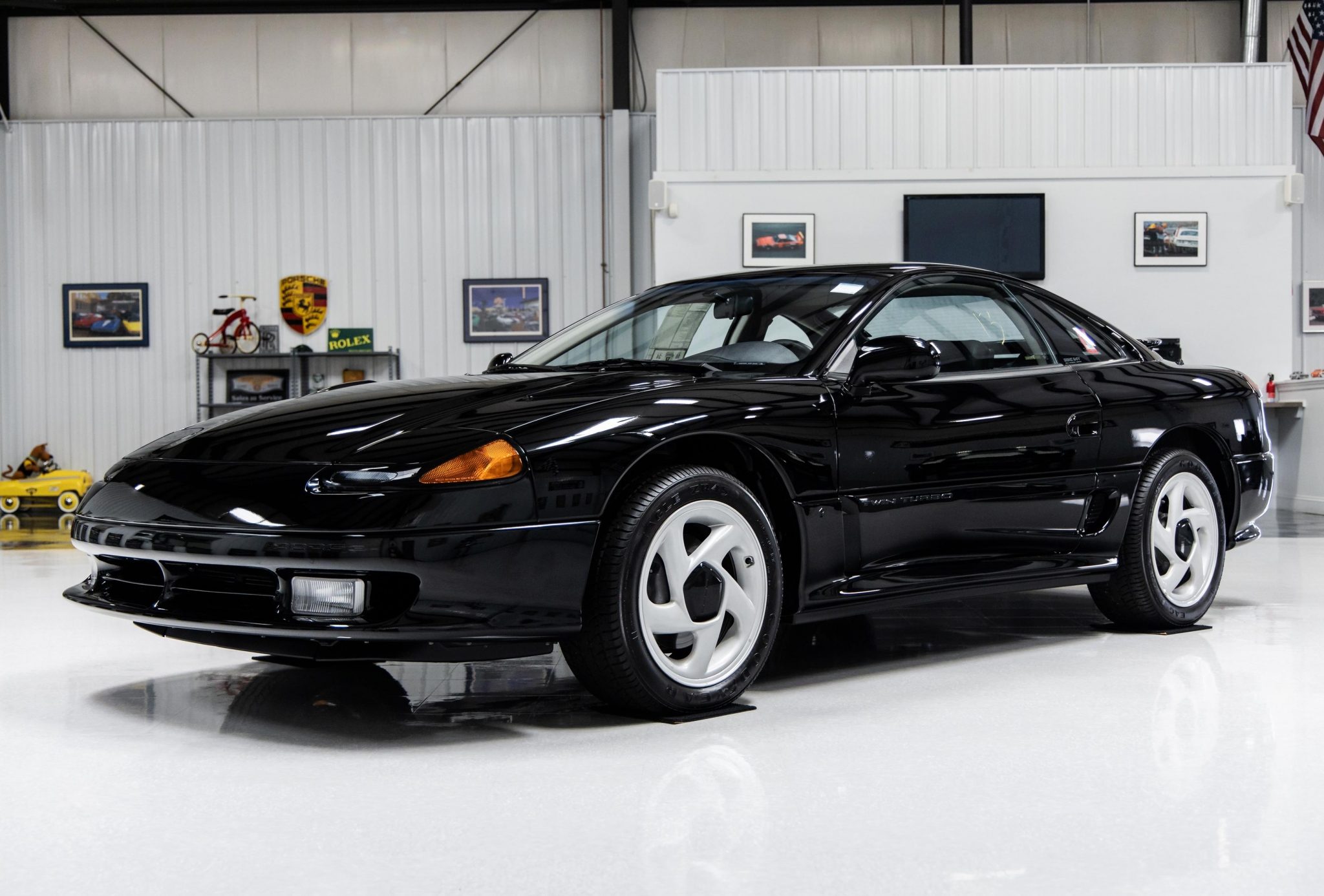 Five-spoke 17” alloy wheels wear black center caps and Goodyear Eagle ZR45 tires sized 245/45 all around. Four-wheel power-assisted steering and disc brakes with ABS were standard equipment. A brake fluid flush was performed in May 2021.