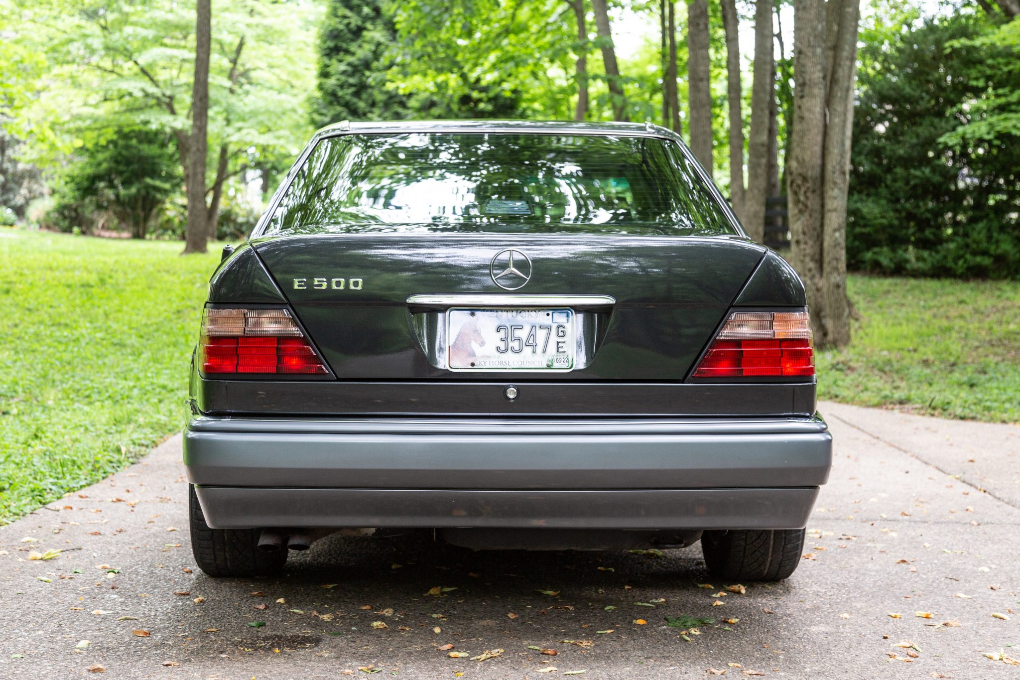 Factory 16″ eight-hole wheels are mounted with 225/55 Continental ExtremeContact DWS Tuned tires that show date codes from 2011. E500 equipment includes four-wheel disc brakes as well as a self-leveling suspension system. Records indicate that power-steering components and the front stabilizer bar bushings were replaced in 2018.