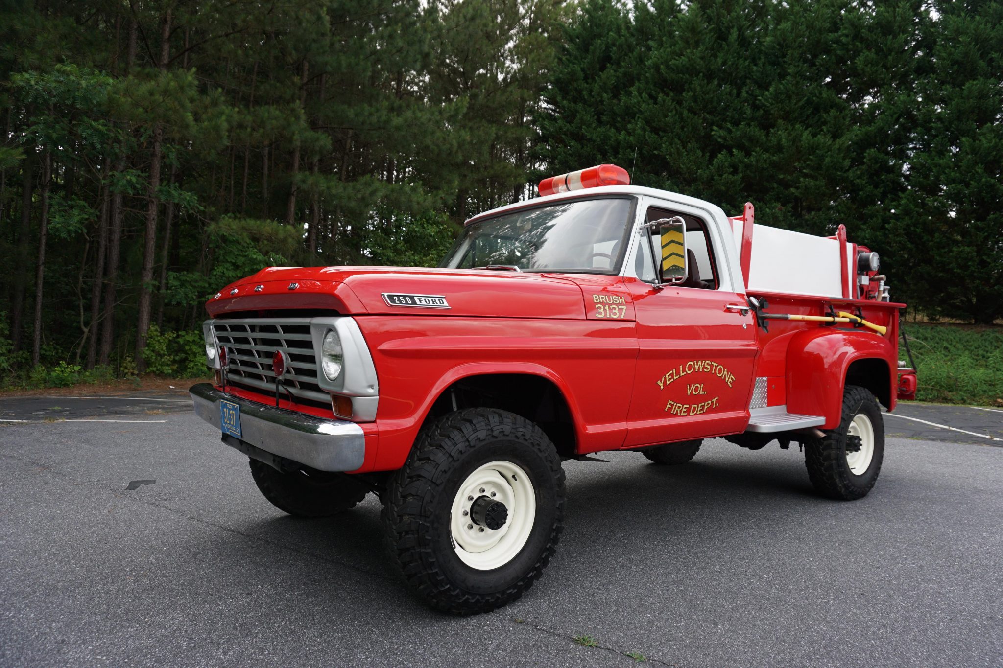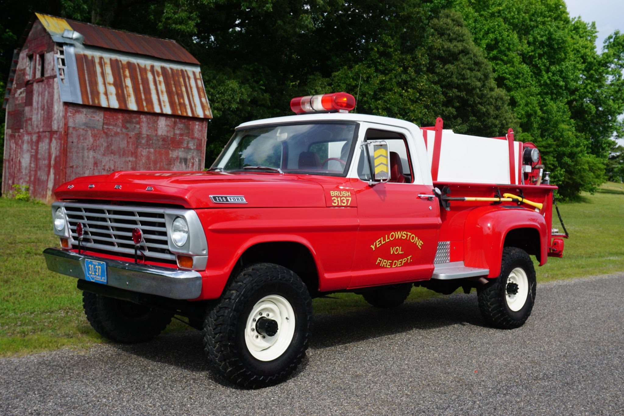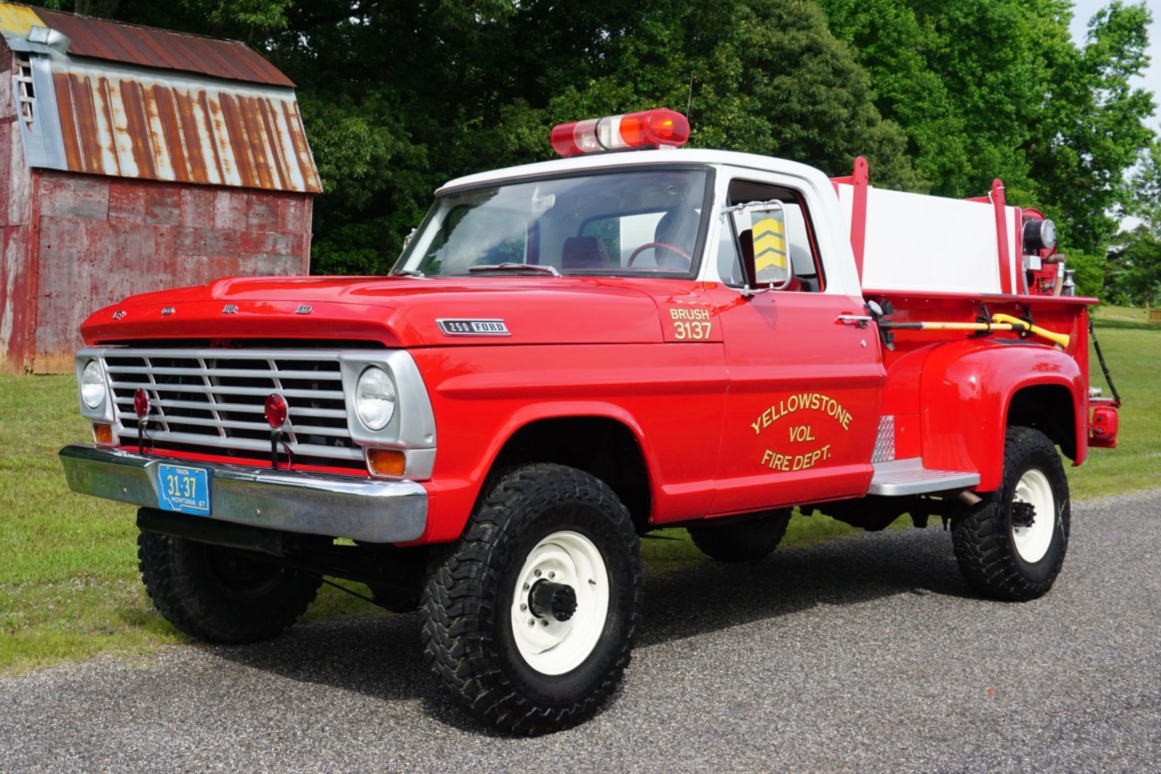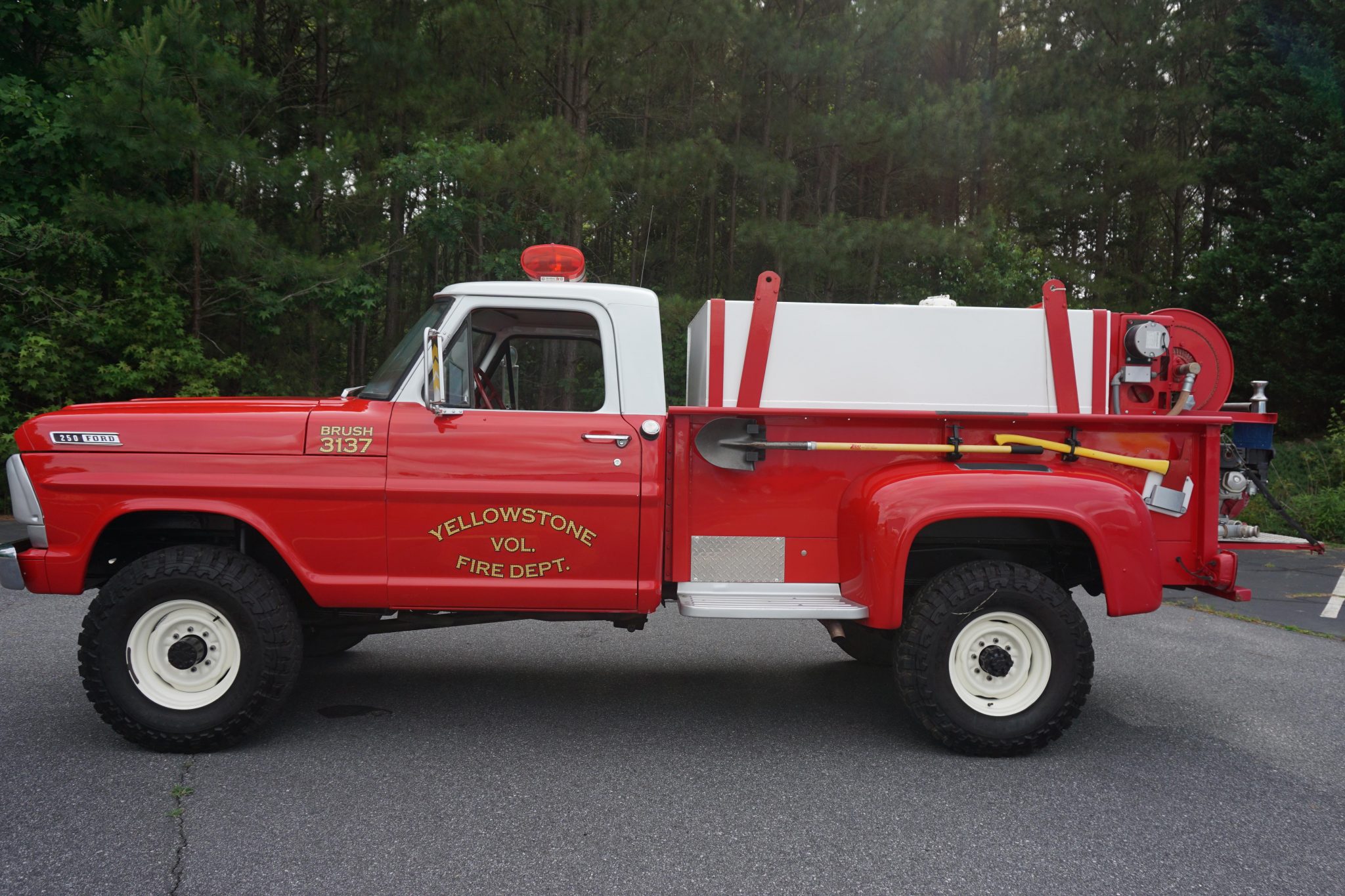 Additional equipment includes a hose reel, emergency lights and sirens, shovels, axes, and an auxiliary fuel canister. White 16″ steel wheels are mounted with 255/85 Toyo Open Country M/T tires.