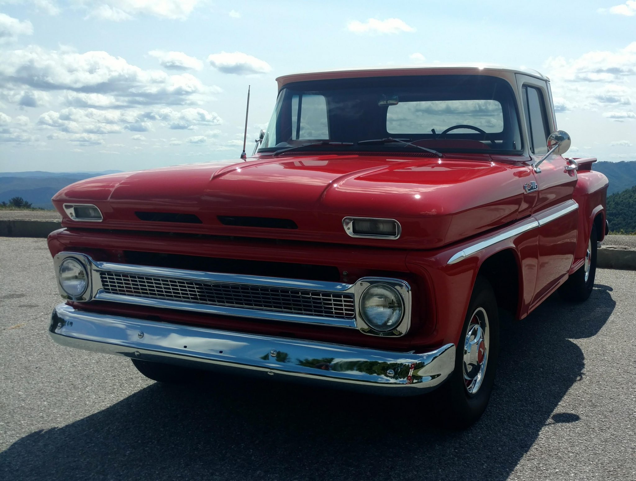 Red painted 15″ steel wheels with polished hubcaps are fitted with 235/75 Milestar Touring and General Grabber tires. The brake shoes, drums, wheel cylinders, steering mechanisms, steering box, and master cylinder have reportedly been replaced under current ownership. A rear air bag suspension kit and replacement shocks are included in the sale.