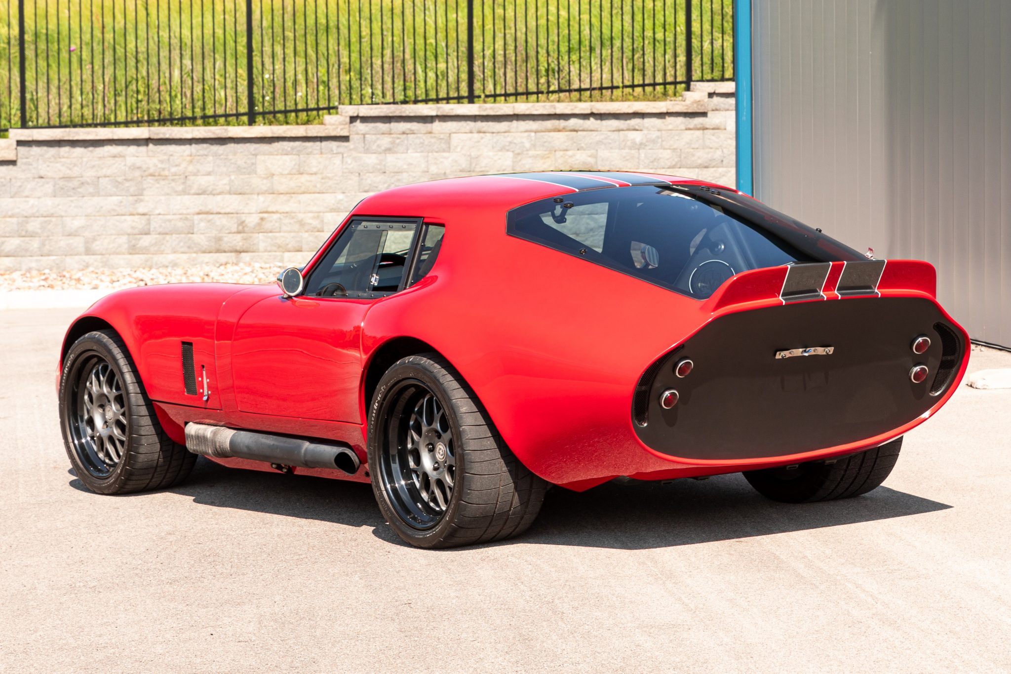 Staggered-width 18″ HRE wheels wear 315/30 front and 355/30 rear BF Goodrich g-Force Rival tires showing 2013 date codes. The independent suspension system features adjustable coilovers, and braking power is supplied by Wilwood six-piston calipers over carbon-ceramic rotors at all four corners. The front brake pads were replaced in May 2018.