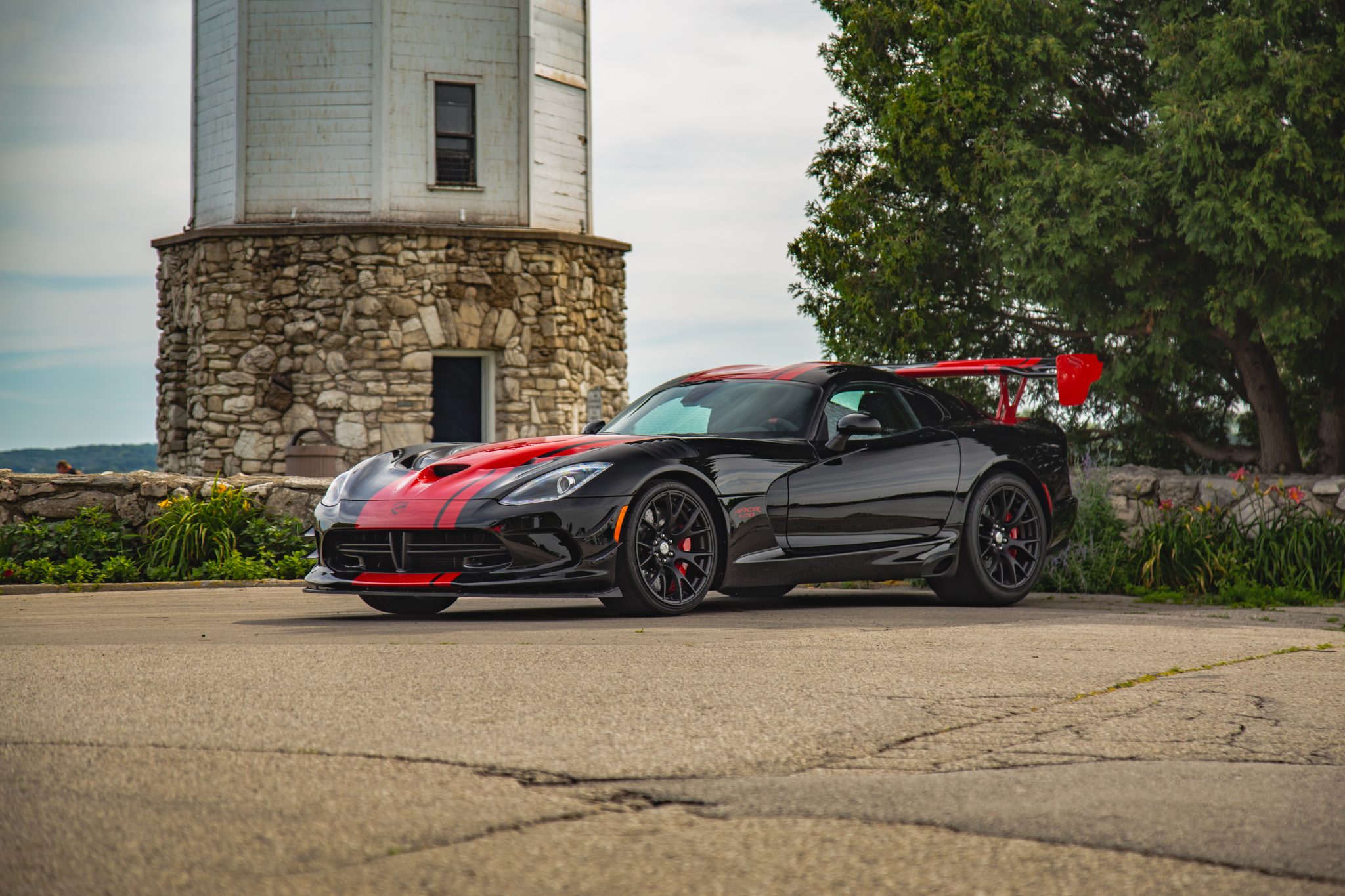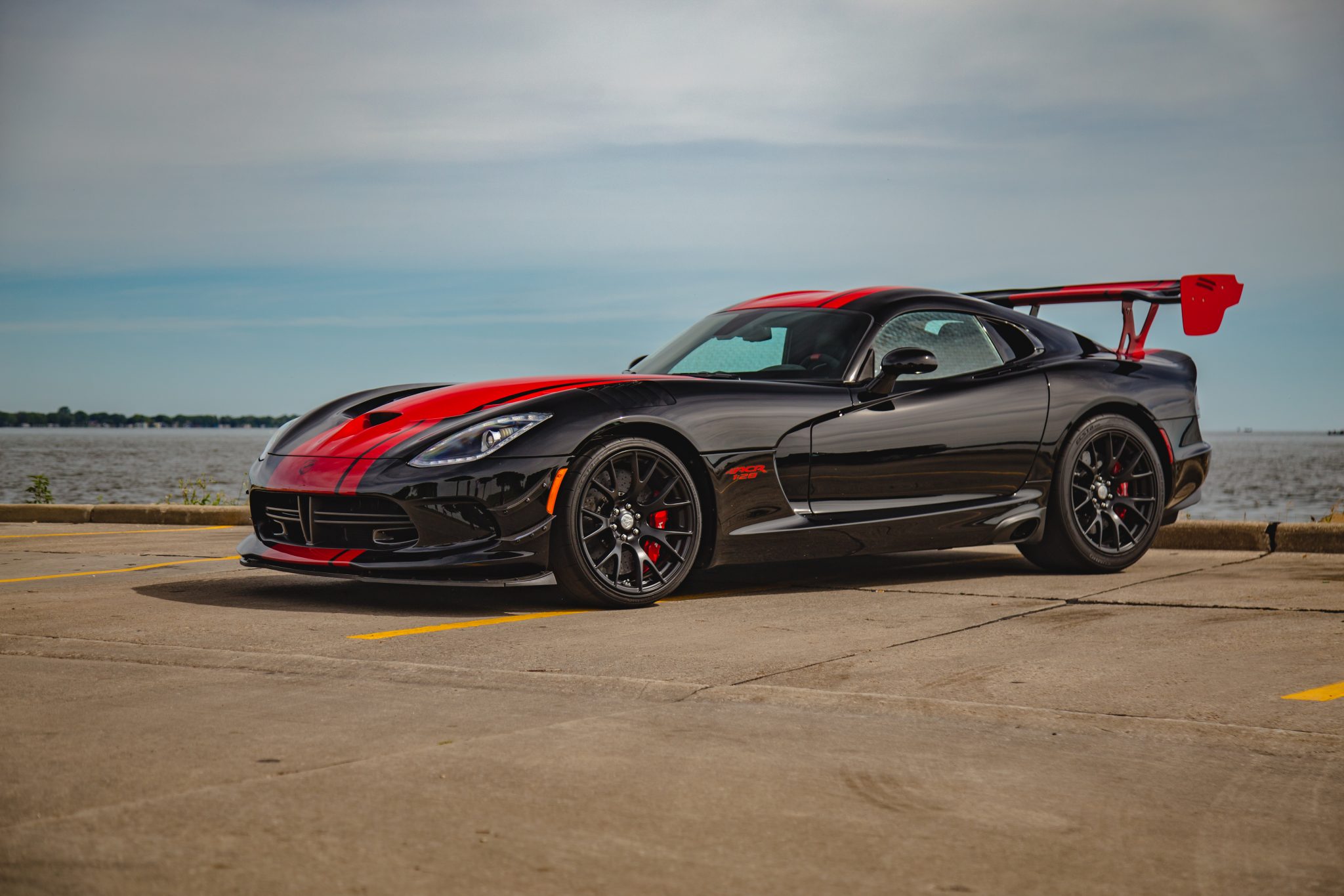 Gloss black–finished 19″ ACR wheels are wrapped in 295/25 front and 355/30 rear ACR-spec Kumho Ecsta V720 tires. The car is equipped with 10-way manually adjustable suspension, and driving aids include electronic launch control, five-mode electronic stability control, and all-speed traction control. Stopping power is provided by Brembo carbon-ceramic brakes with red-finished calipers.