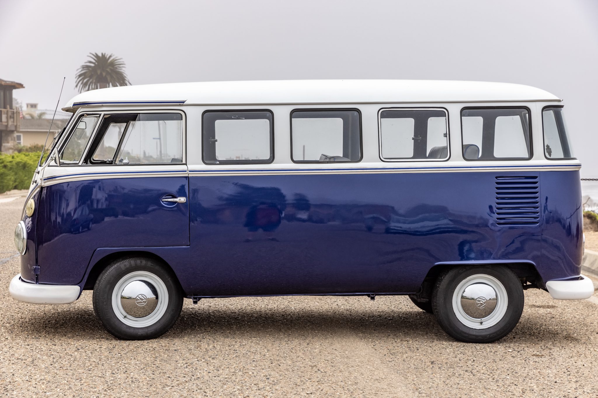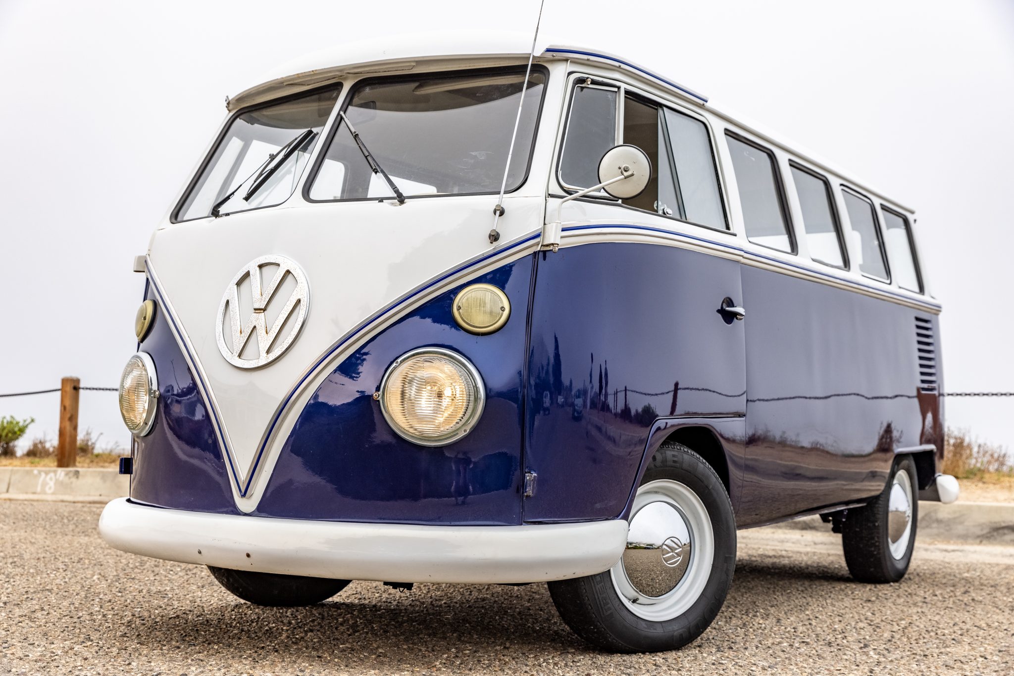 White-finished 14″ steel wheels wear Volkswagen-branded hubcaps and are wrapped in 175/80 Pirelli and 185R14C Goodyear tires. The front suspension has been lowered and the tires, brakes, and shocks are said to be due for service.