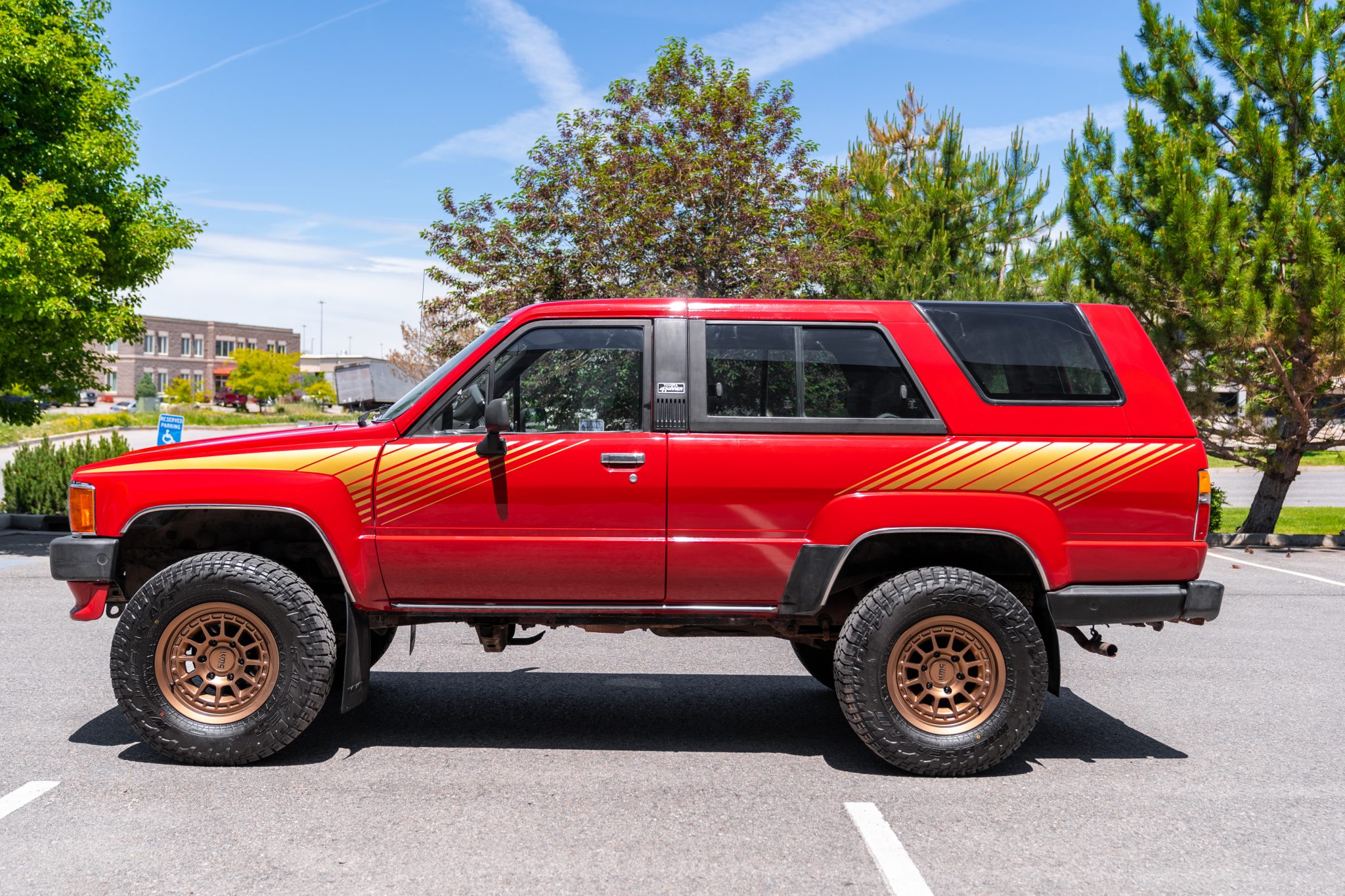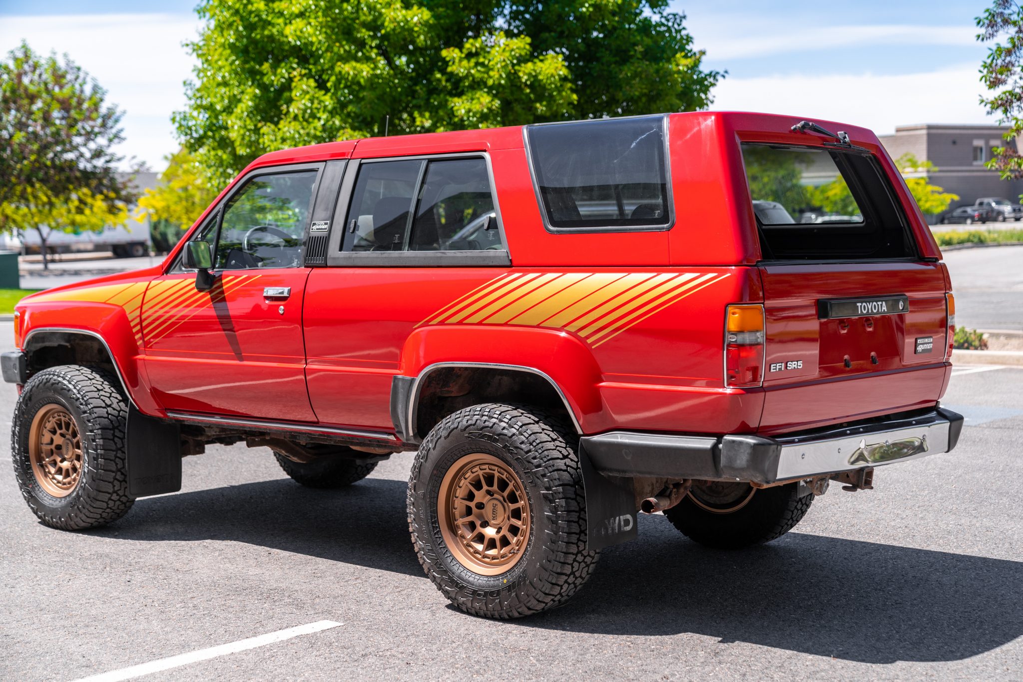Bronze finished 16″ KMC wheels are fitted with 265/70 Falken Wildpeak A/T tires. The removed wheels are said to be included in the sale.