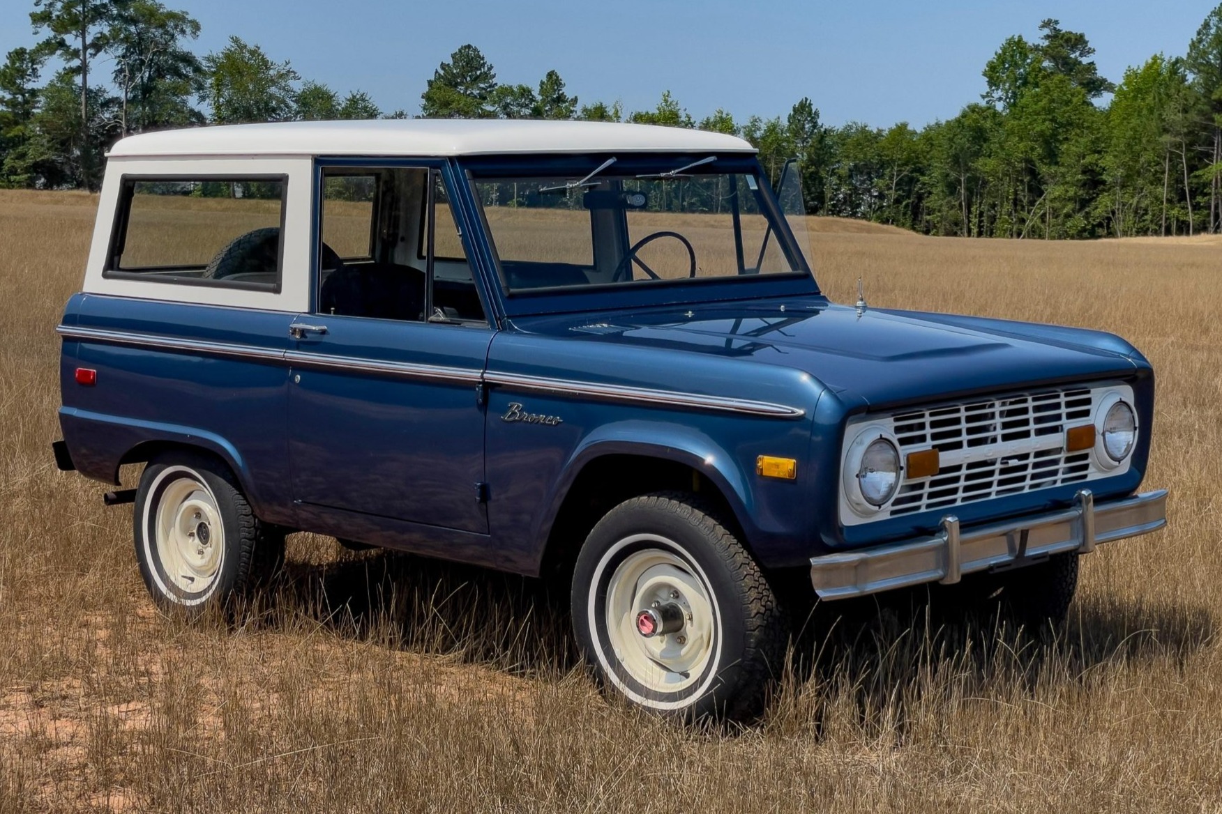 Cream 15″ steel wheels and are mounted with whitewall tires. The truck features manually locking front hubs and four-wheel drum brakes that are said to have been serviced in 2021.