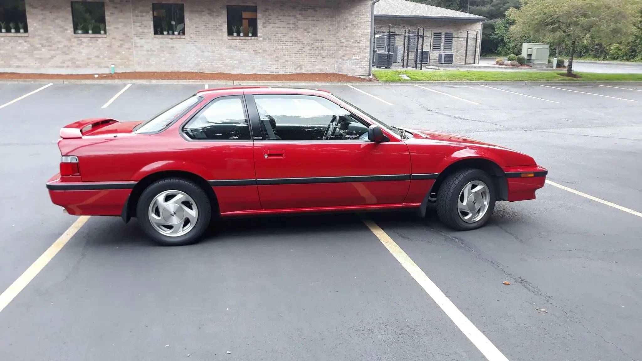 Factory 14″ alloy wheels wear 195/60 BFGoodrich Super Sport tires. The four-wheel-steering system is comprised of a shaft-driven planetary gearbox that manipulates the rear wheel toe angle based on steering angle. Braking is provided by four-wheel discs. A scuff on one wheel is shown in the gallery.