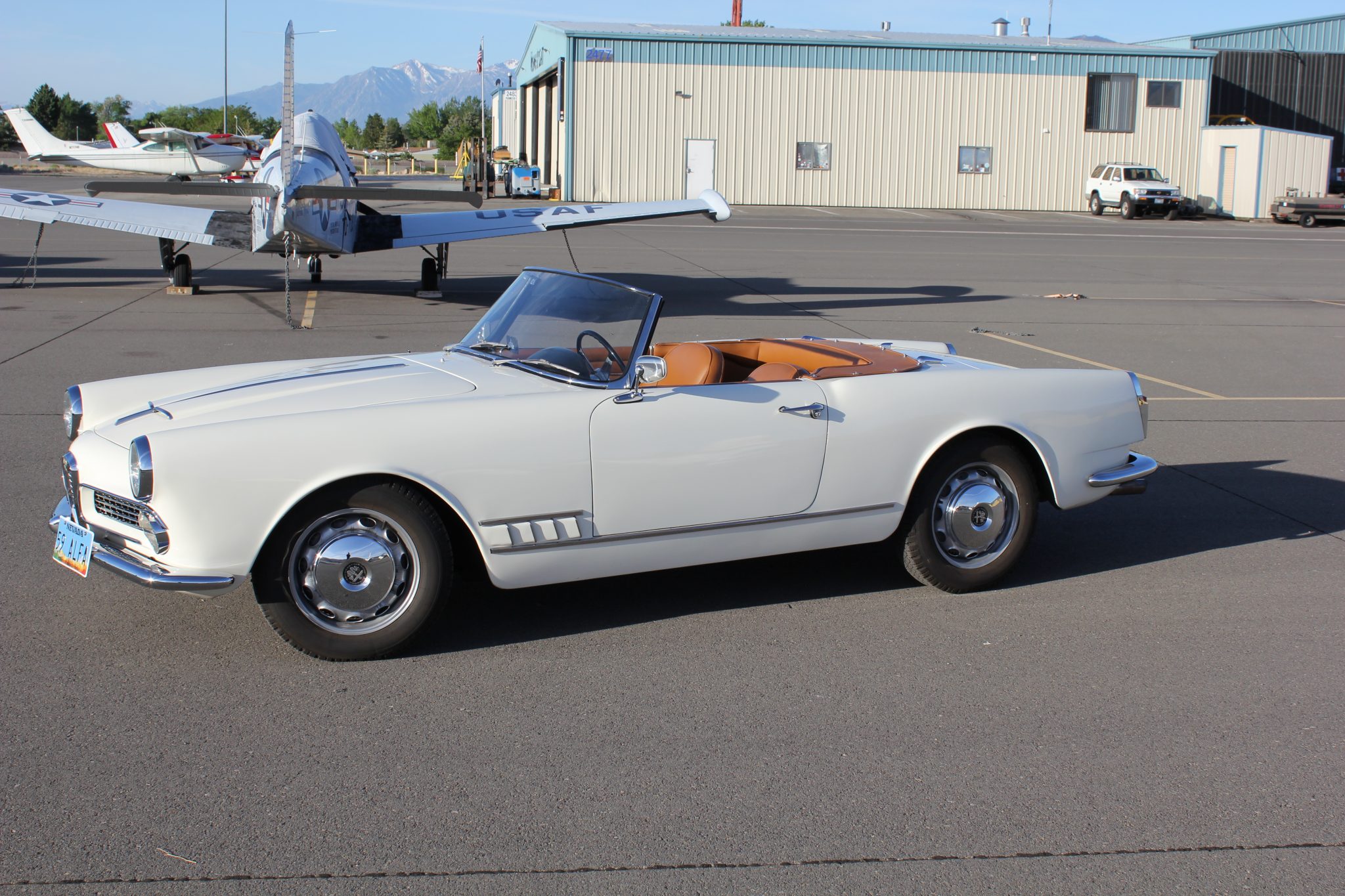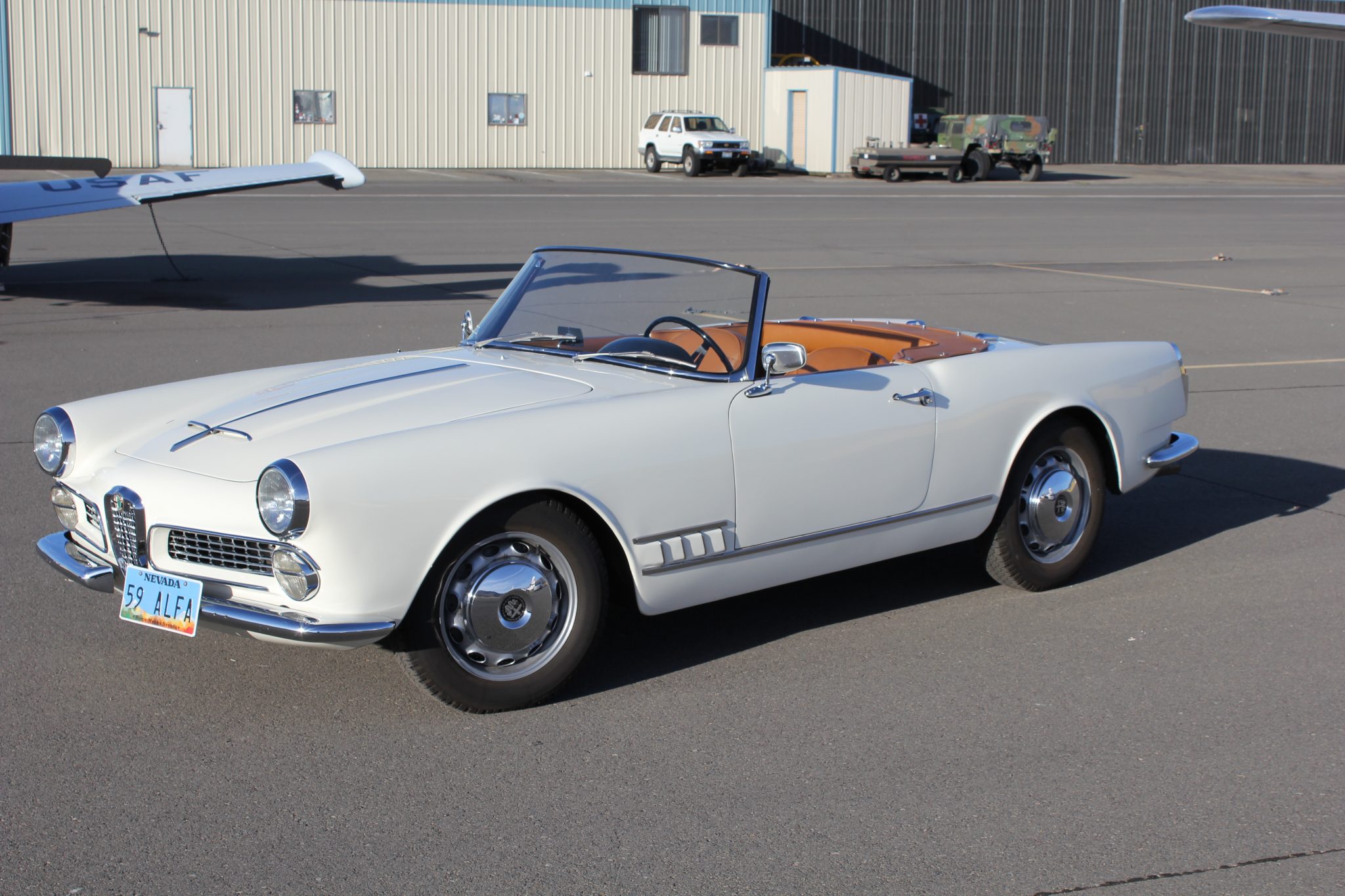 Metallic silver-painted steel wheels feature chrome Alfa Romeo-branded hubcaps and are mounted with Pirelli Cinturato CA67 tires. Koni shocks and new hydraulic drum brake components were installed during the refurbishment.