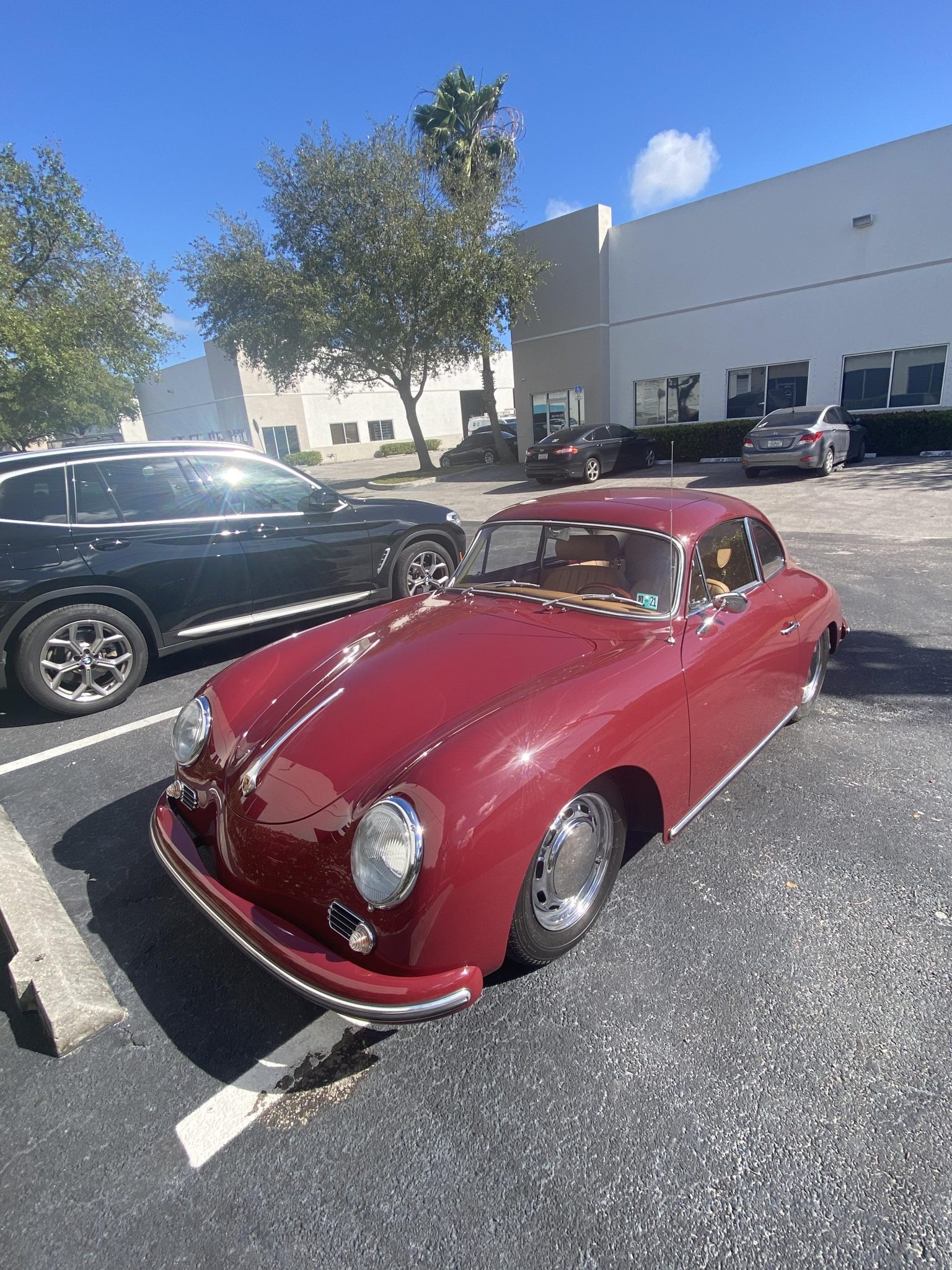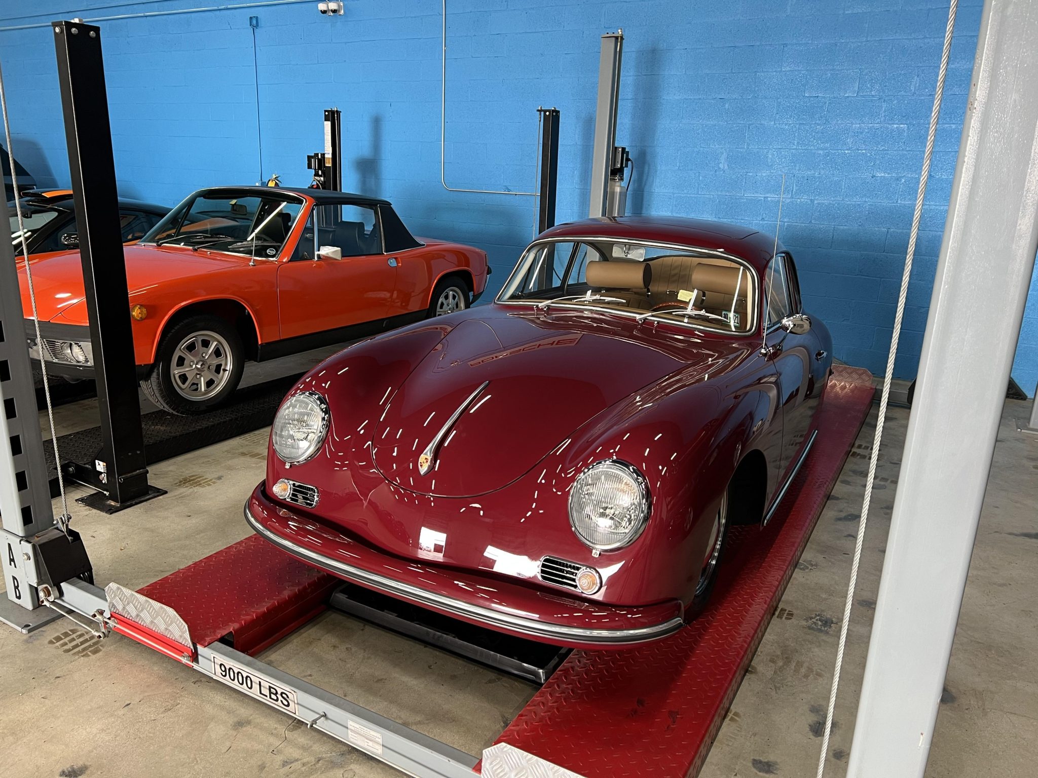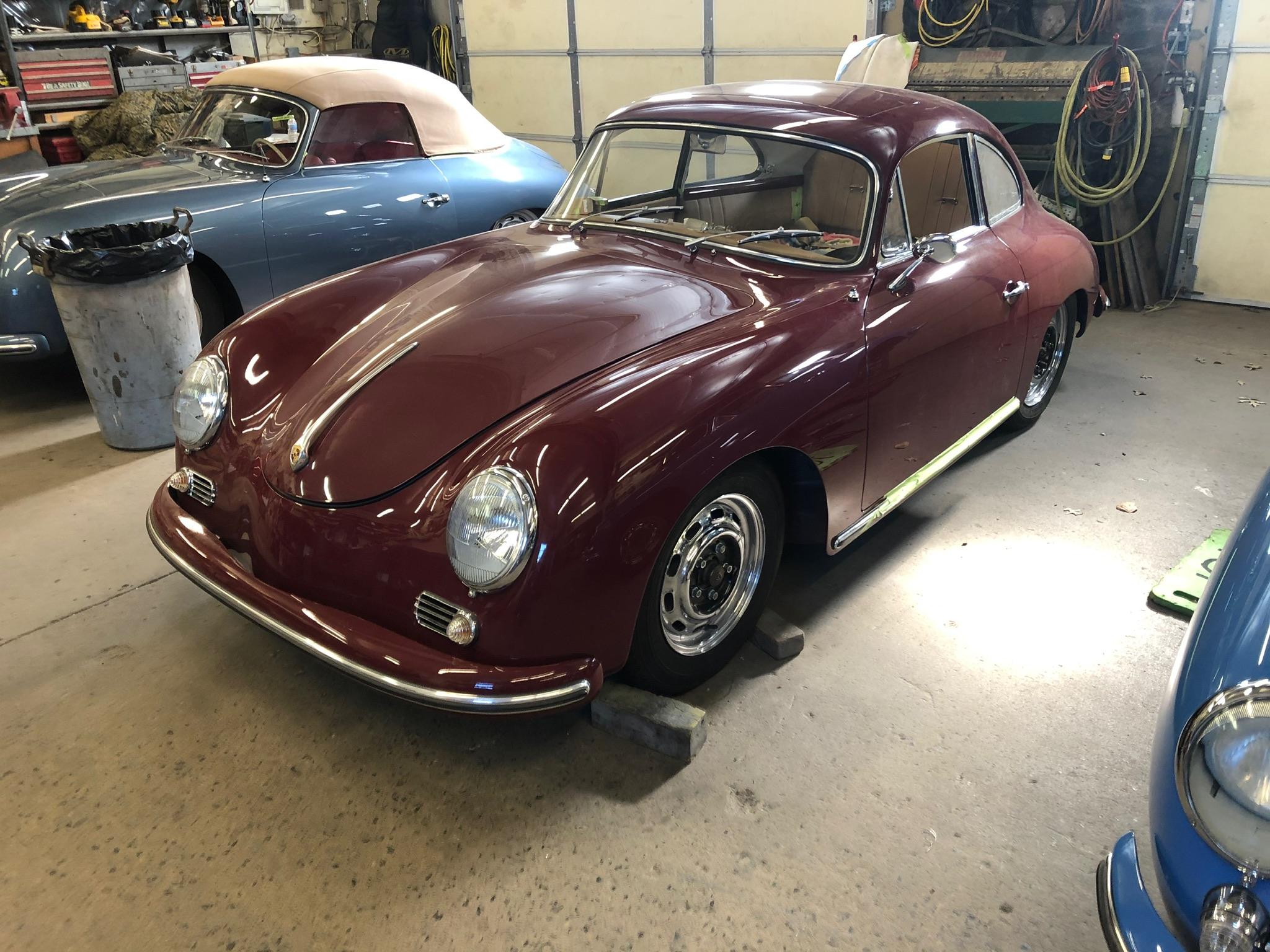 Chrome 15×4.5″ wide-five wheels wear hubcaps and are mounted with Michelin XZX tires. Four-wheel disc brakes reportedly sourced from a later-model 356SC have been rebuilt and installed. Additional refurbishment work included rebuilding the suspension and replacing the brake lines.