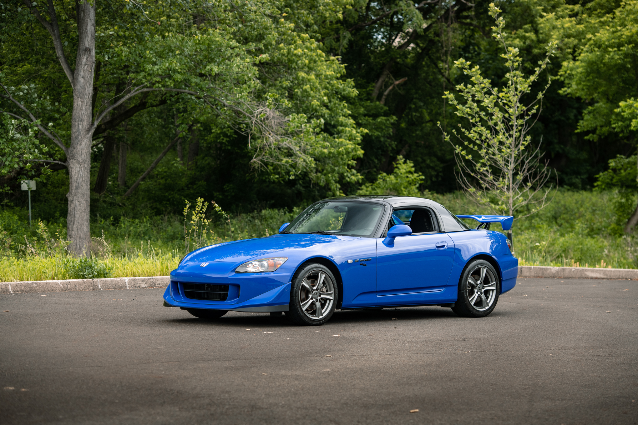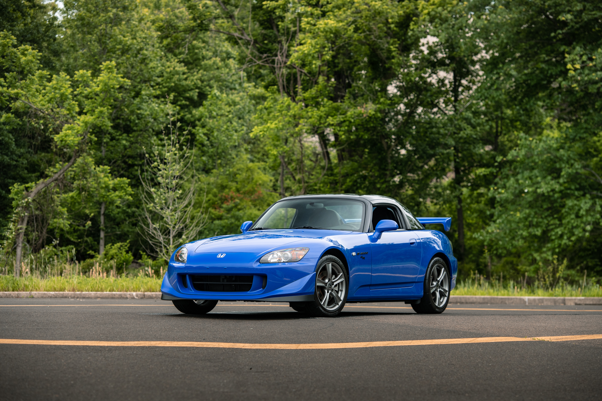 Factory 17″ wheels wear 215/45 front and 255/40 rear Bridgestone Potenza RE070 tires bearing 2007 date codes. The Club Racer model features higher-rate springs, stiffer anti-roll bars, and a quicker steering ratio compared to the standard AP2 S2000, and it is also equipped with anti-lock brakes and stability control.
