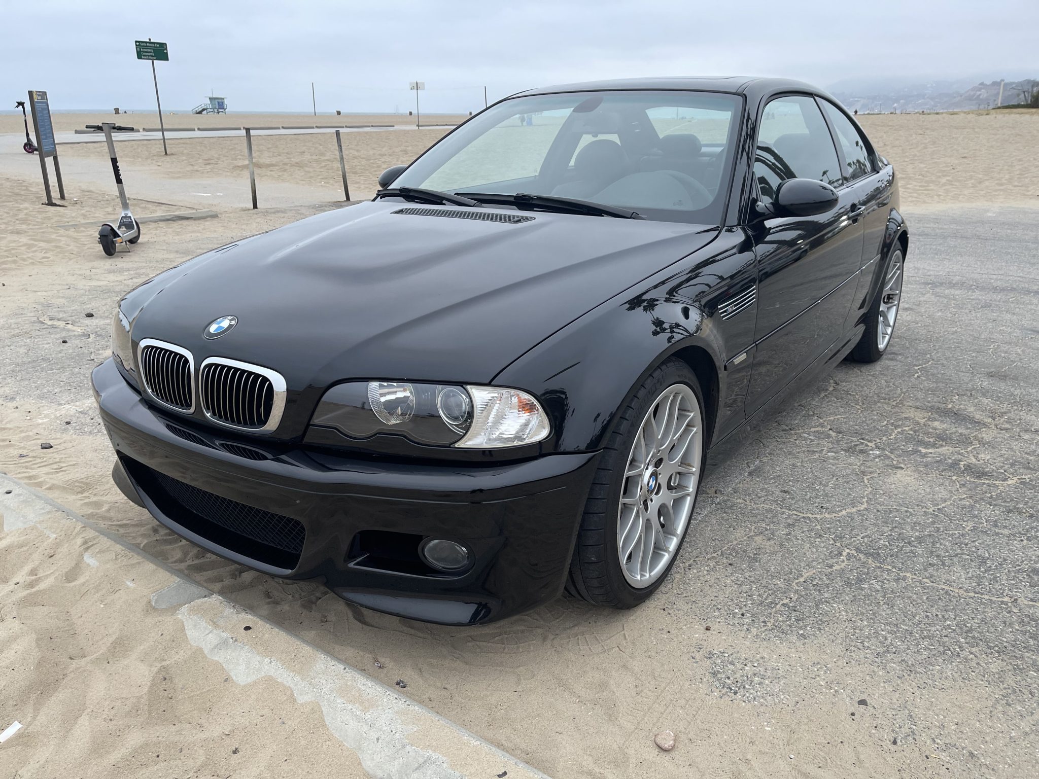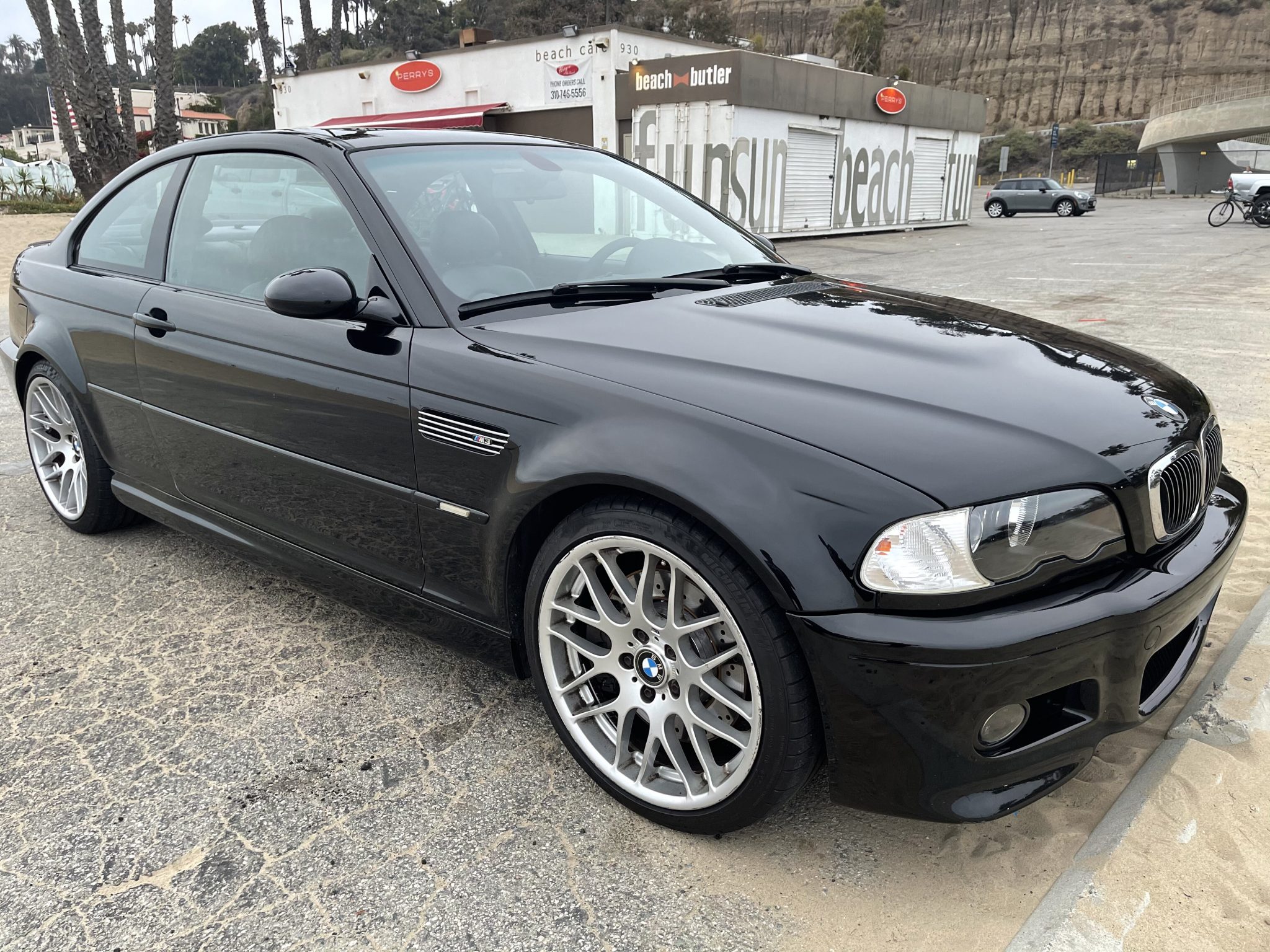 Factory 19″ M cross-spoke wheels are mounted with Michelin Pilot Super Sport tires that measure 225/45 up front and 255/40 out back. The ZCP Competition Package added larger cross-drilled brake rotors, and a quicker steering ratio than the standard M3. The brake fluid, rotors, and pads were reportedly replaced under current ownership.