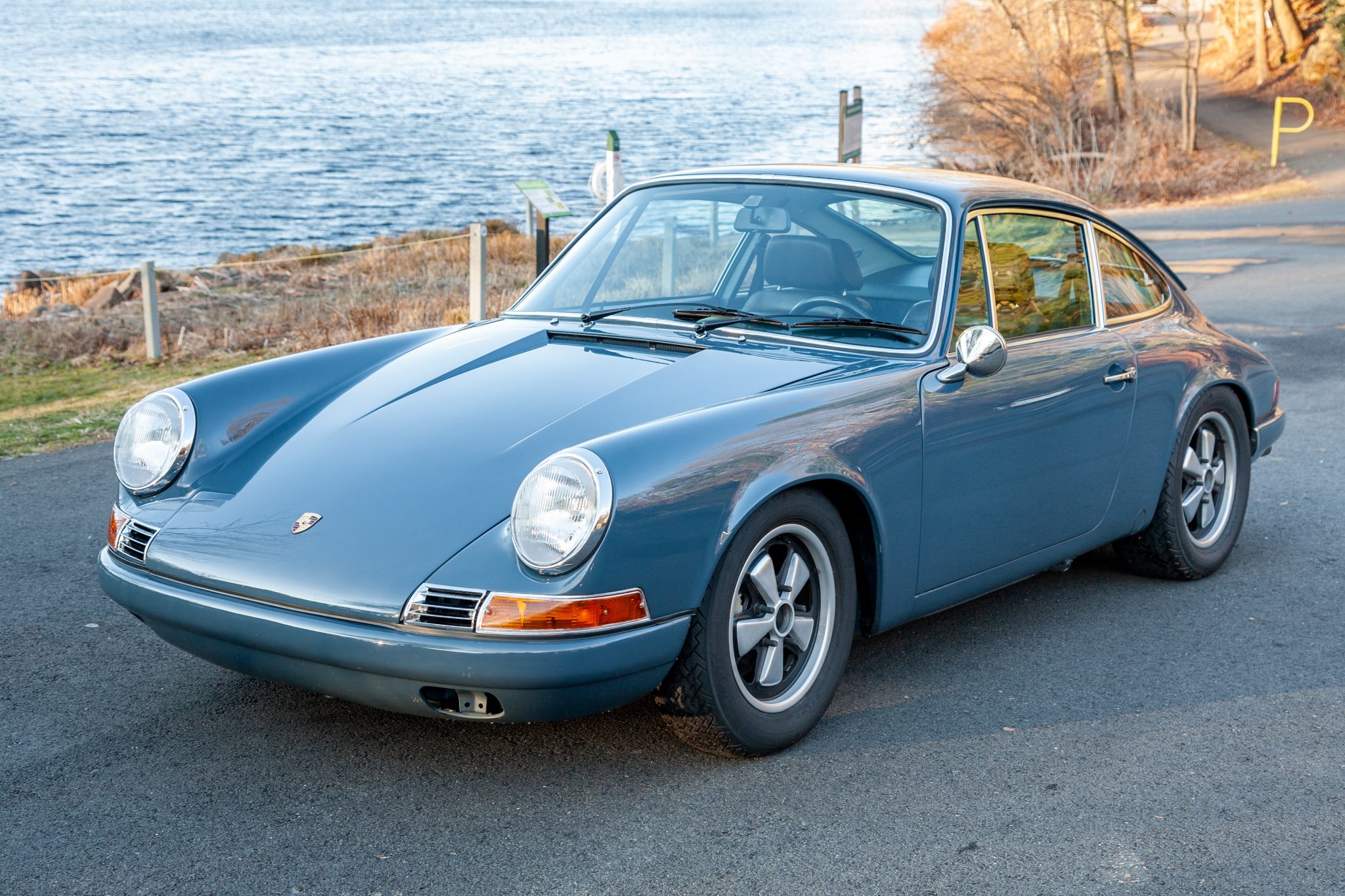 Fuchs 15″ wheels are said to have been refinished by Weidman’s Wheels in California, and they are mounted with staggered-size Pirelli Cinturato tires. Braking is provided discs front and rear, with slotted rotors utilized up front. The suspension was modified by RS Werks, and the ride height has been lowered.