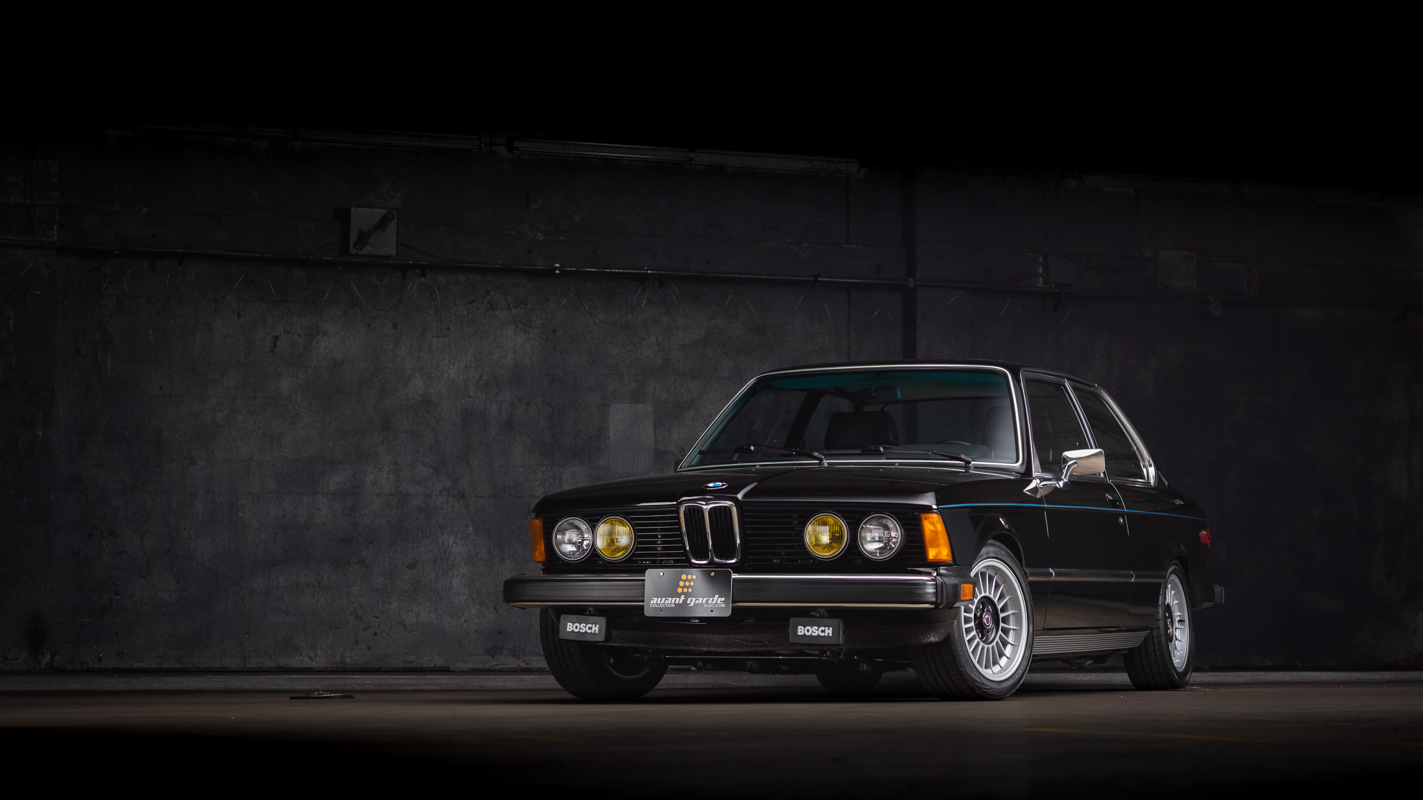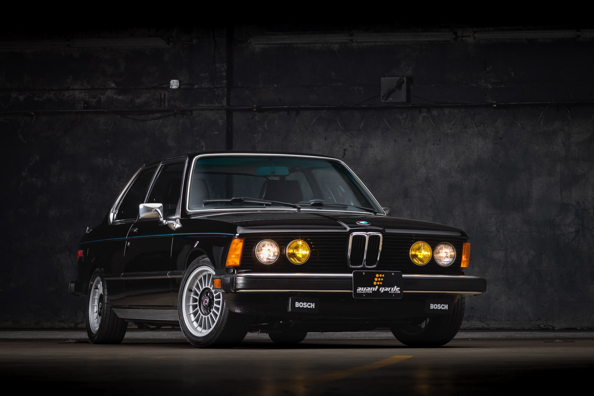 Alpina-style 15″ wheels are wrapped in 195/50 front and 205/50 rear Dunlop Direzza DZ102 tires. The suspension is fitted with Bilstein shocks, H&R springs, spherical tie rod ends, and Prothane suspension bushings. Braking is handled by front discs and rear drums.
