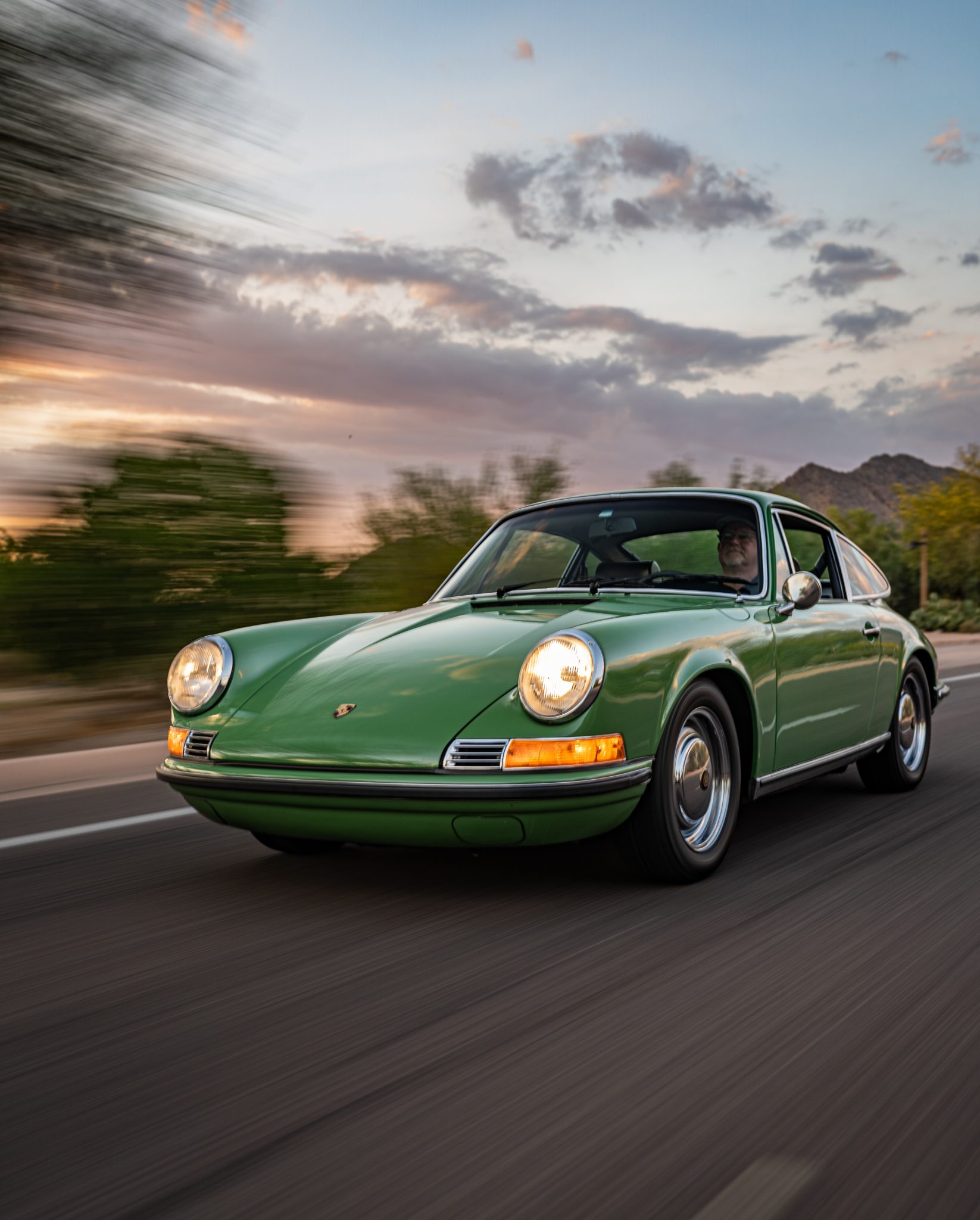 Chrome 15″ steel wheels feature Porsche hubcaps and wear 185/65 Pirelli P4 tires. The car is equipped with Bilstein dampers and four-wheel disc brakes.