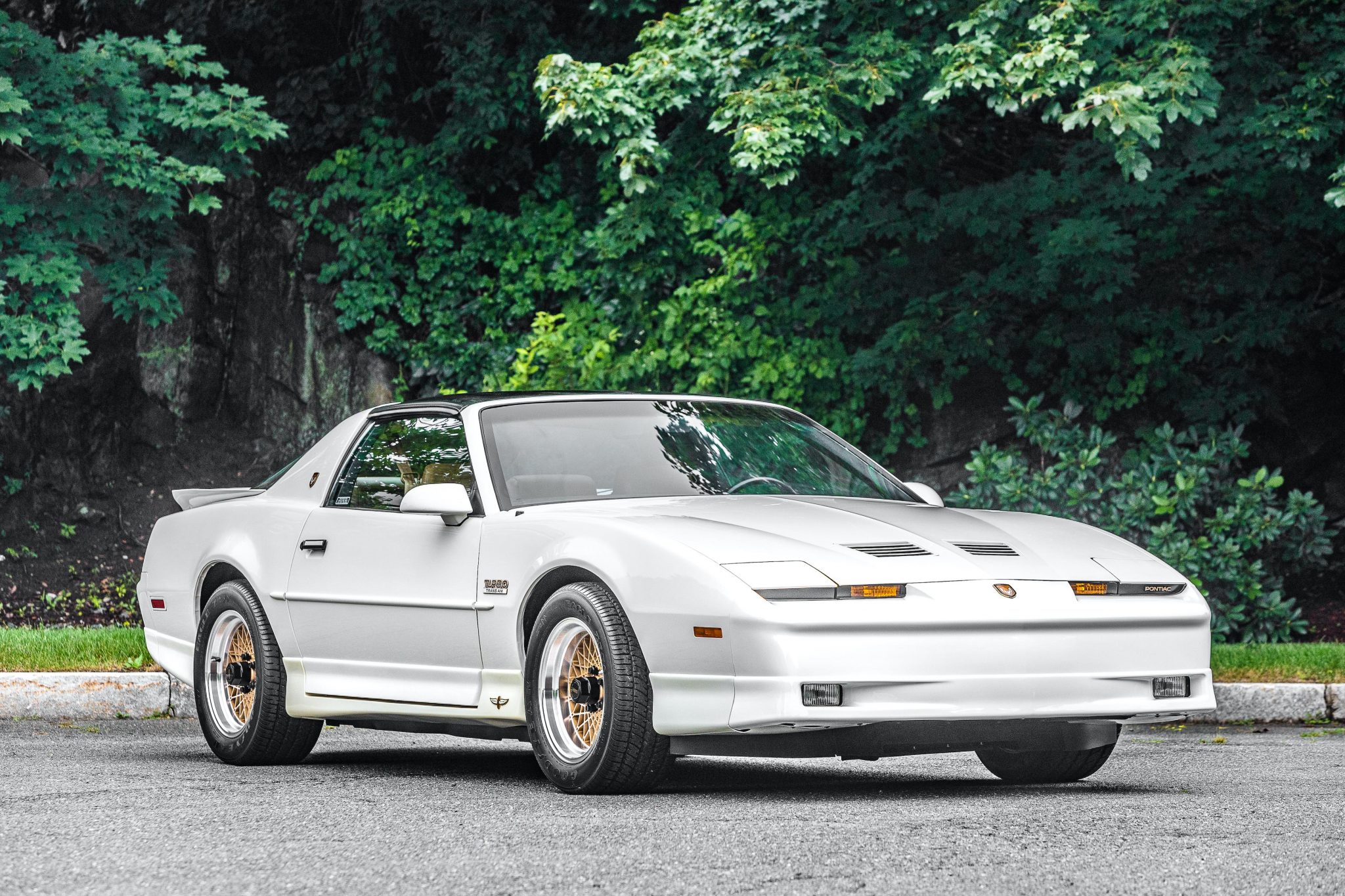 Gold-finished 16″ basketweave wheels with bright lips and WS6-logo center caps are mounted with 245/50 Goodyear Eagle ZR50 tires. Turbo Trans Am models are equipped with heavy-duty four-wheel disc brakes and a WS6 high-performance suspension.