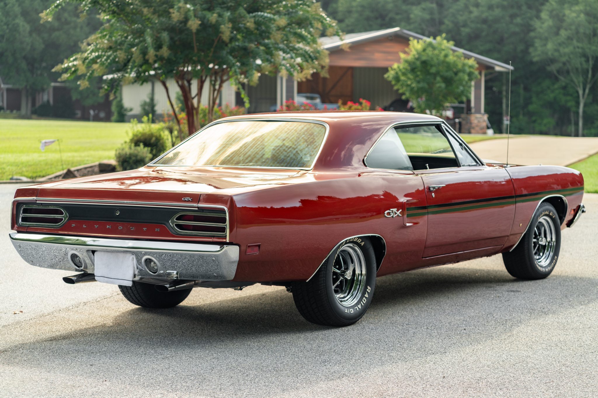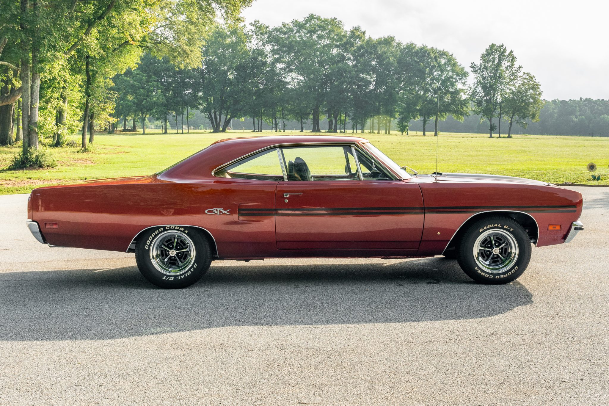Polished 15″ Magnum 500 wheels are wrapped in Cooper Cobra Radial G/T tires and braking is handled by manual four-wheel drums. A full-size spare tire and jack are mounted in the trunk.