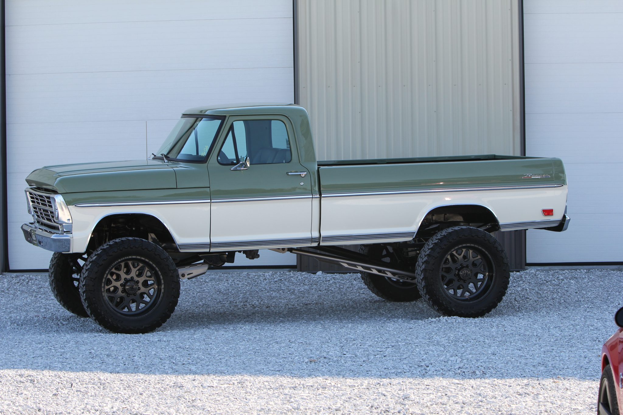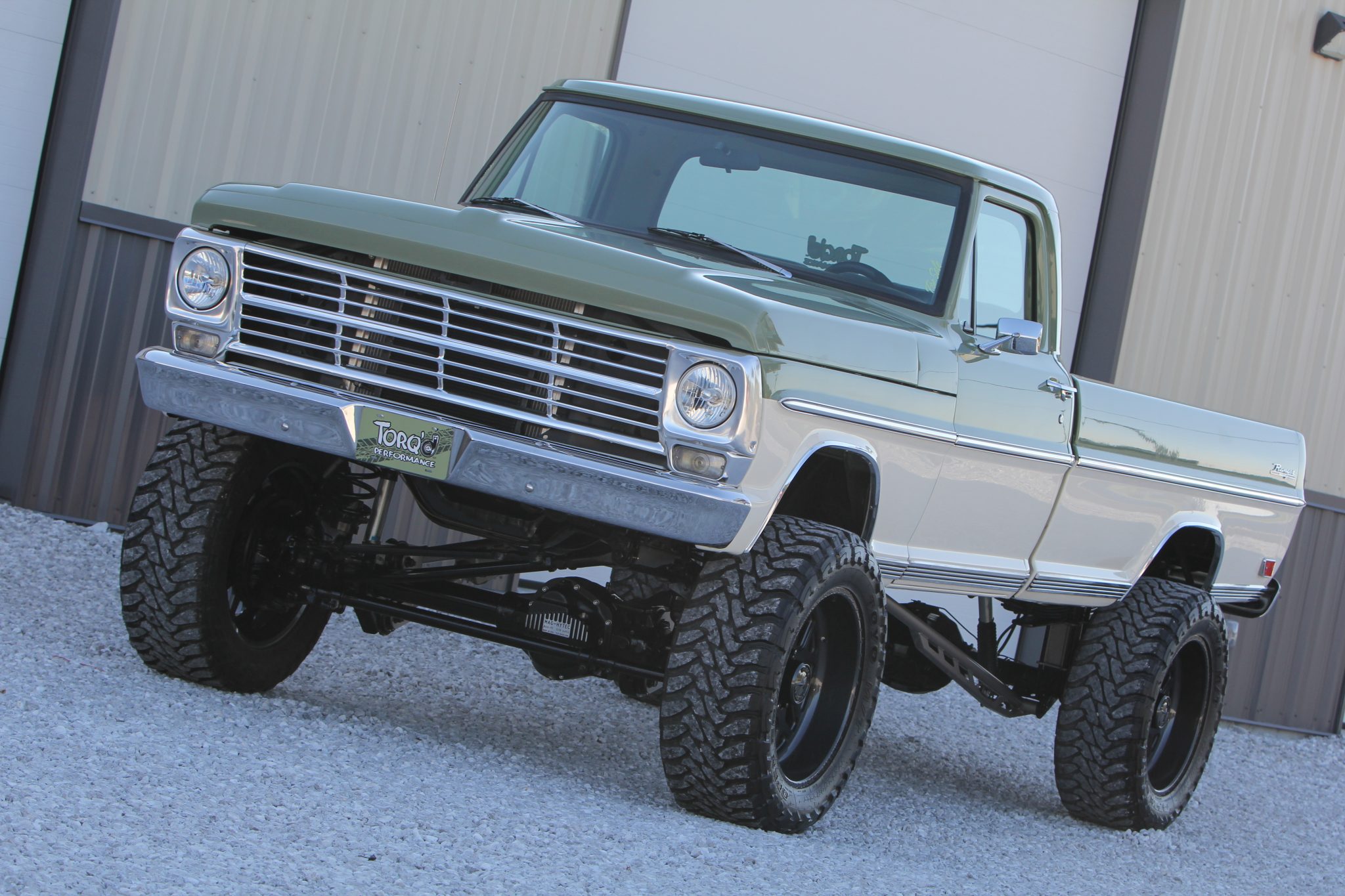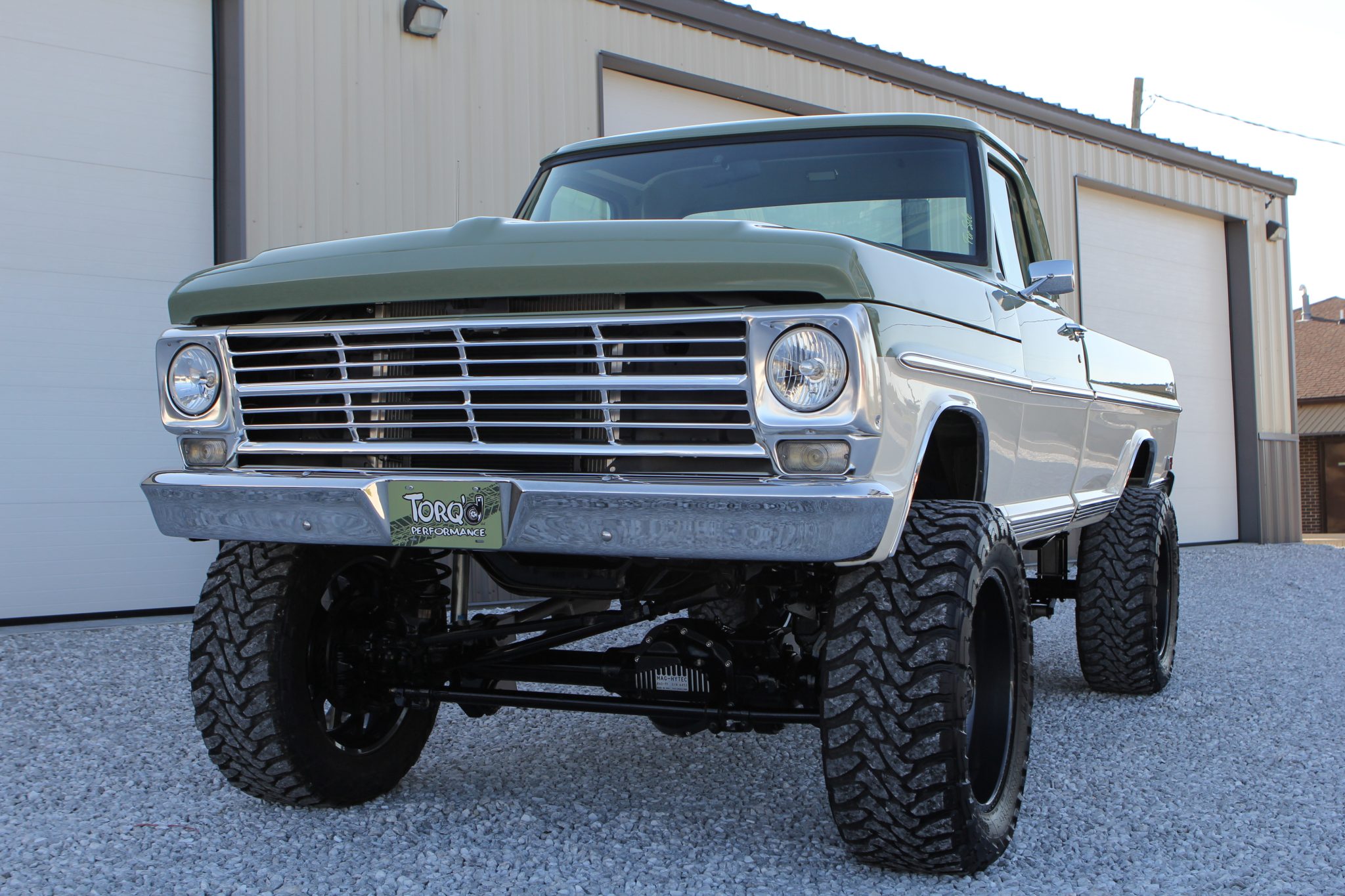 Powder coated 22″ American Force wheels wear 37×13.50″ Toyo MT Open Country tires. The suspension has been modified with Bilstein shock absorbers, a PMF four-link front axle, traction bar system, and lift blocks as well as a BD adjustable track bar and power steering. Braking is provided by power-assisted four-wheel discs.