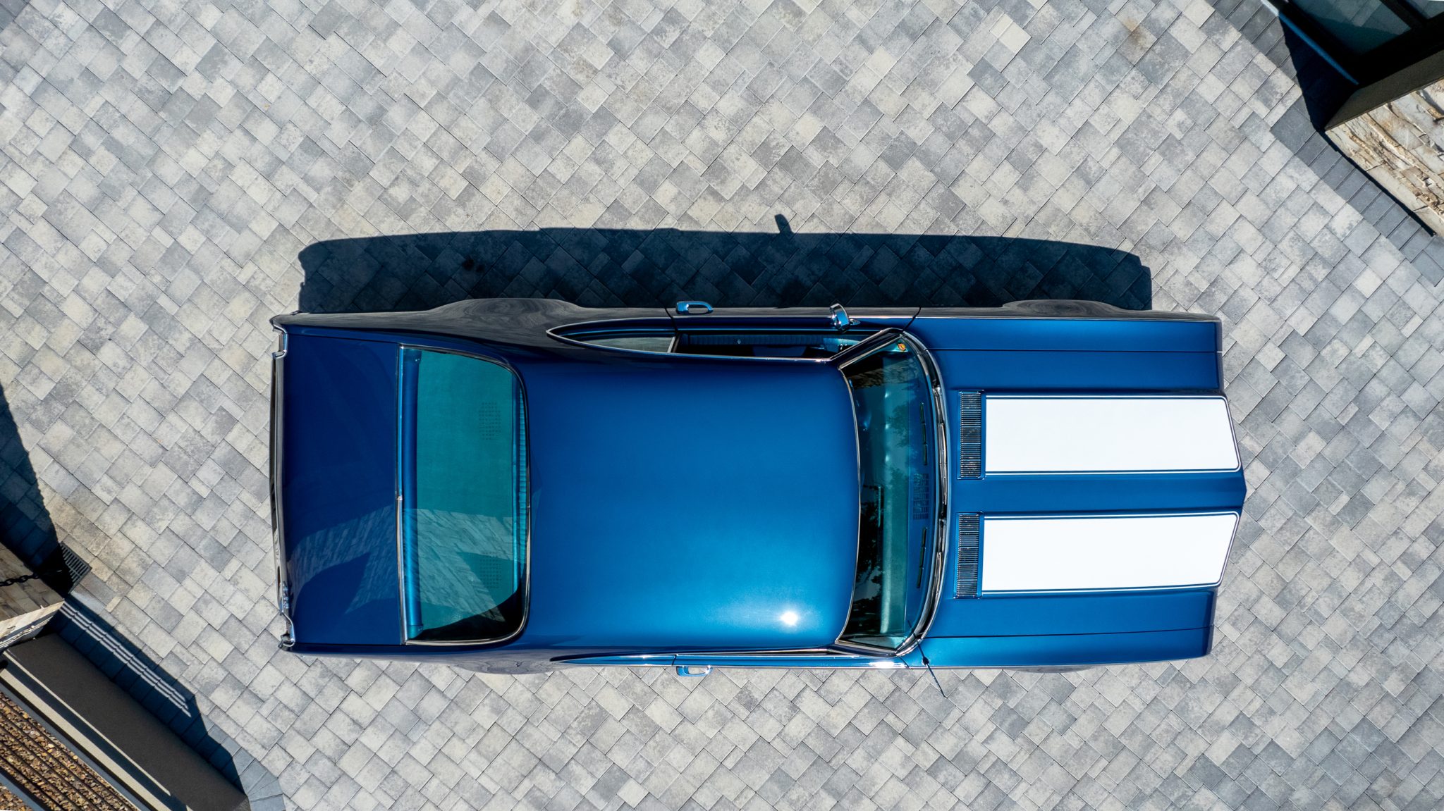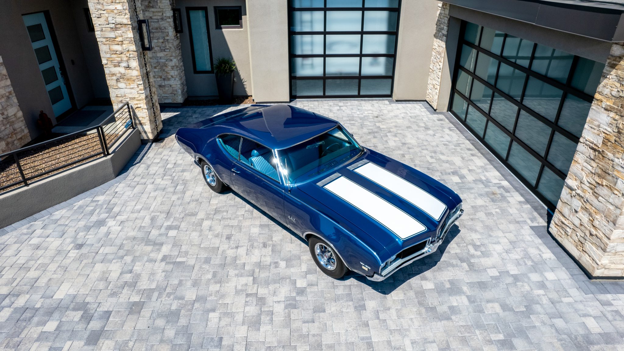 14″ Oldsmobile SSIII-style wheels are finished in blue and wrapped in 225/70 Firestone Firehawk Indy 500 tires. The car is equipped with power-assisted front disc brakes, power steering, and front and rear sway bars.