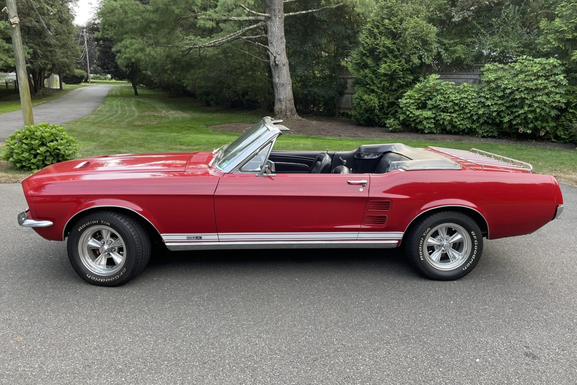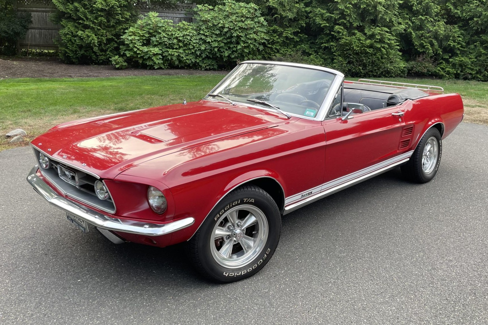Polished 15” American Racing Torq Thrust wheels wear 225/60 BFGoodrich raised white-letter tires all around. A spare with a plaid covering is housed in the trunk. The suspension is said to have been refreshed by Christie’s Service in Westport, Connecticut, under current ownership. The power-assisted braking system features a front disc conversion from SSBC-USA, while drums are retained out back. Power steering came equipped from the factory.