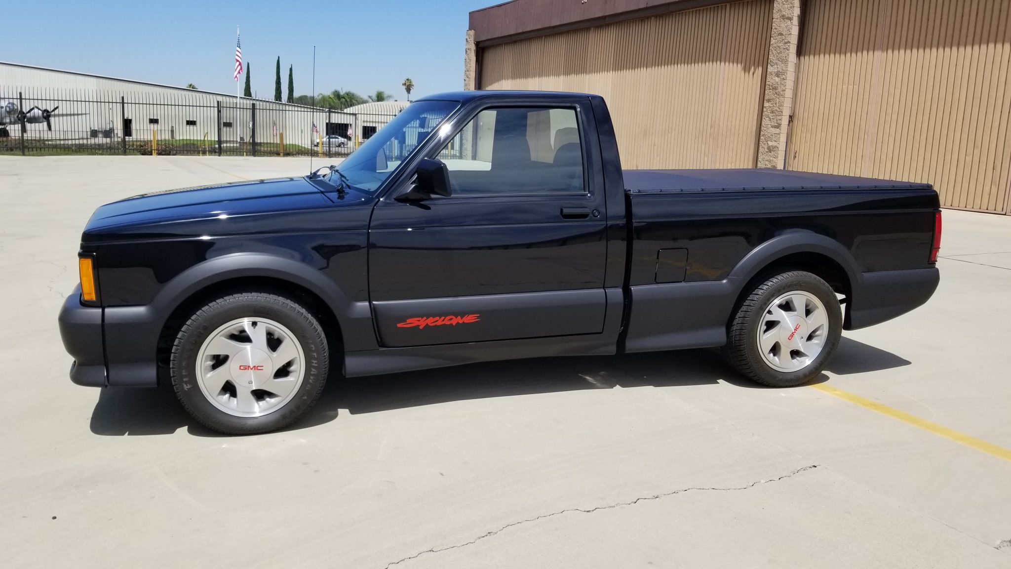 Factory 16″ alloy wheels wear GMC-branded center caps and are mounted with 245/50 Firestone Firehawk SVX tires. Bilstein shocks are fitted, and braking is handled by front discs and rear drums.