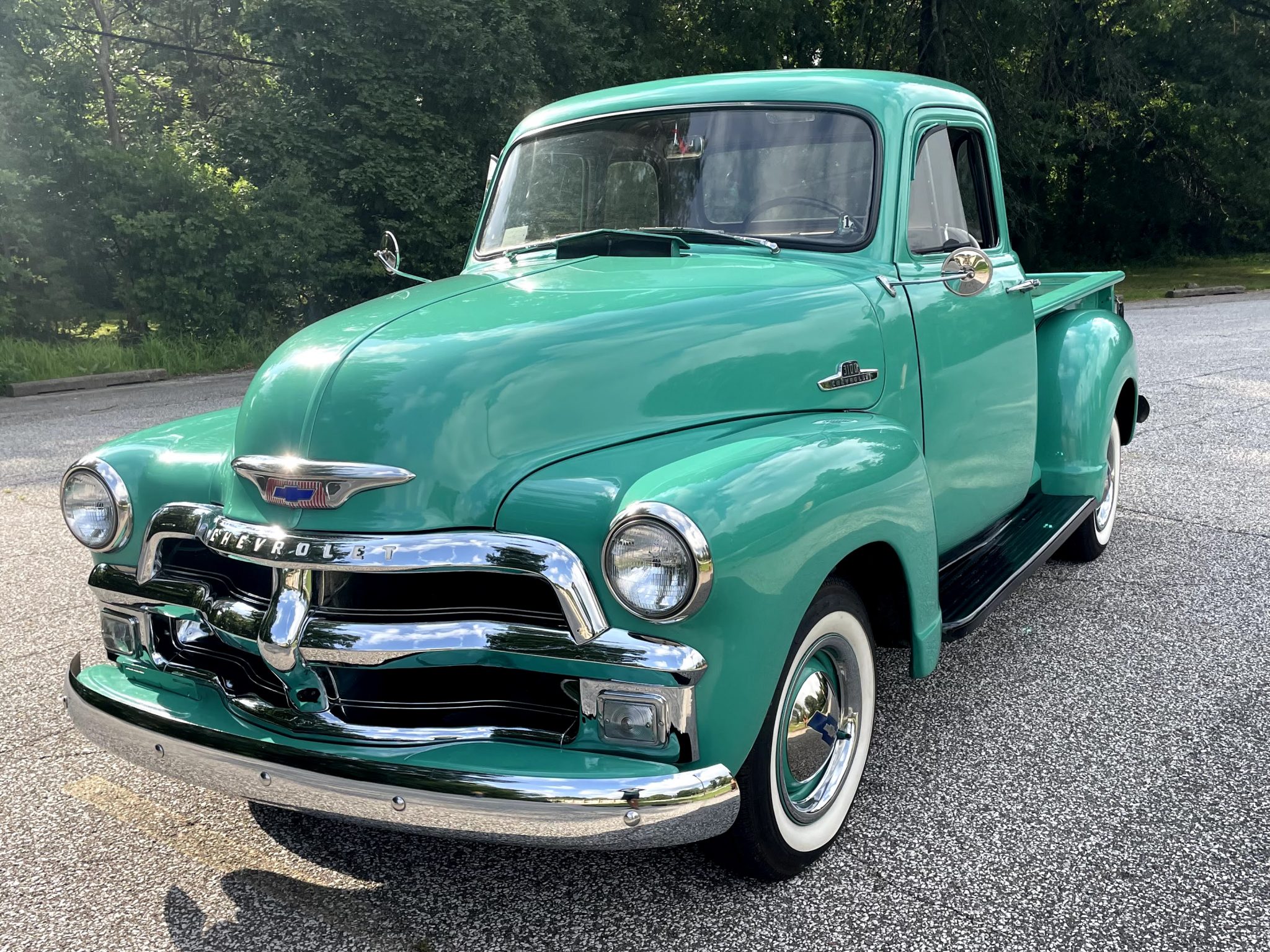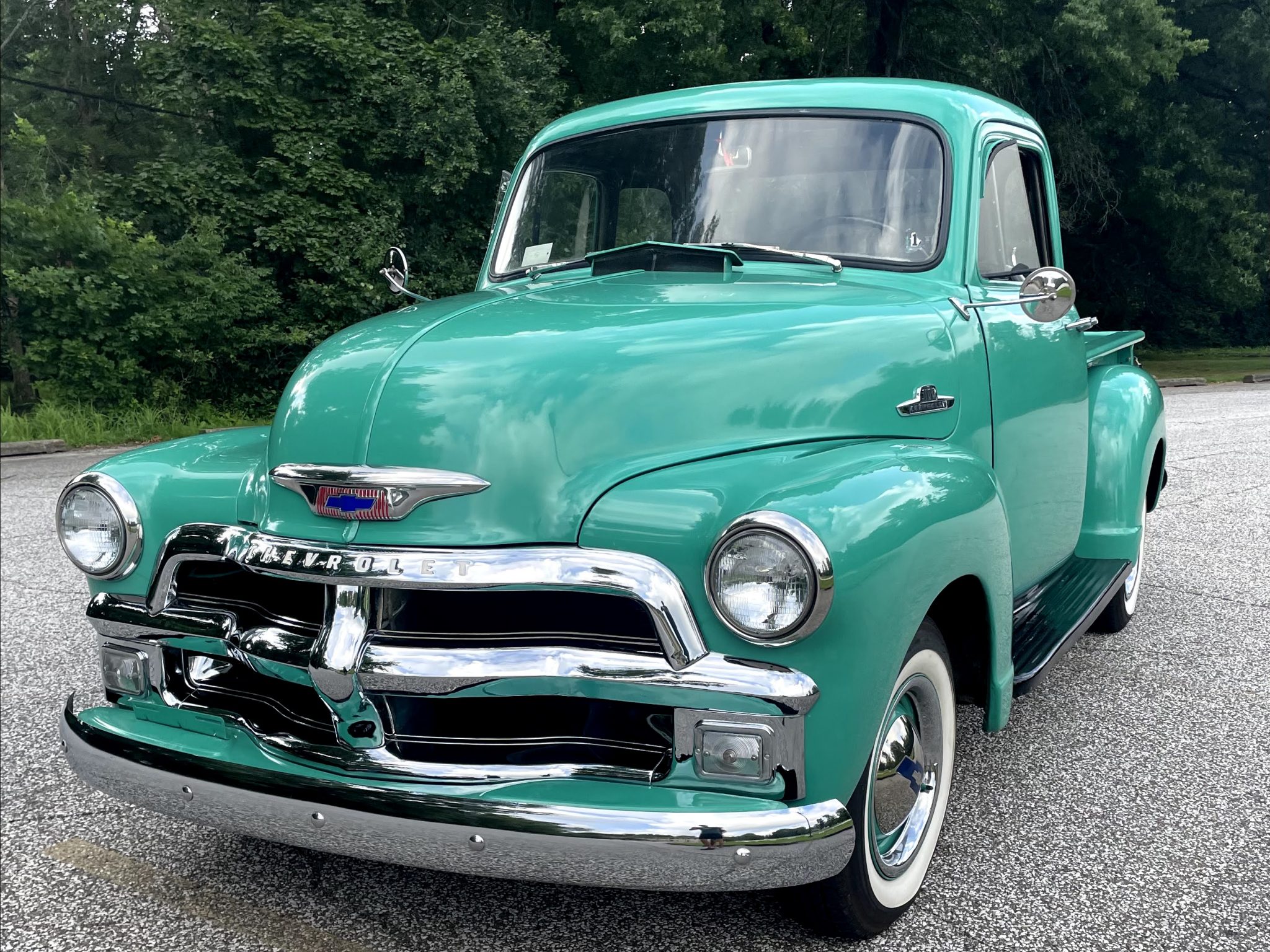 Body-colored 15” steel wheels are accented by chrome trim rings and hubcaps, and they are wrapped in 205/75 Coker Classic whitewall tires that the seller states were installed in 2004. The braking and steering systems were also overhauled.