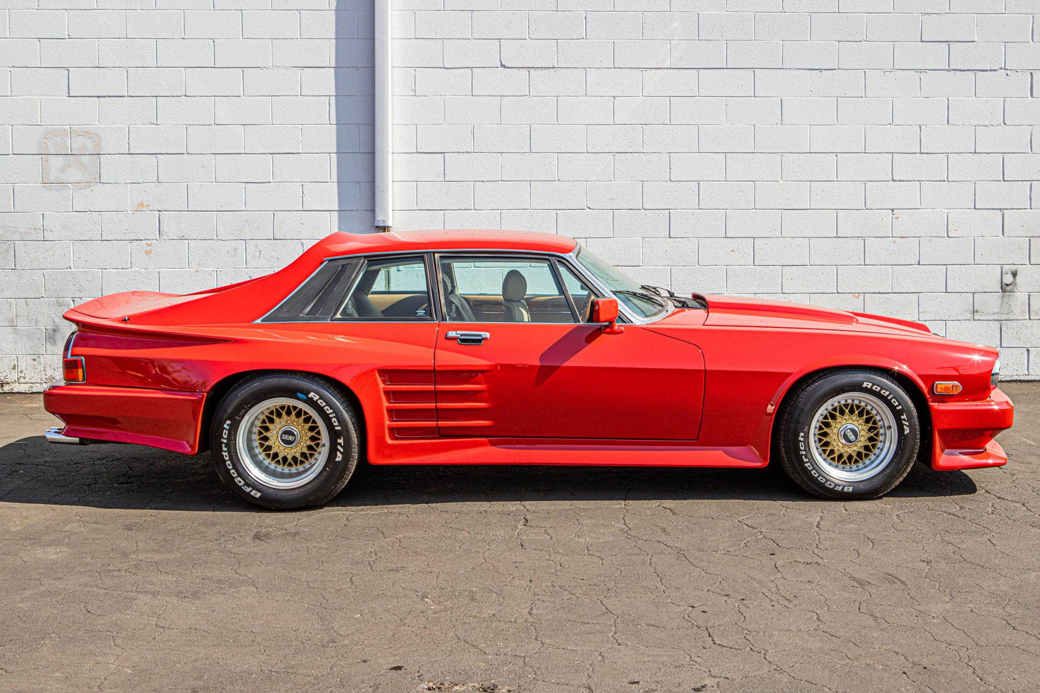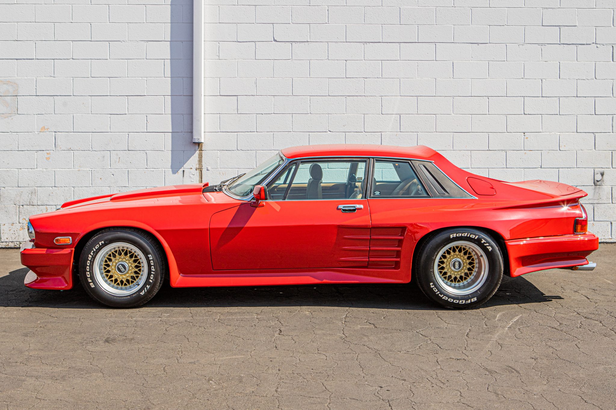 The 15″ three-piece BBS wheels wear BFGoodrich Radial T/A white letter tires measuring 235/60 up front and 295/50 out back. The car is equipped with fully independent suspension and four-wheel disc brakes.