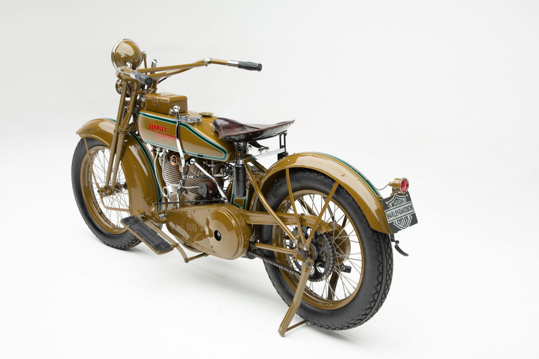 Sun 19″ aluminum rims from Buchanan’s Spoke & Rim are color-keyed, laced with eight-gauge stainless-steel spokes, and wrapped in Coker Classic Cycle Diamond Tread tires. Suspension is handled by a springer front fork, and the rear is rigid with a pair of shrouded springs under the seat to cushion the ride. Braking is provided by a foot-actuated rear drum.