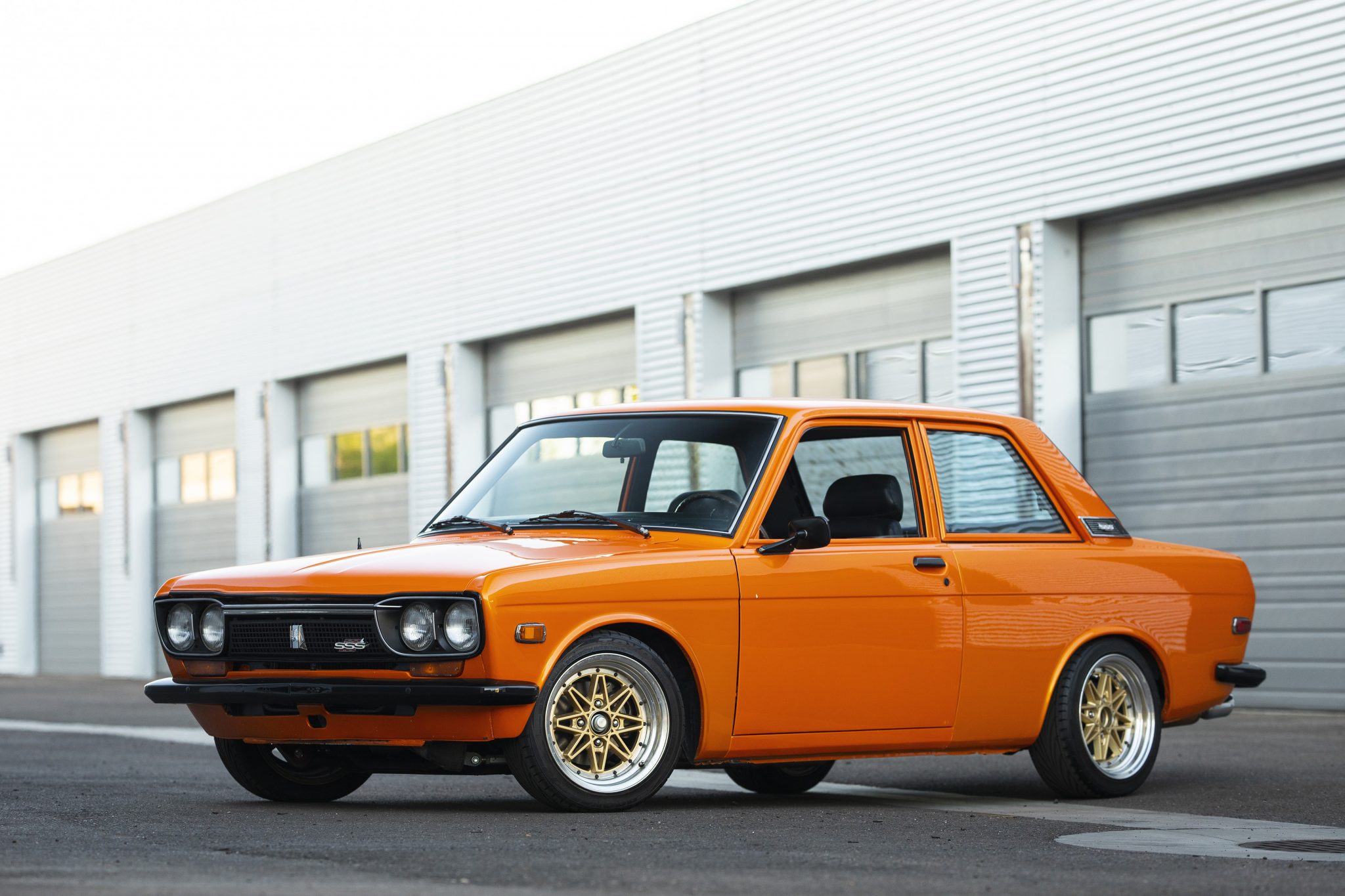 Gold-finished 15” wheels wear 195/45 Toyo Proxes tires. The brake master cylinder was replaced under current ownership, and suspension modifications include 280zx coilovers with adjustable upper plates and Koni sport dampers up front along with Ermish single-adjustable coilovers at the rear.