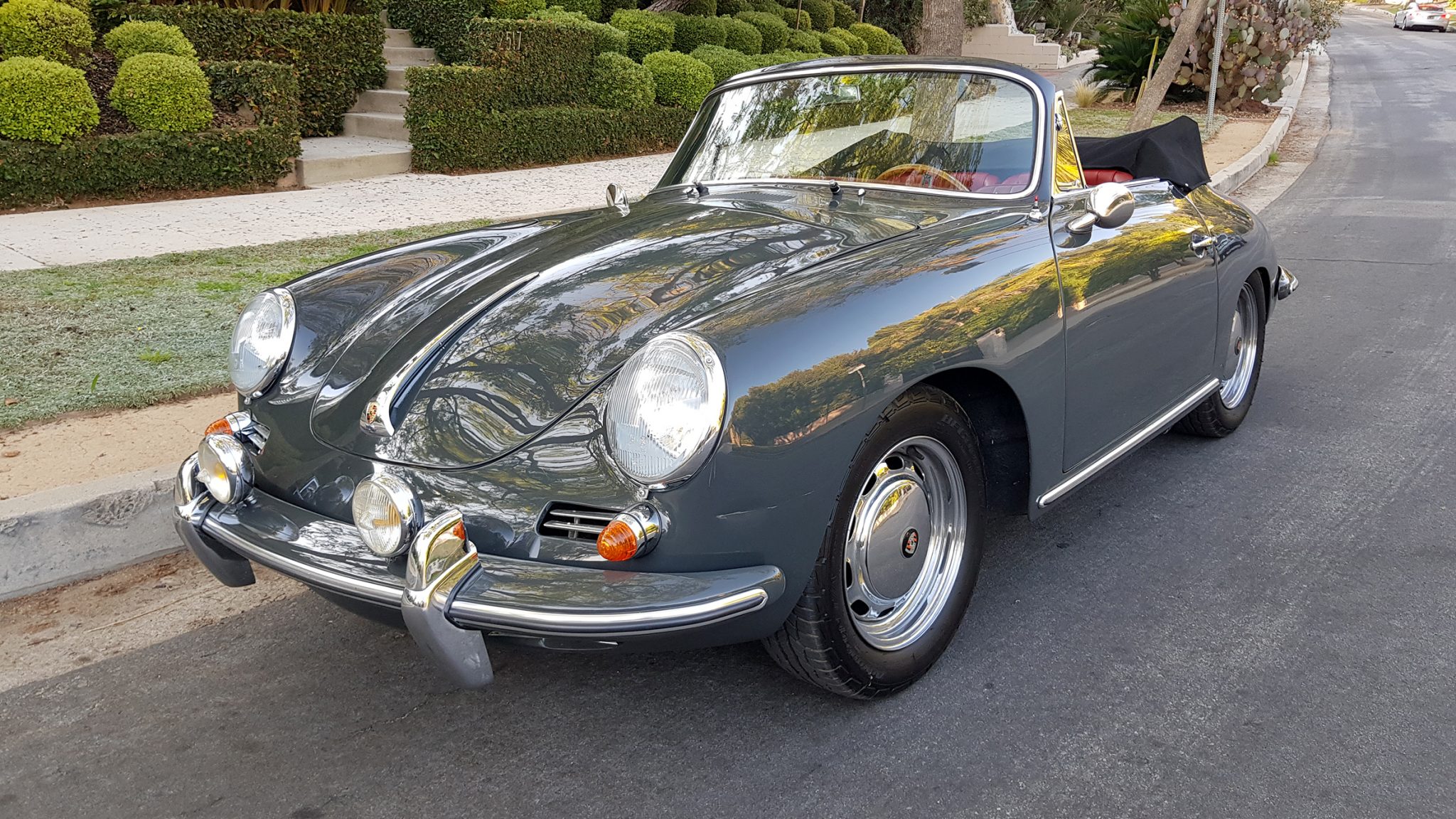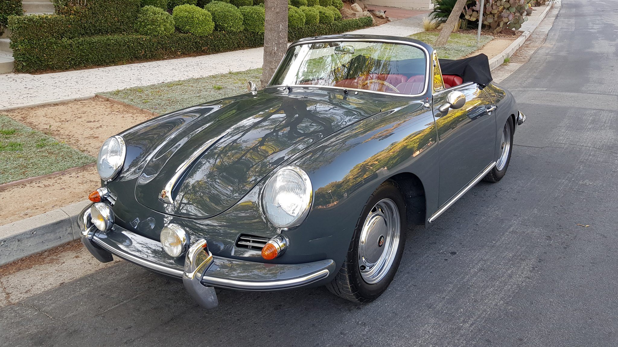 The 15″ chrome wheels wear Porsche-crest hubcaps and are mounted with 195/60 BFGoodrich Advantage T/A tires. A matching spare wheel with a Michelin X radial tire is fitted in the front trunk. The black soft top features a plastic rear window, and a matching boot is included in the sale. Braking is handled by discs at all four corners.
