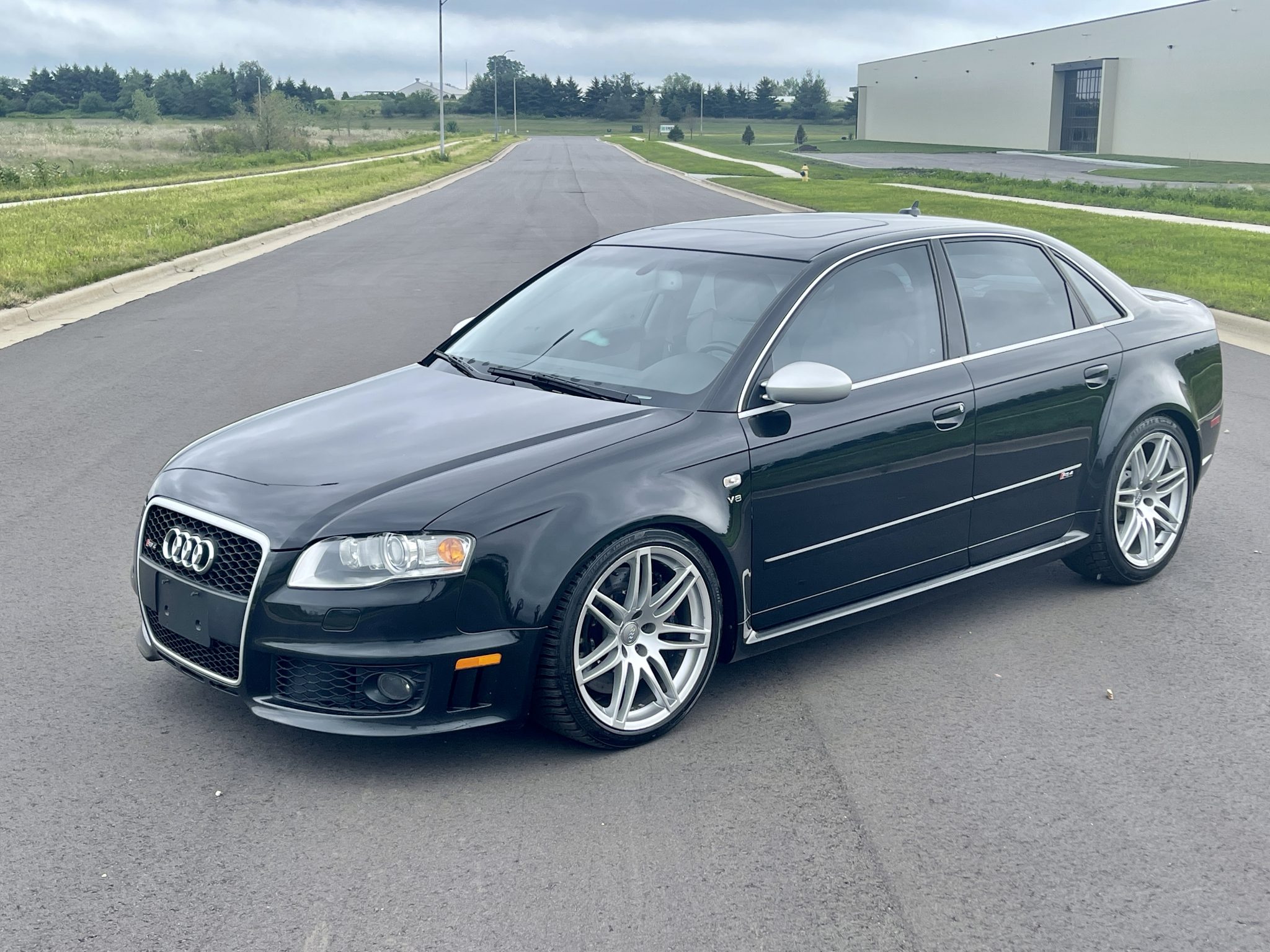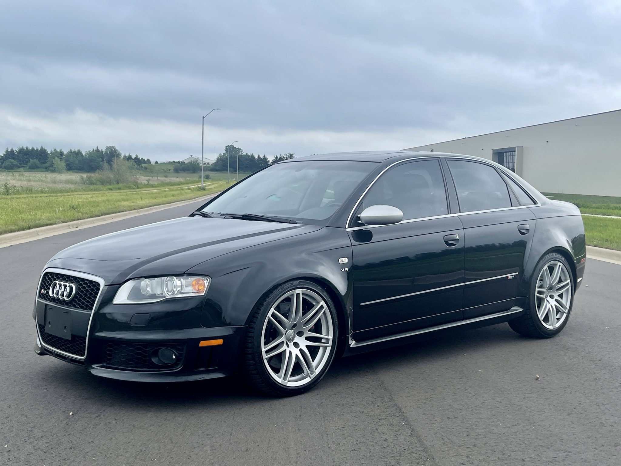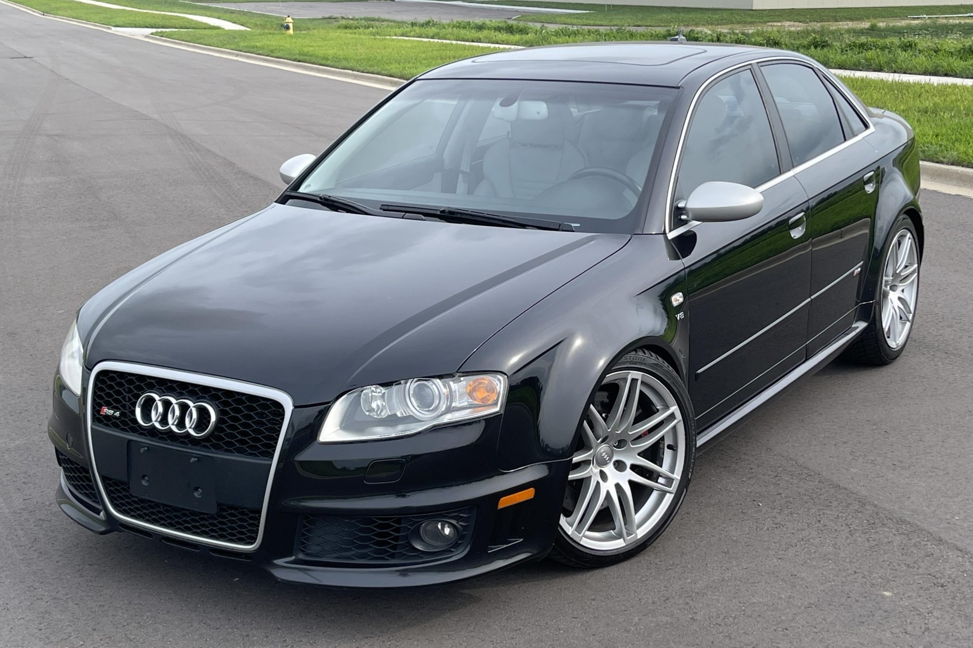 Silver-finished 19″ split-spoke wheels are mounted with 255/35 Bridgestone Blizzak tires. Stopping power is provided by RS-branded monoblock calipers up front with ventilated discs at all four corners, and the car rides on adjustable Bilstein coilovers.