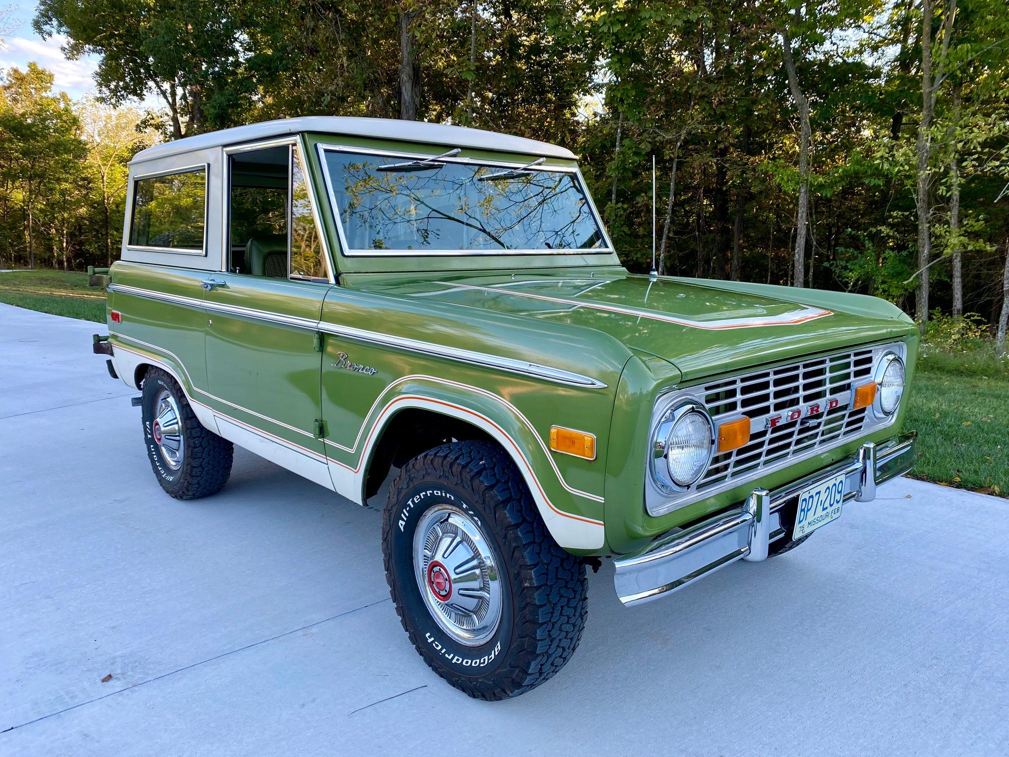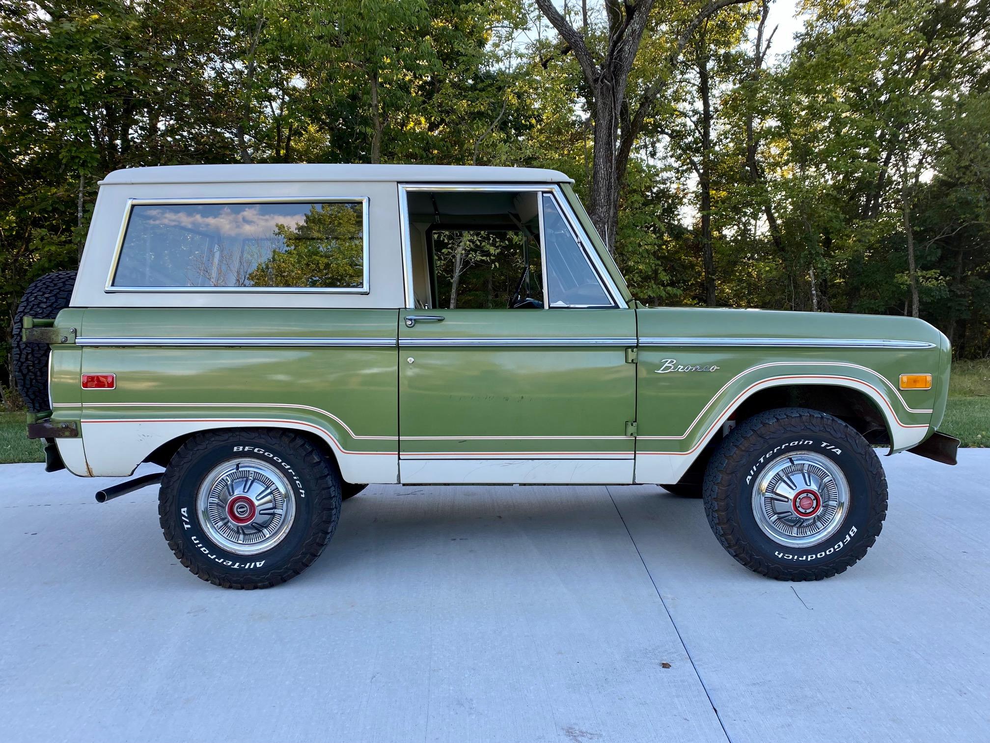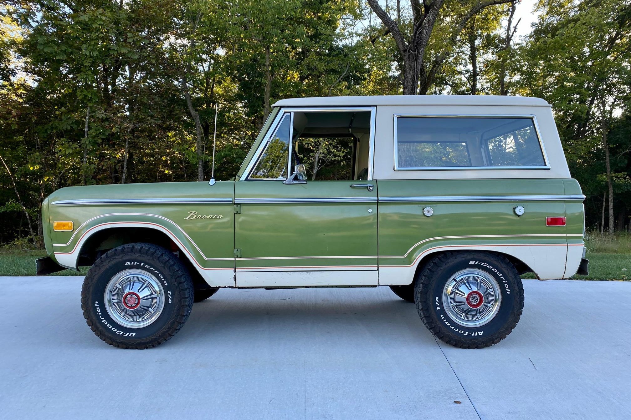 White 15″ steel wheels wear chrome covers and BFGoodrich All-Terrain T/A K02 tires. A matching spare is mounted to the swing-out carrier at the rear. Service performed in 2019 included replacement of the shocks as well as the brake drums, shoes, and springs.