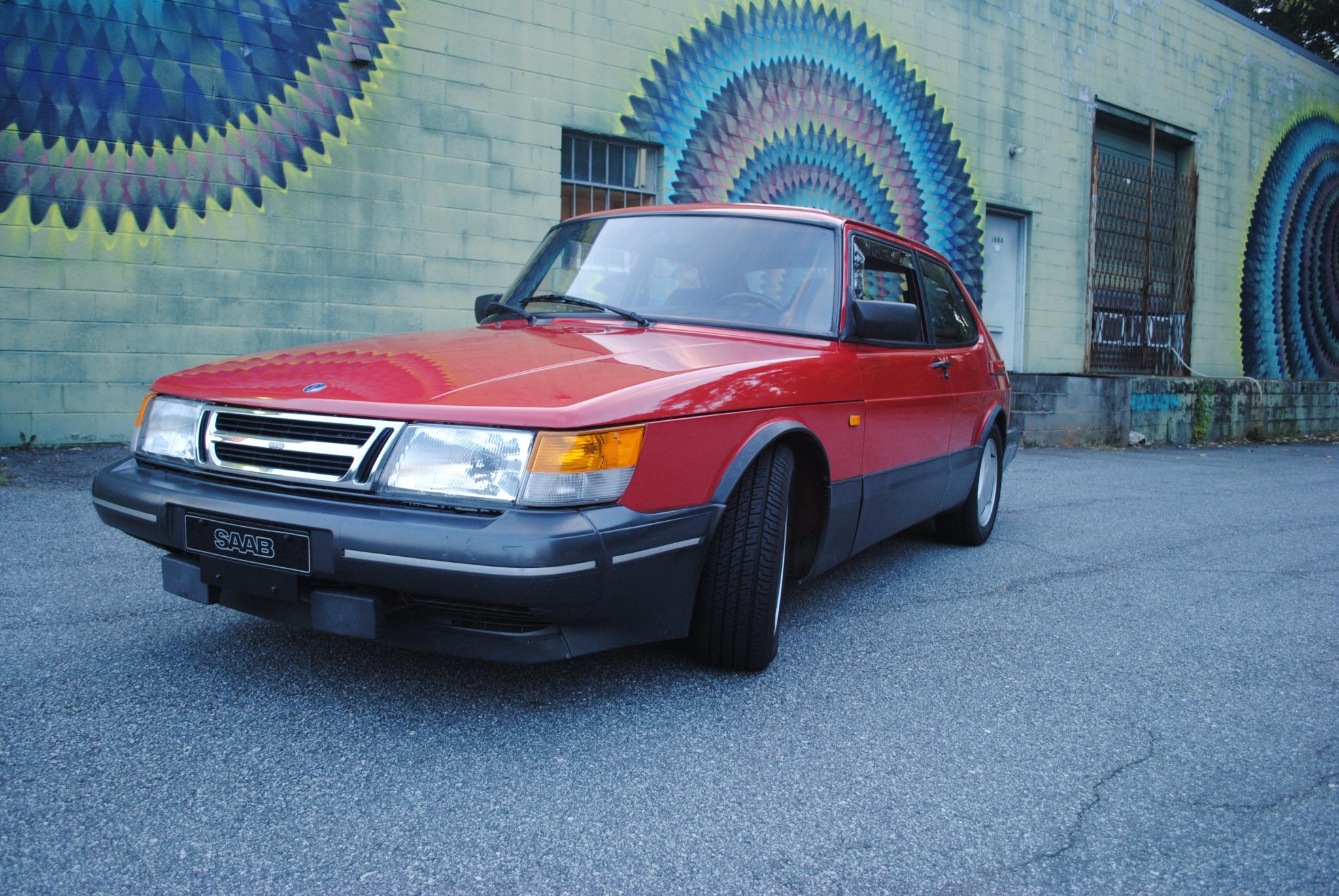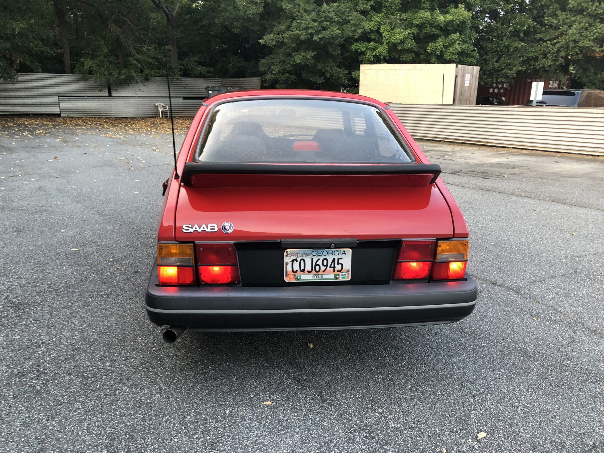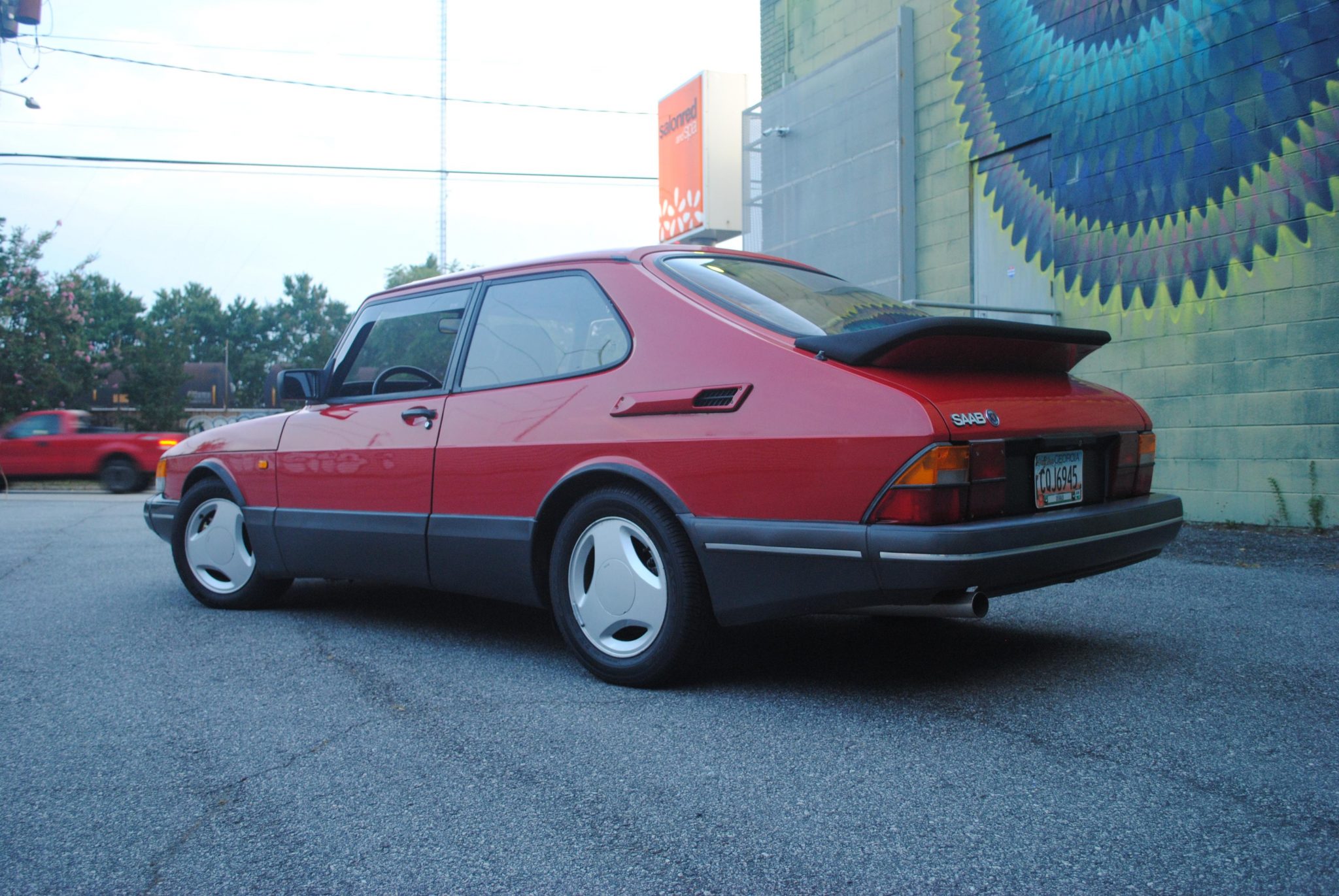 SPG 15″ three-spoke wheels wear 195/60 Goodyear Eagle RS-A tires showing 2019 date codes. The suspension has been fitted with Bilstein shocks and Abbott Racing springs, and work under current ownership has reportedly included reinforcement of the rear shock towers and replacement of the Panhard rod, front lower control arms, ball joints, and rear track rod bushings. Saab 9000-specification brakes are fitted up front, and the seller states that he has installed stainless-steel brake hoses and replaced the brake calipers, rotors, and pads at all four corners along with a brake accumulator ball and the upper and lower steering column bushings.