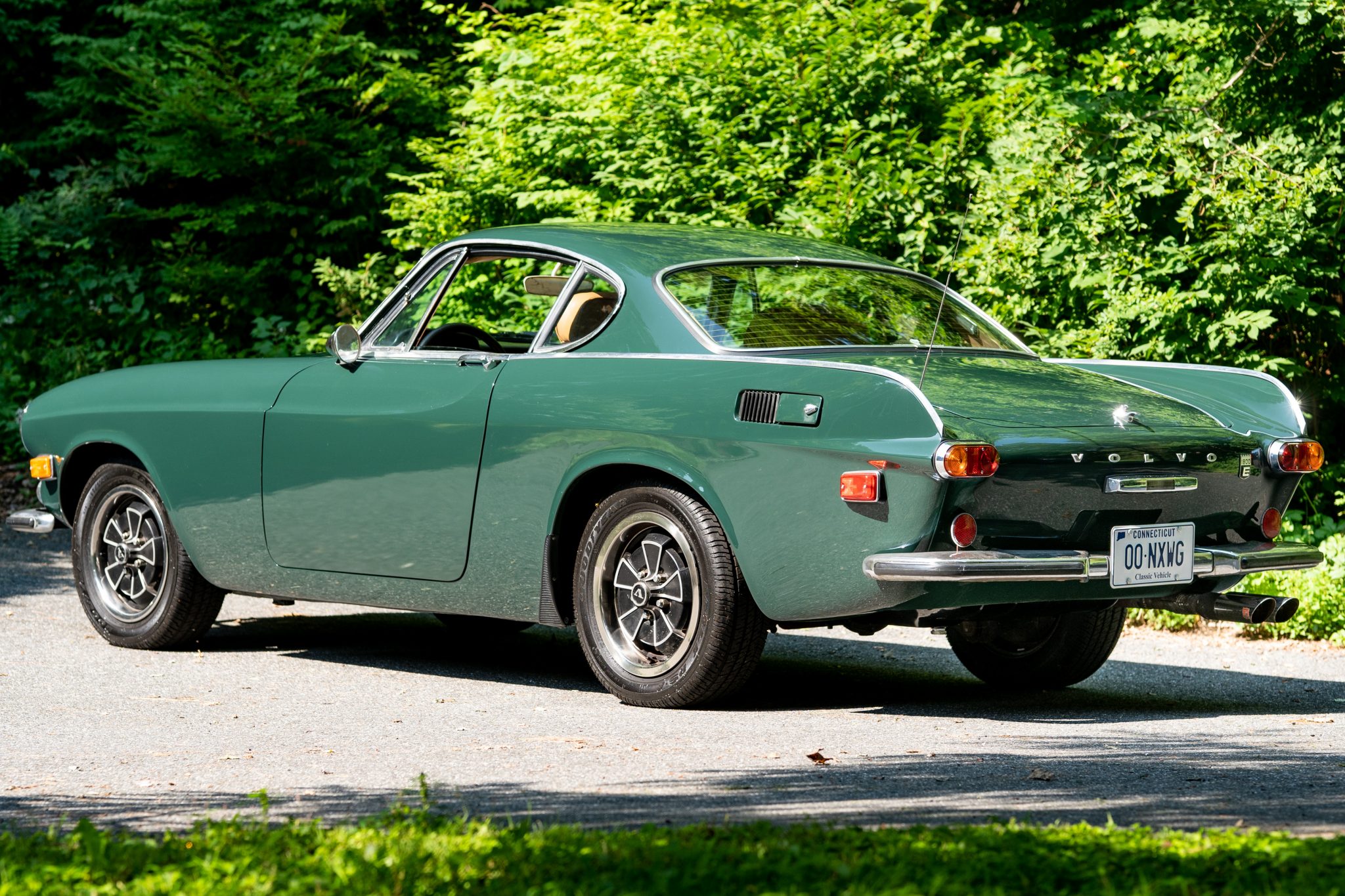 Clover-style 15″ wheels wear chrome trim rings and are mounted with 195/60 Goodyear Eagle RSA tires showing 2018 date codes. A full-size spare with a Solar 4XS tire is situated in the trunk. Braking is handled by power-assisted discs at all four wheels. The seller has replaced the master cylinder, tie rod ends and center links, control arm bushings, rear suspension straps, and front and rear shock absorbers.