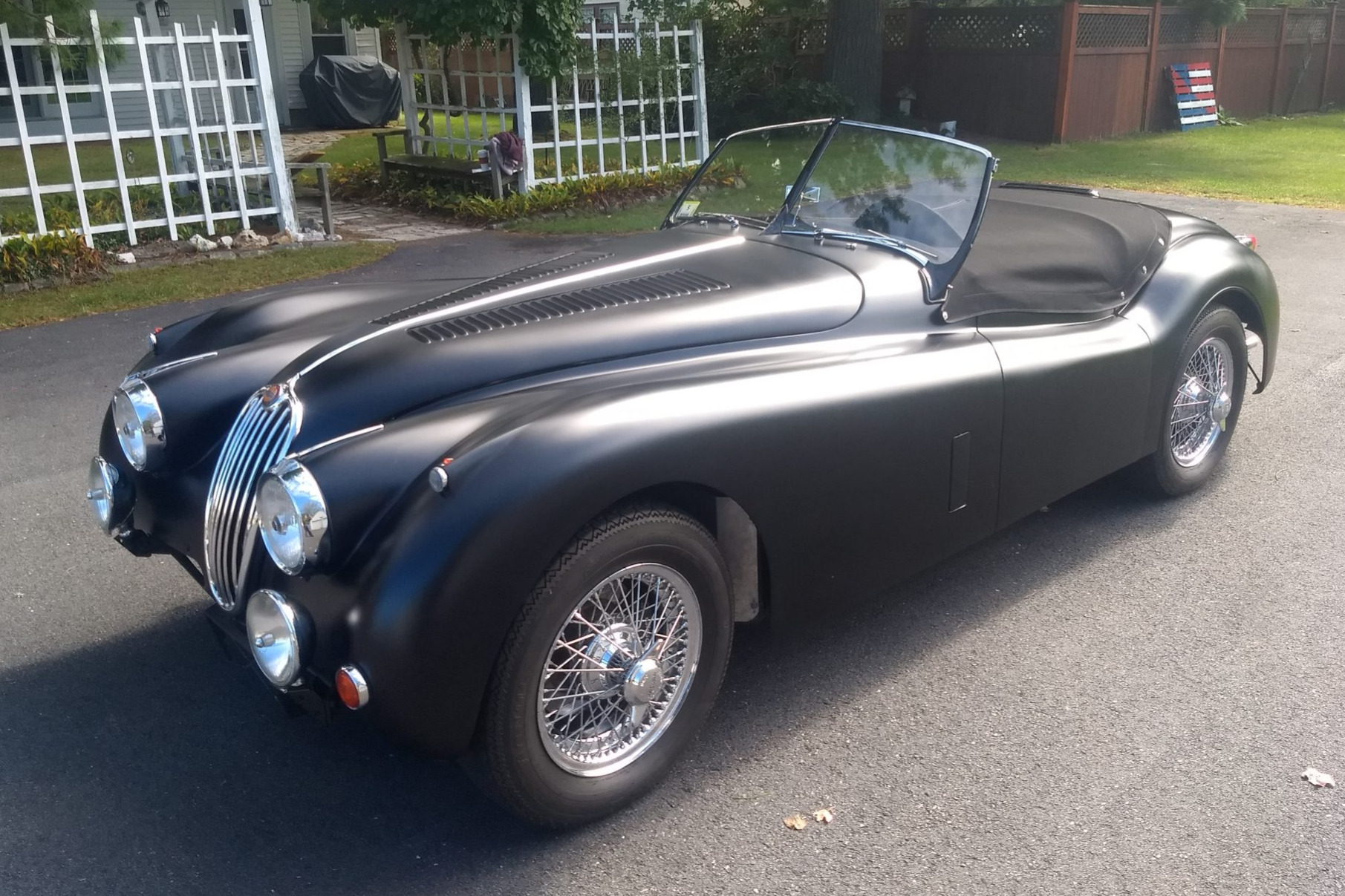 Chrome-finished 16” wire wheels feature knock-off hubs and are wrapped in Firestone Cavalino Sport 200 tires. A full-size spare is stored in the trunk. Braking is provided by power-assisted four-wheel discs with Wilwood calipers up front, while additional equipment is said to include power steering and stainless steel brake lines.