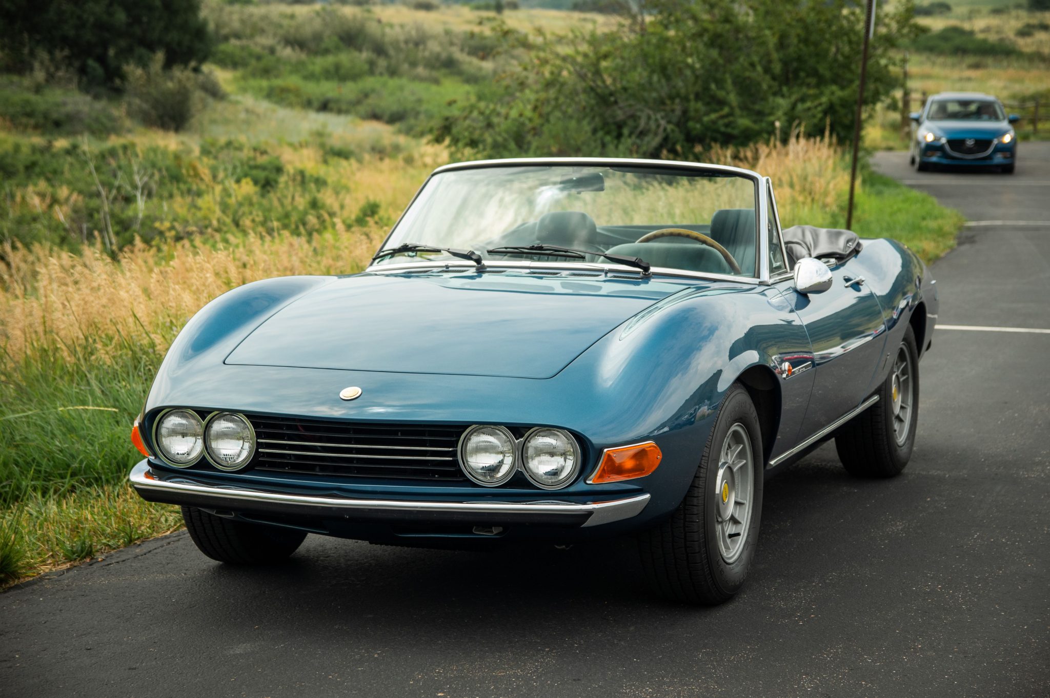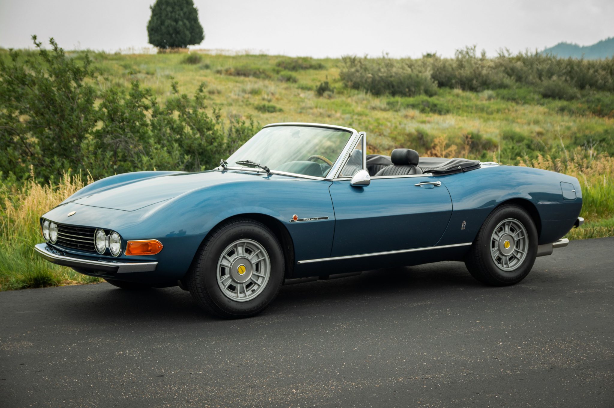 Cromodora 14” wheels wear yellow Dino-branded center caps and are wrapped in 205/70 BFGoodrich Radial T/A rubber. A matching spare with an older Michelin tire is stored in the trunk. The revised Dino 2400 models were equipped with an independent rear suspension, and stopping power is provided by four-wheel disc brakes.