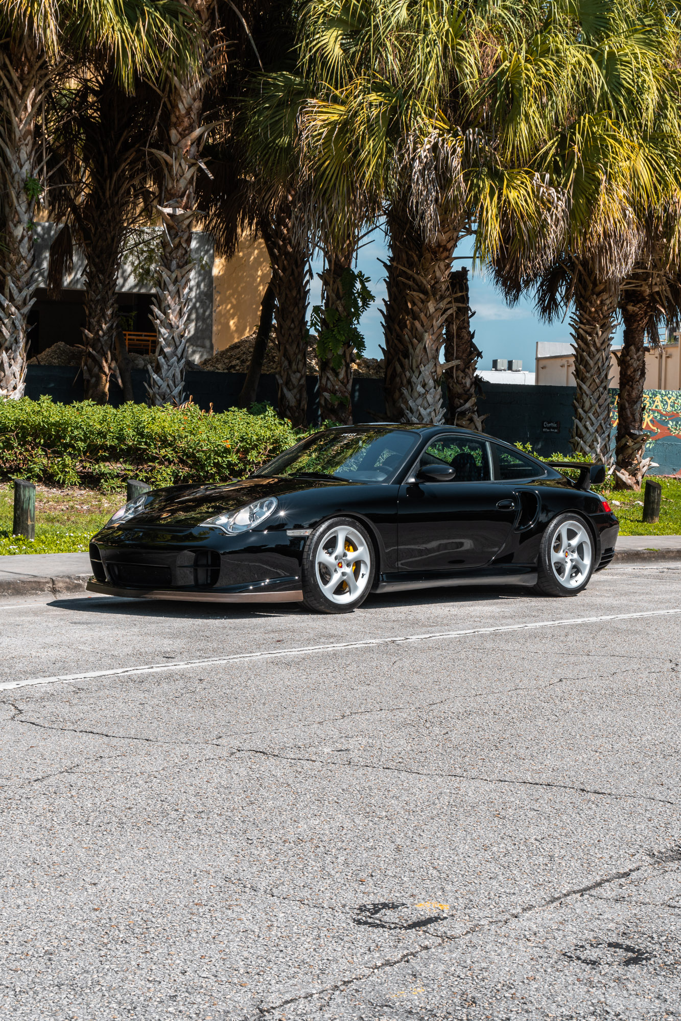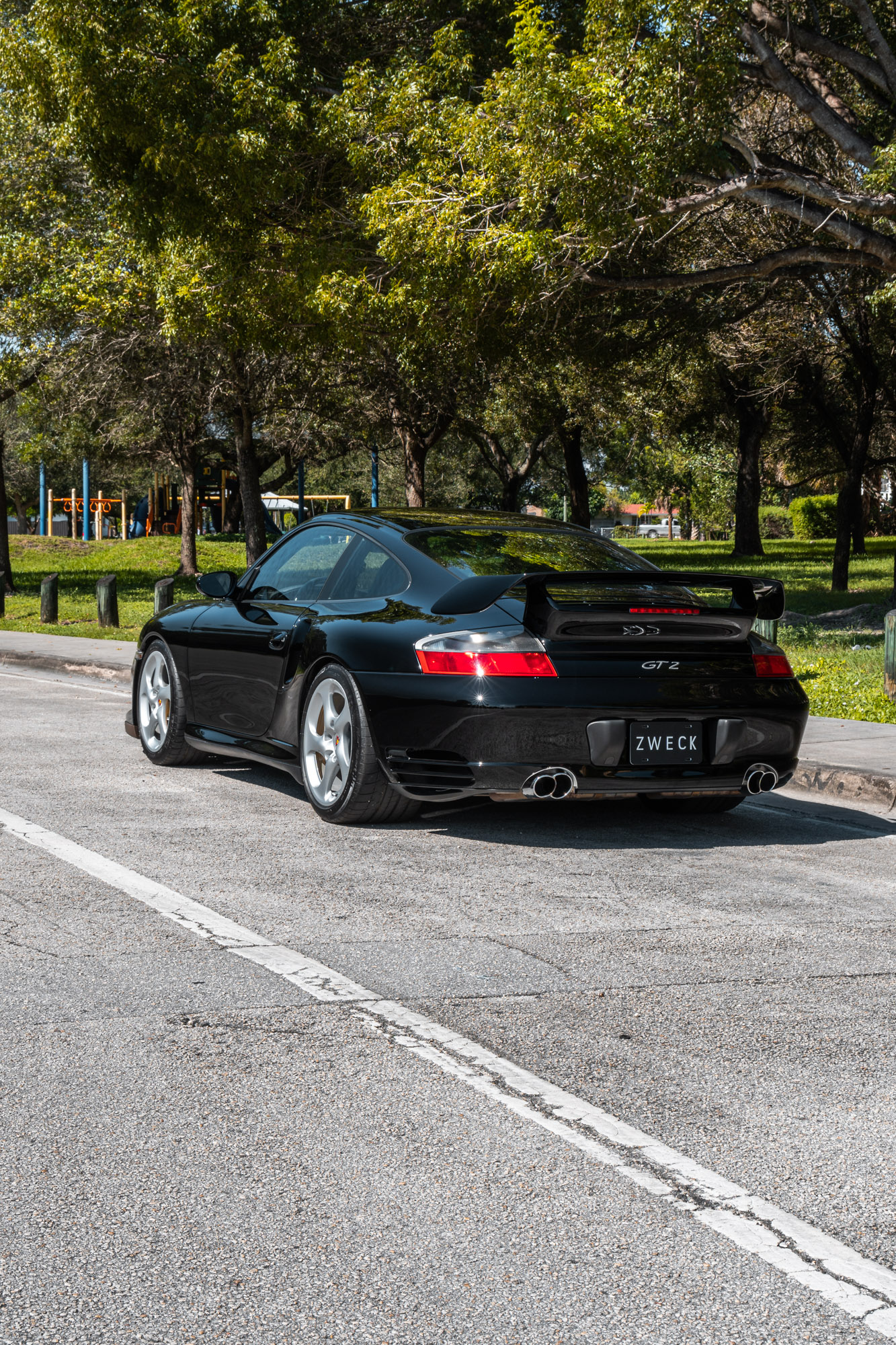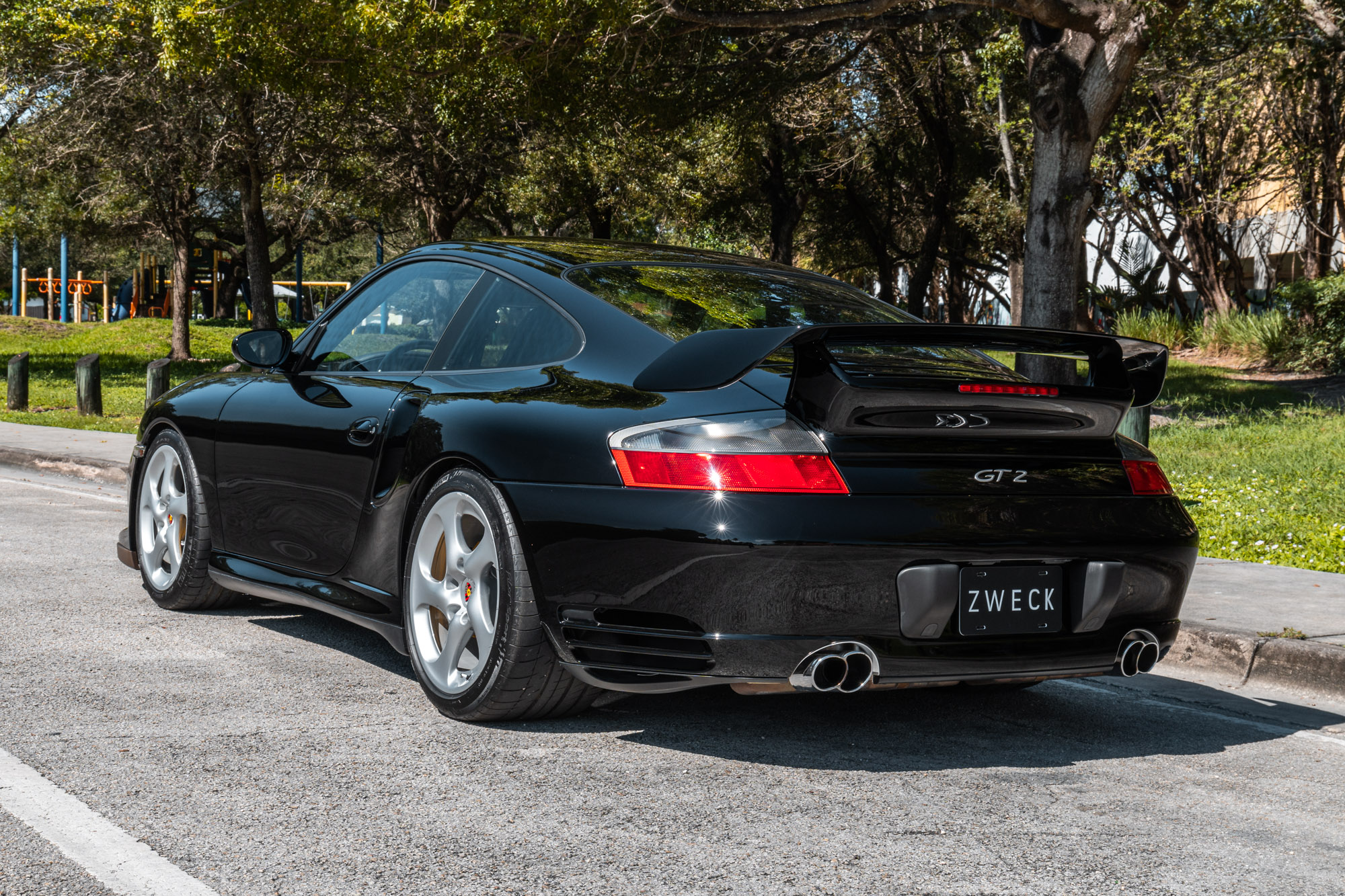 Staggered-width 18″ wheels feature Porsche-crest center caps as well as 235/40 front and 315/30 rear Michelin Pilot sport tires. The GT2 weighed approximately 220lbs less than the contemporary Turbo and was equipped with adjustable suspension components as well as stiffer springs and stabilizer bars. Porsche Stability Management was not available, and Porsche Ceramic Composite Brakes were standard.