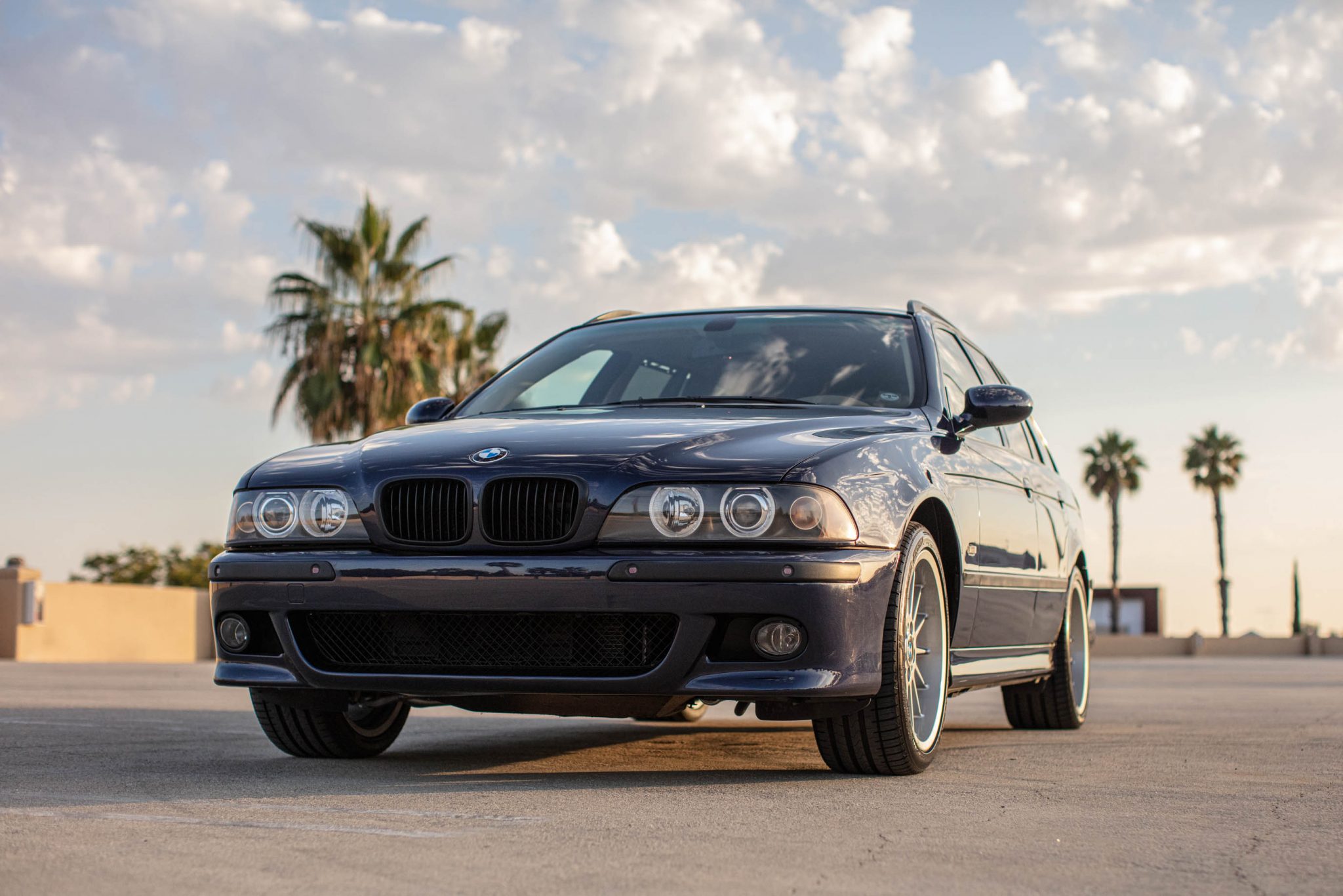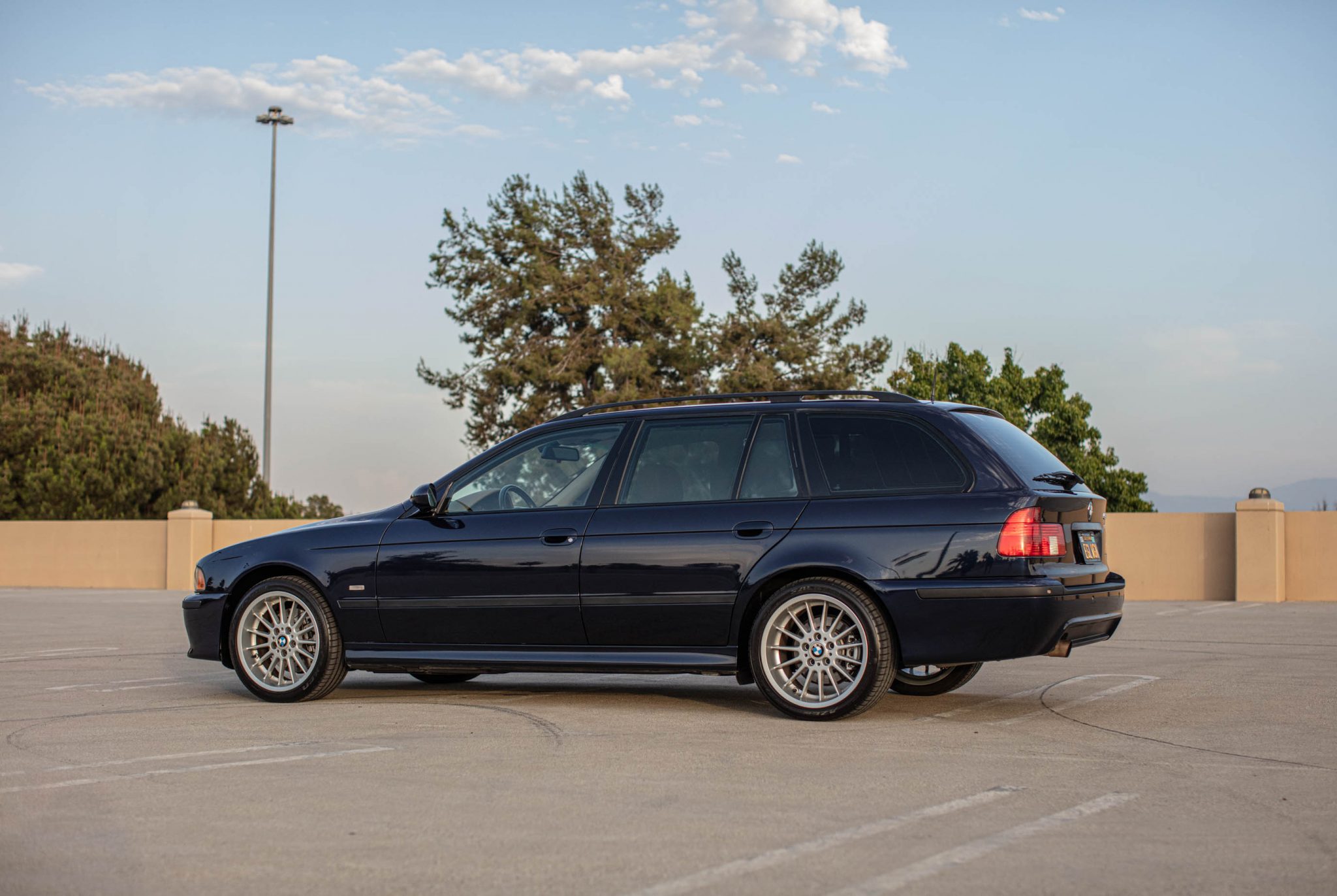 Staggered-width 18″ Style 32 wheels that were sourced from an E38 7-series are wrapped in Falken Azenis FK510 tires. The car is equipped with Dynamic Stability control and sport suspension. Slotted and cross-drilled brake rotors are fitted up front.