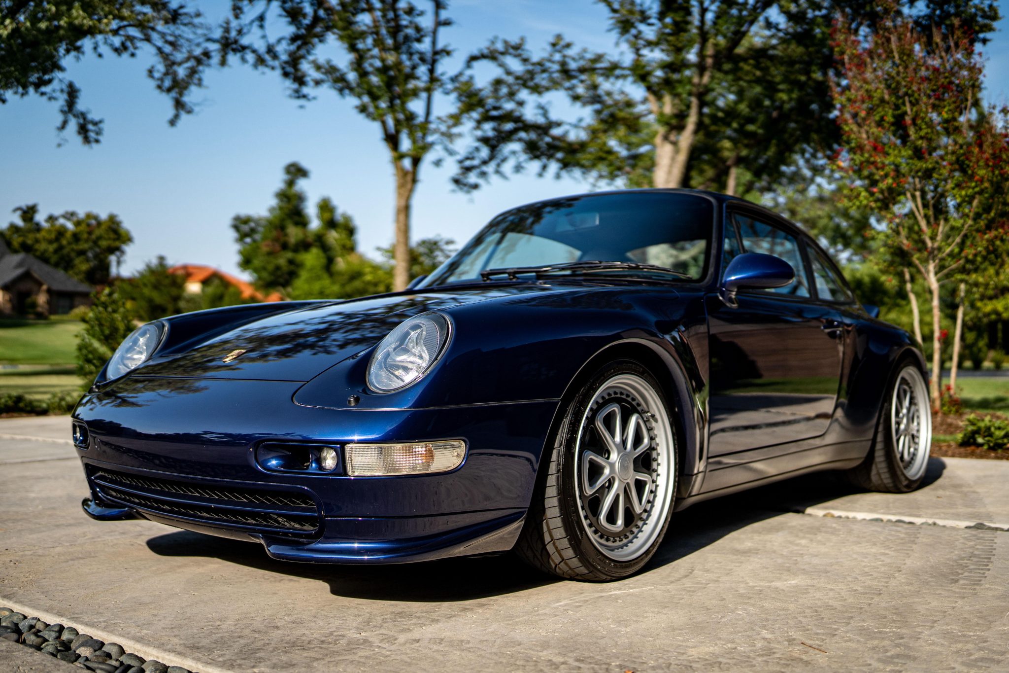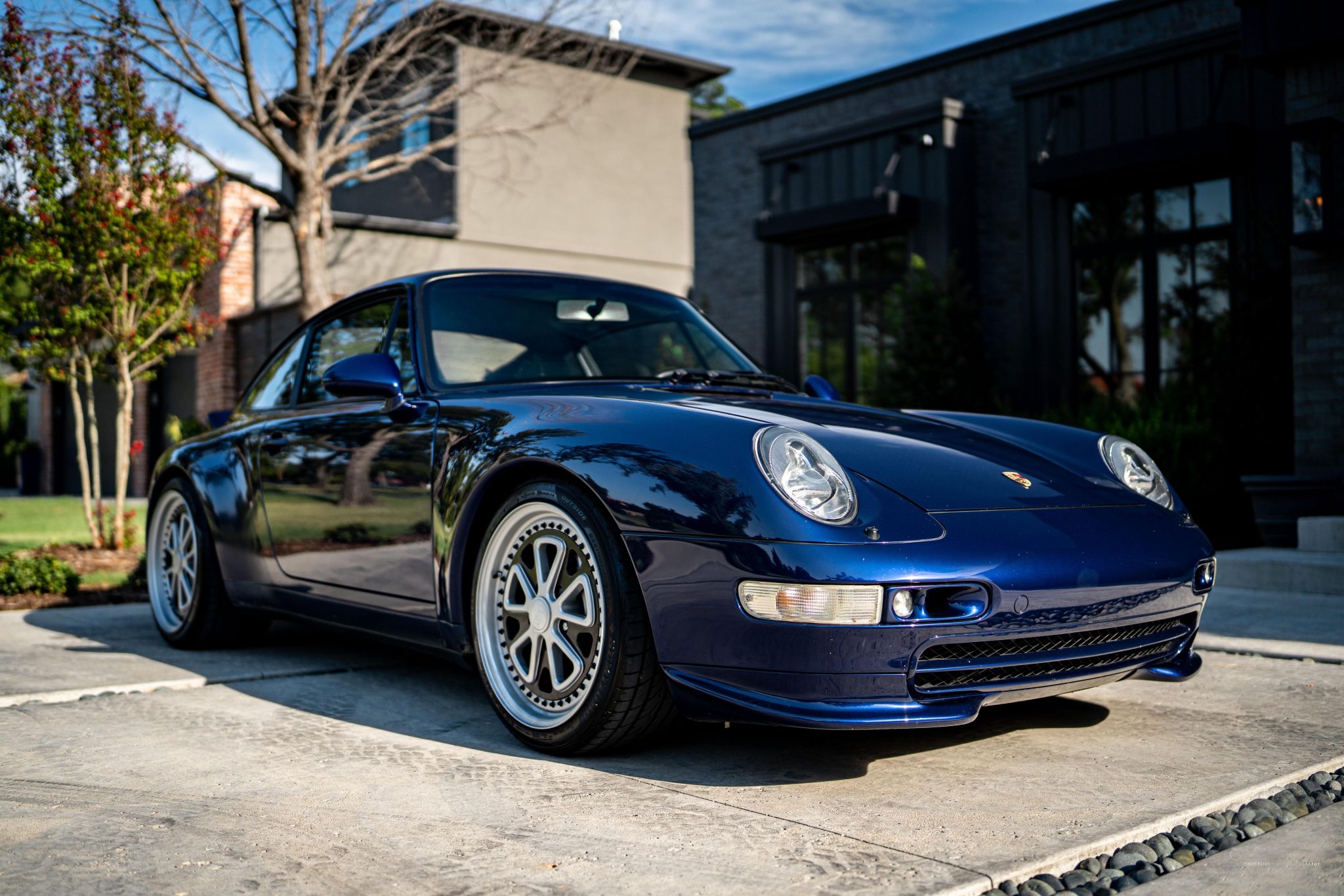 Forged 18×8.5″ Fifteen52 Outlaw 001 three-piece wheels are wrapped in 225/40 front and 285/30 rear Sumitomo HTR ZIII tires that show dates codes from 2015 and 2016. Braking is handled by Porsche-branded four-piston calipers fitted over cross-drilled rotors, and brake cooling ducts are installed with Turbo S-style front inlets. The suspension has been modified with KW Variant 1 adjustable coilovers, a Racing Dynamics aluminum front upper strut tower brace, and an H&R rear sway bar.