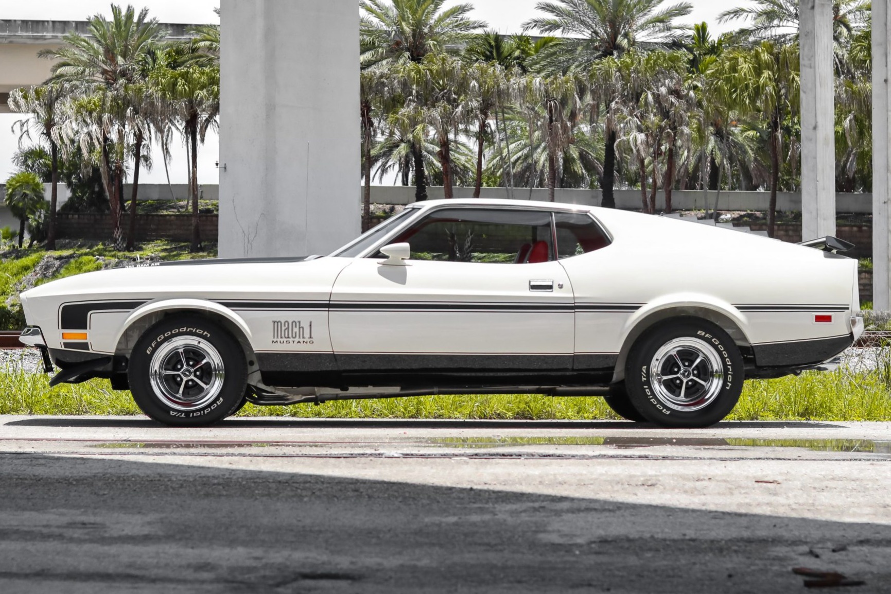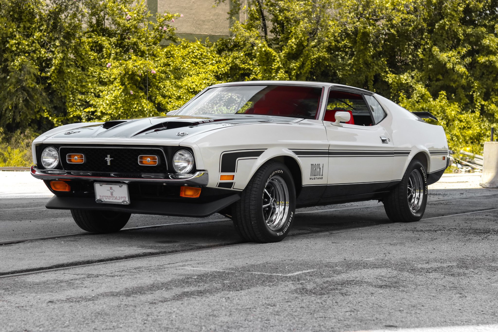 Chrome 15″ Magnum 500-style wheels with black recesses are mounted with 235/60 BFGoodrich Radial T/A tires. The car is equipped with power-assisted steering as well as front disc and rear drum brakes.