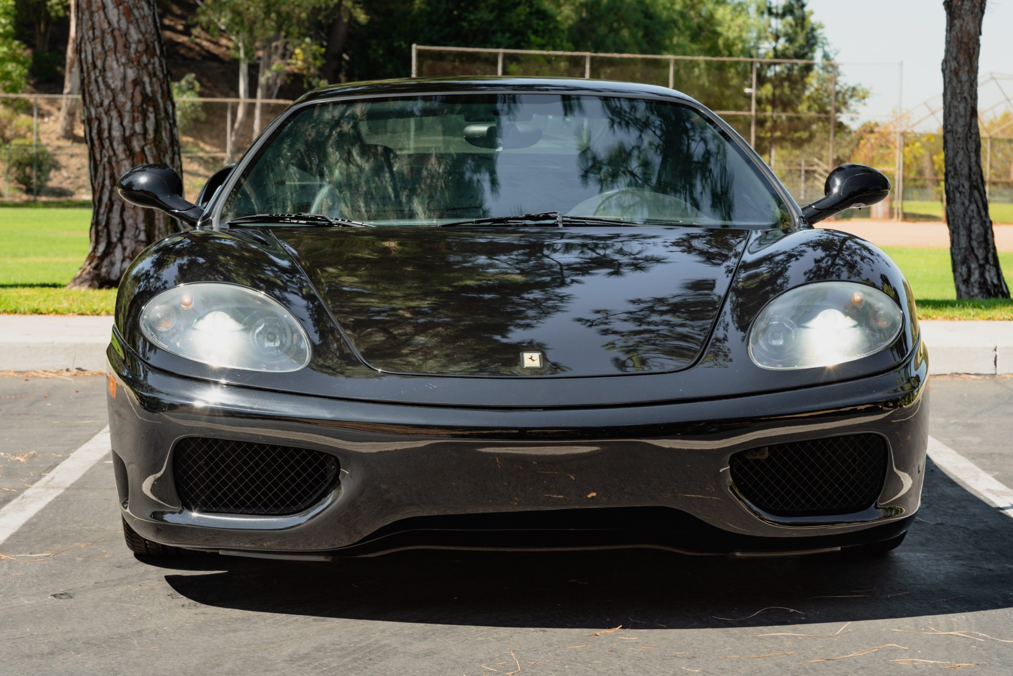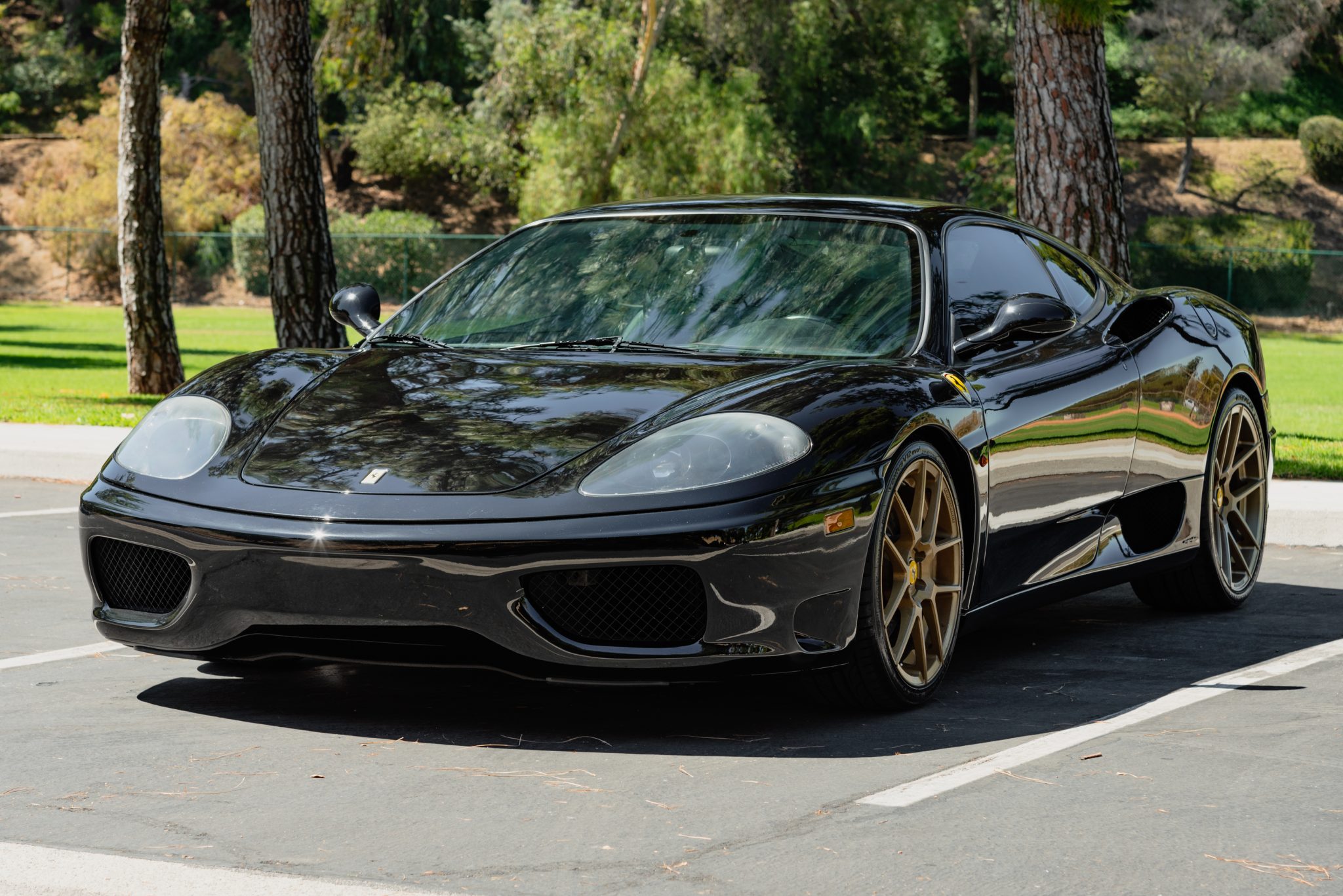 Avant Garde M510 19″ and 20″ wheels are wrapped in 235/35 front and 285/30 rear Hancook Ventus V12 Evo2 tires that show date codes from 2014. Braking is handled by red Ferrari-branded four-piston calipers and cross-drilled rotors at all four corners. The factory staggered-width 18″ modular wheels wrapped in 225/40 and 275/40 Sumitomo HTR tires are included in the sale and shown in the gallery below.