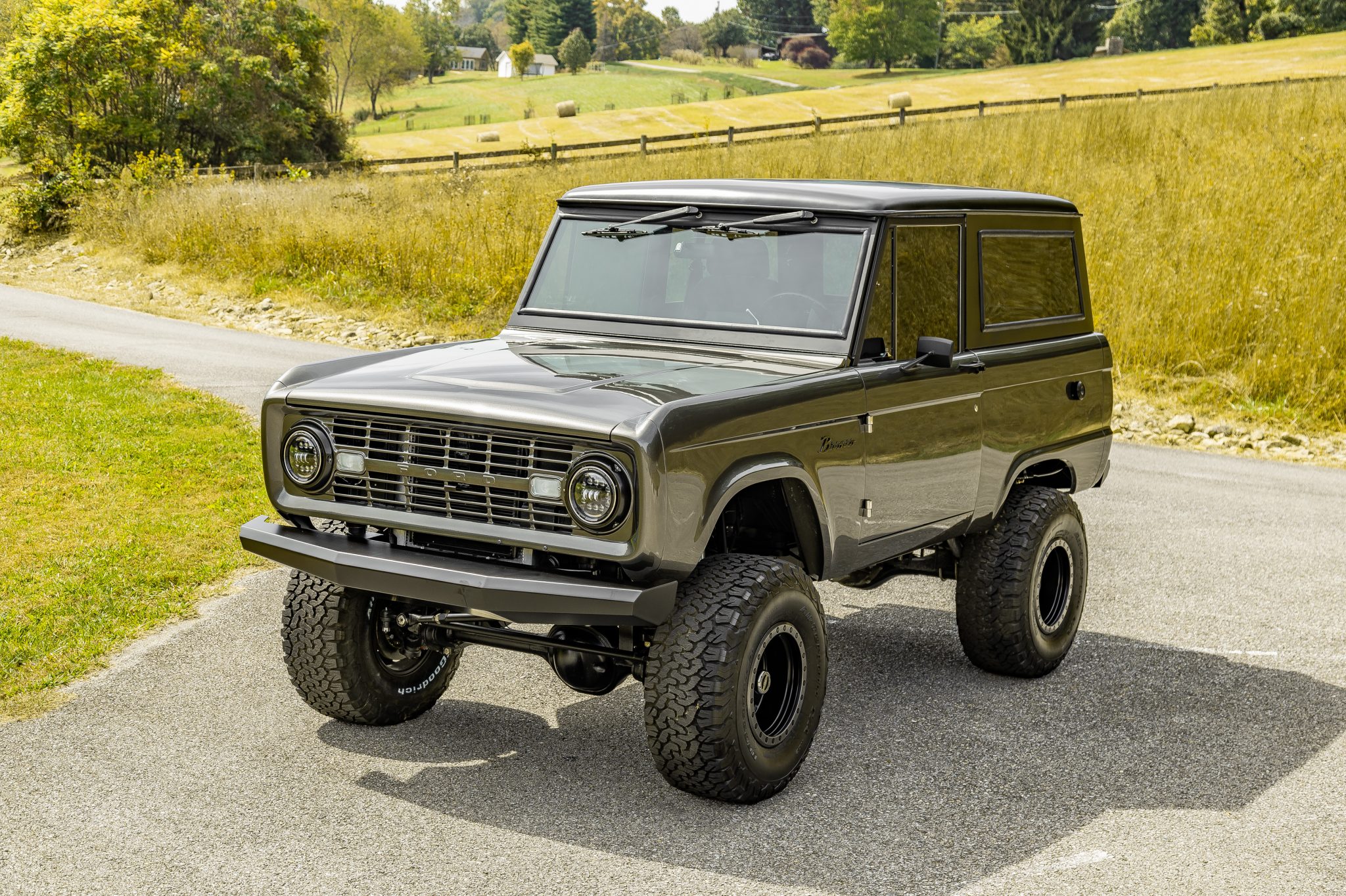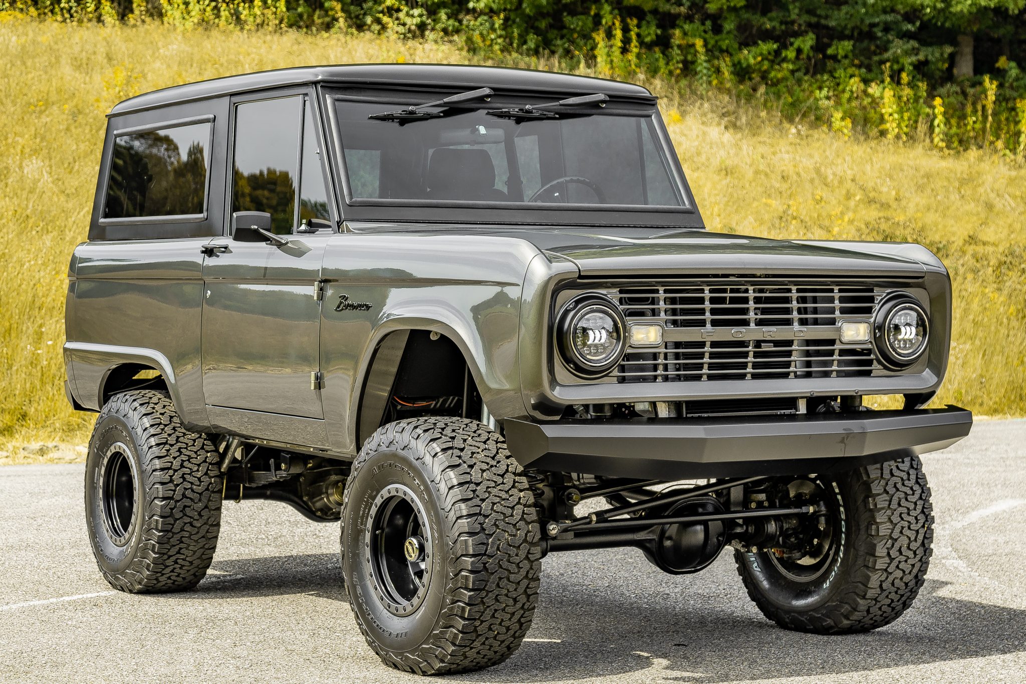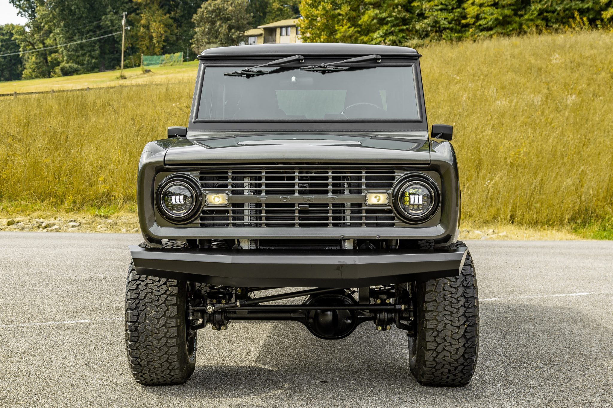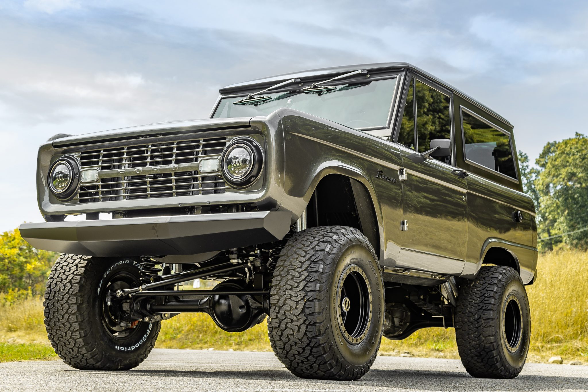 Fuel Offroad Anza D557 15″ alloy wheels are wrapped in 33×12″ BFGoodrich All-Terrain T/A K02 tires that show date codes from 2017. The Krawlers Edge T2 chassis features a James Duff Monster suspension kit with a 3.5″ lift, Bilstein 5125 shocks, Stage 2 long-travel shock hoops, Stage 2 rear shock mounts, a James Duff 14-piece bushing kit, 11-leaf soft-ride springs, a track bar drop-bracket, u-bolts, urethane shackle bushings, a Borgeson power-steering box, Warn locking hubs, Wilwood four-wheel disc brakes with hydroboost, and UltraBEND brake lines.