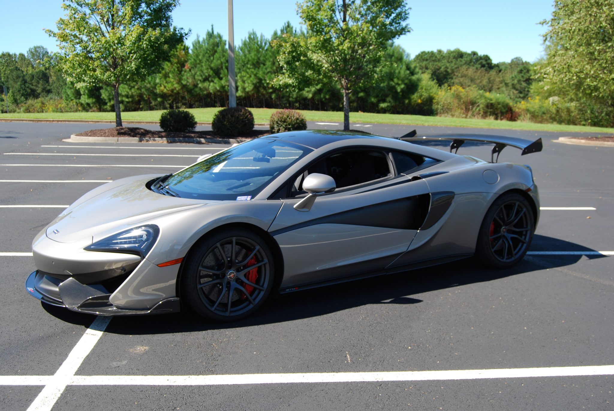 Staggered-diameter 19″ and 20″ lightweight wheels with a Stealth finish wear 225/35 front and 285/35 rear Pirelli P Zero tires. The suspension features McLaren Adaptive Damping and multiple driver-selectable modes as well as a vehicle lift system. Braking is handled by carbon-ceramic discs paired with red-finished calipers. The brake pads and fluid were changed in 2020.
