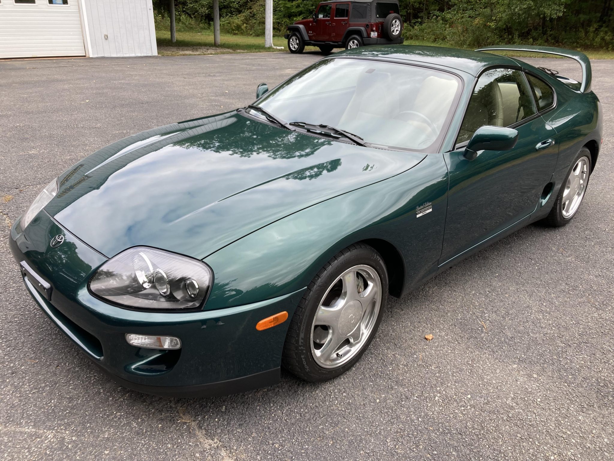 Staggered-width 17″ chrome-finished wheels are wrapped in Michelin Pilot Sport tires measuring 235/45 up front and 255/40 out back. Braking is handled by four-wheel anti-lock discs paired with Supra-branded calipers, and the car is equipped with traction control. A spare wheel is located in the trunk along with a tool kit. Curb rash is visible on the wheels, as shown in the gallery below.