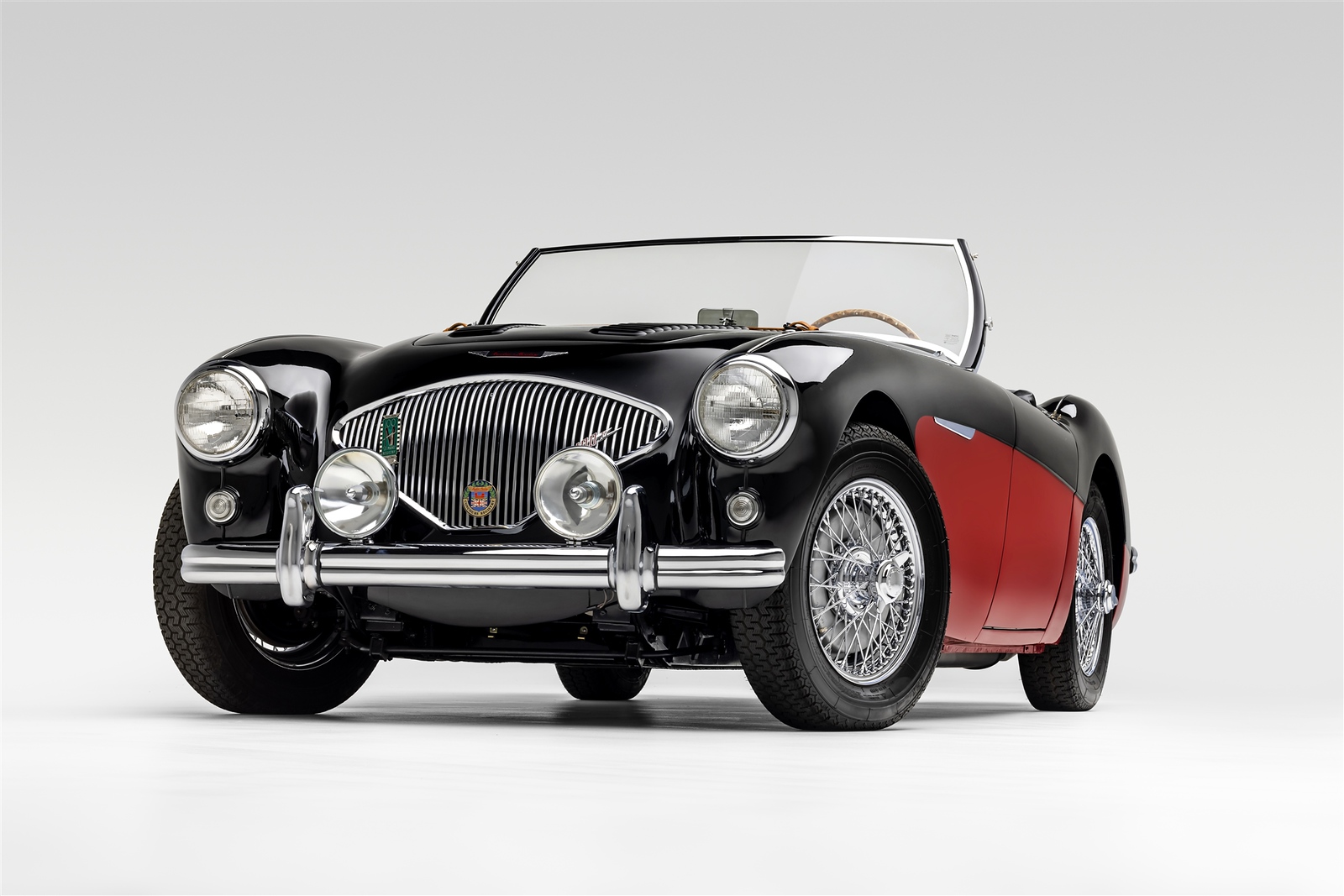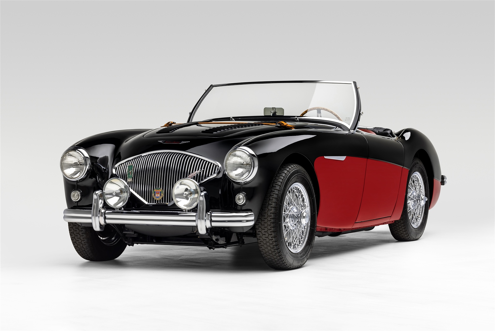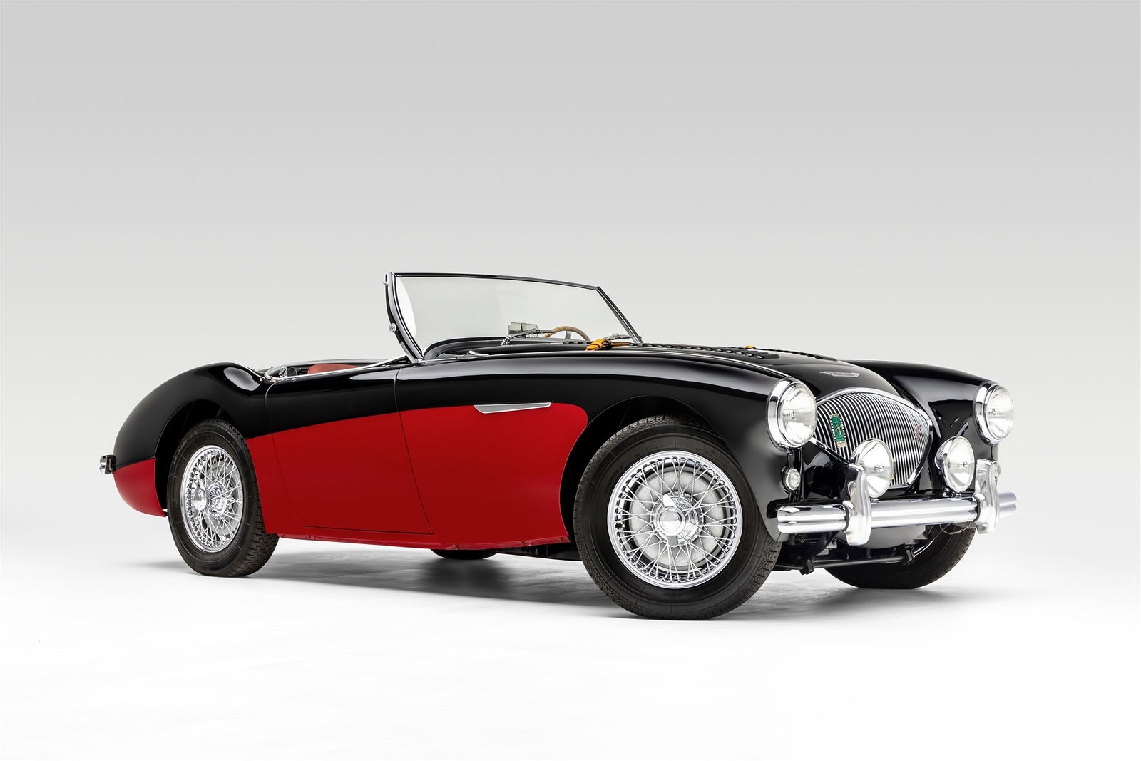 Chrome 15″ wire wheels with knock-off center caps wear tubeless 165 Michelin tires. Braking is handled by drums at all four corners. The steering box pinion seal was replaced in May 2021.