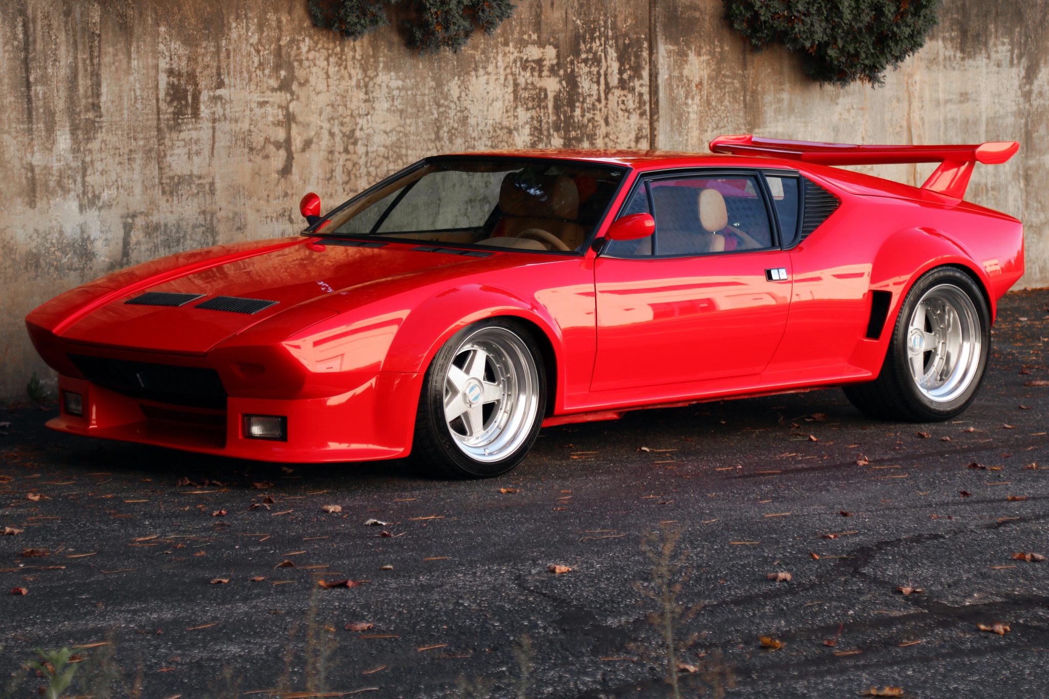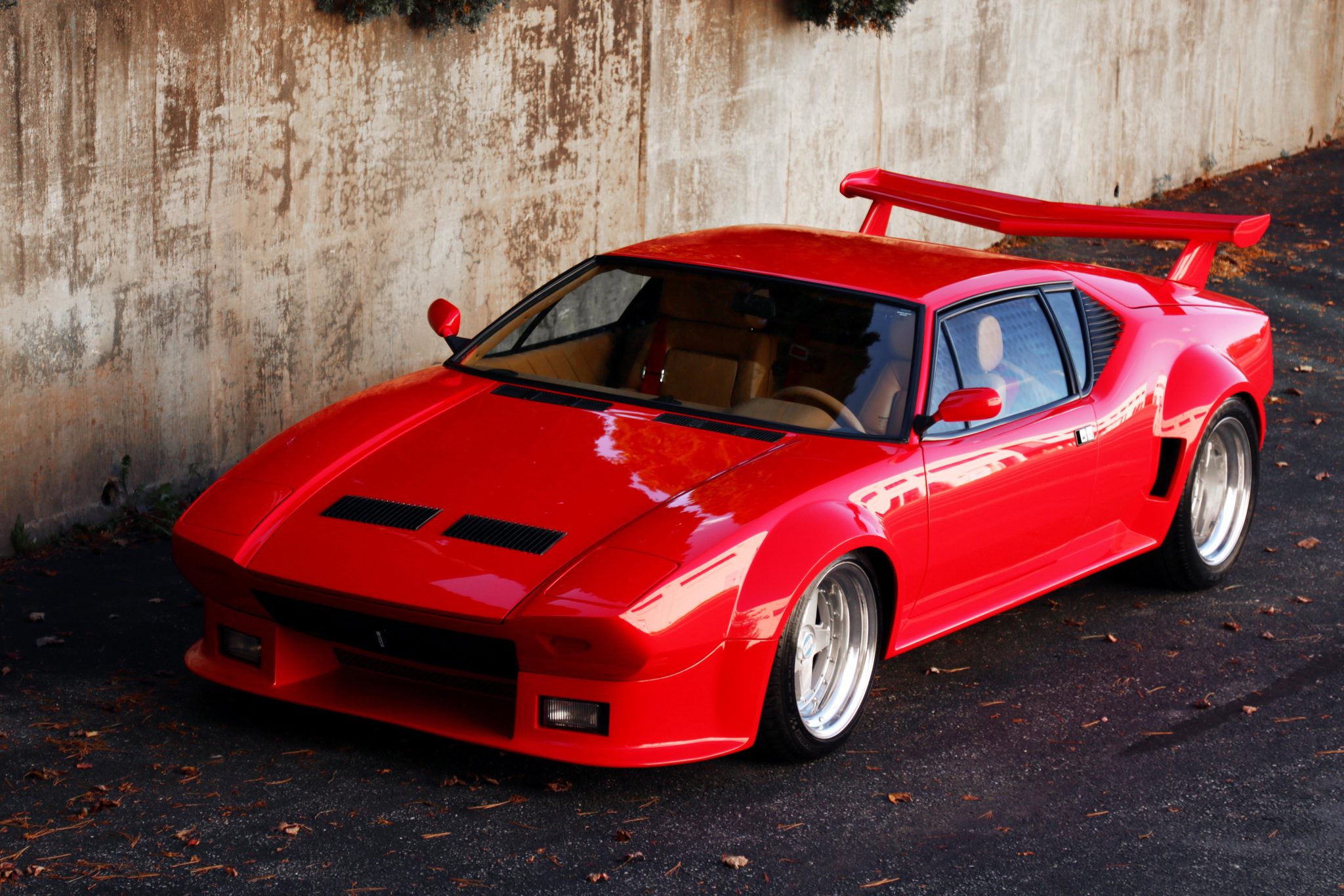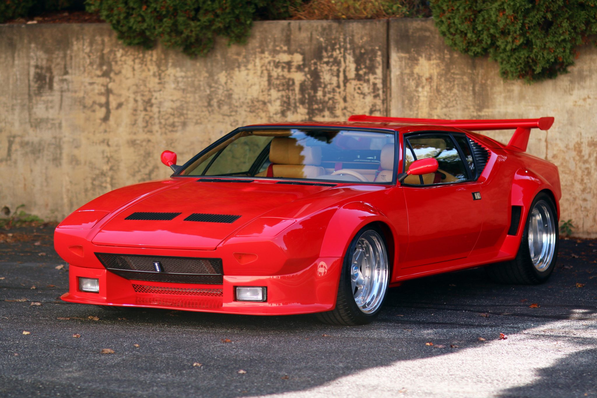 Polished 17” multi-piece Etoile wheels are mounted with 275/40 front and 335/35 rear Michelin Pilot tires. Stopping power is provided by Wilwood four-piston calipers with cross-drilled rotors at all four corners, and the suspension is fitted with Koni coilovers.