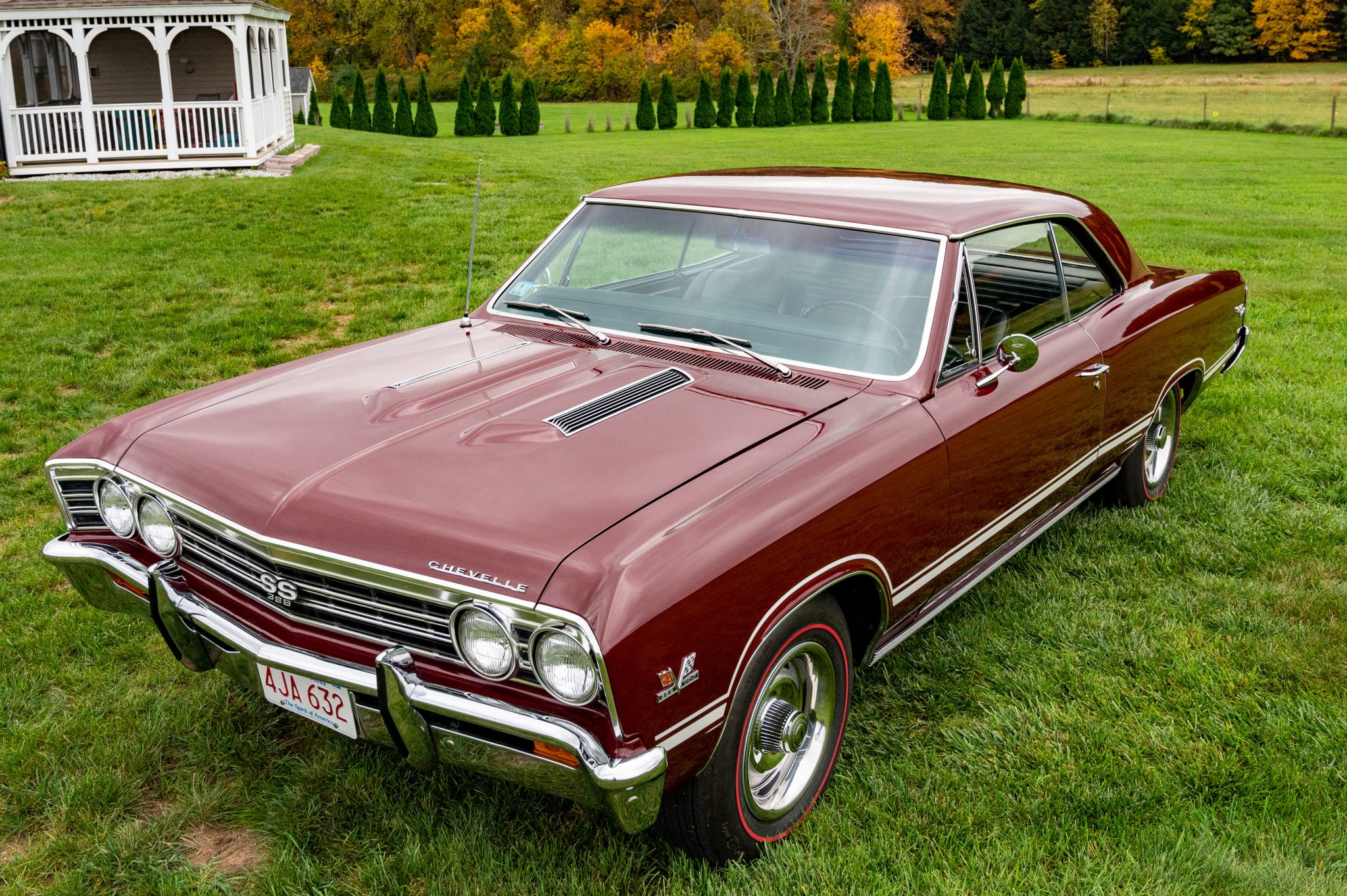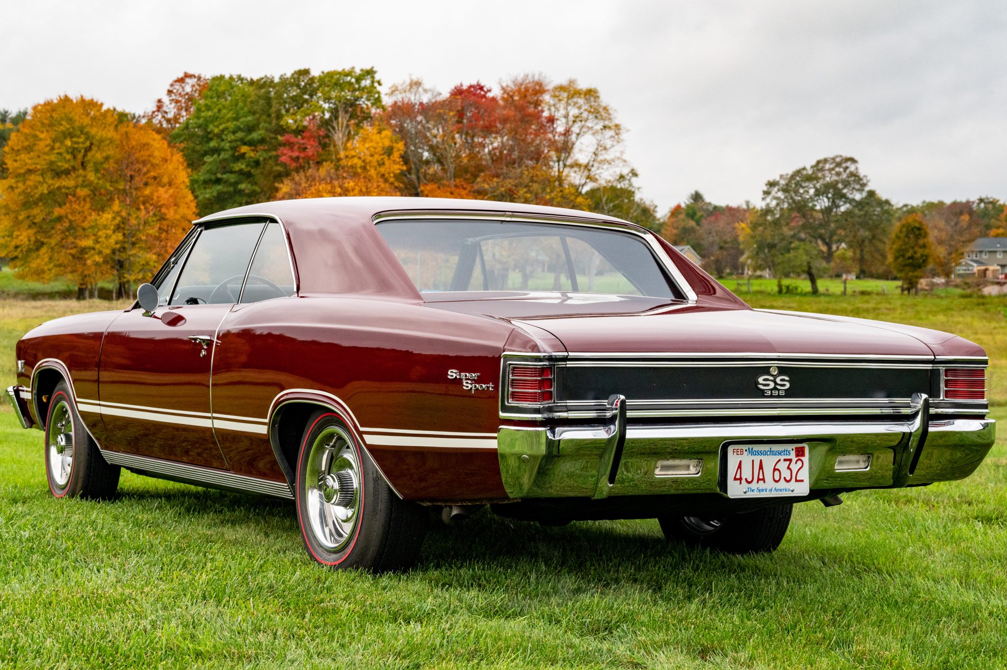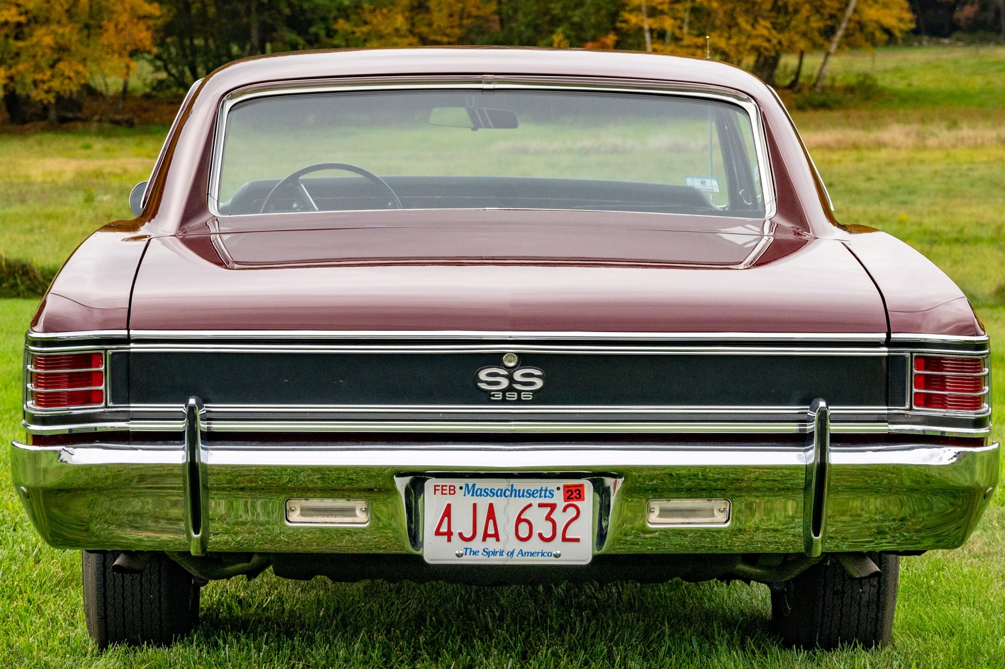 Reproduction 15″ Rally wheels wear chrome beauty rings as well as Chevrolet hubcaps and are mounted with FR70-15 Firestone redline tires. Stopping power is provided by manual drum brakes at all four corners.