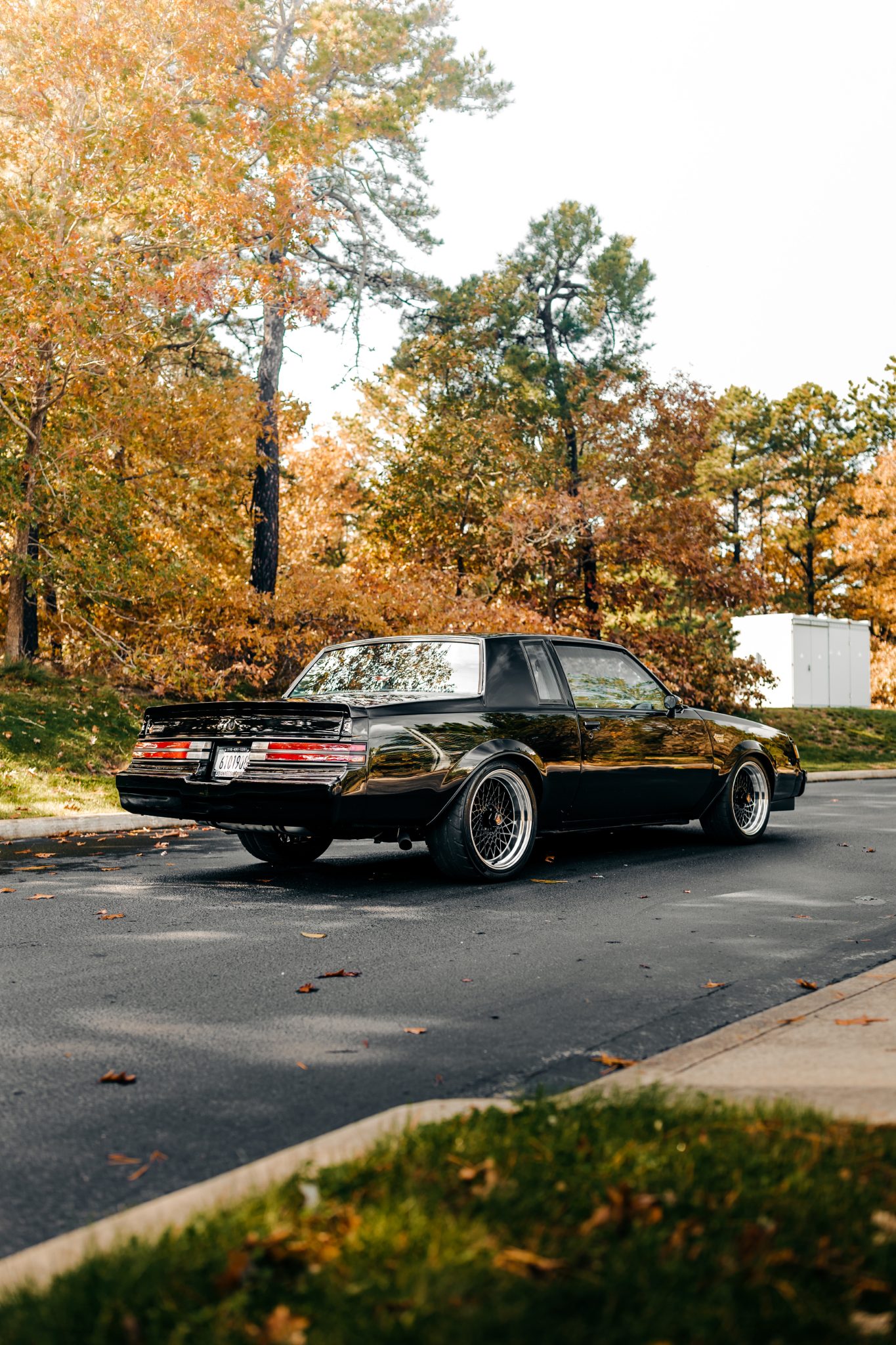 G-Bodyparts GNX-style crosslace wheels measure 18×8.5″ up front and 19×9.5″ out back. They wear a mix of Mickey Thompson Street Comp and Nitto NT05 tires. The rear brakes have been converted to discs, and equipment is said to include an SSBC-USA brake kit, a hydroboost conversion, a Wilwood master cylinder, and a Right Stuff Firebird brake proportioning valve. Recent work is said to have included a Neverlift Engineering race alignment along with the installation of Aldan American Phantom coilovers, UMI Performance rear adjustable upper control arms, Kirban Performance body bushings and hardware, UMI rear strut brace, BavWerkshop custom tubular rear frame brace, BMR Suspension rear adjustable lower control and trailing arms, and an Energy Suspension Hyperflex front bushing kit.