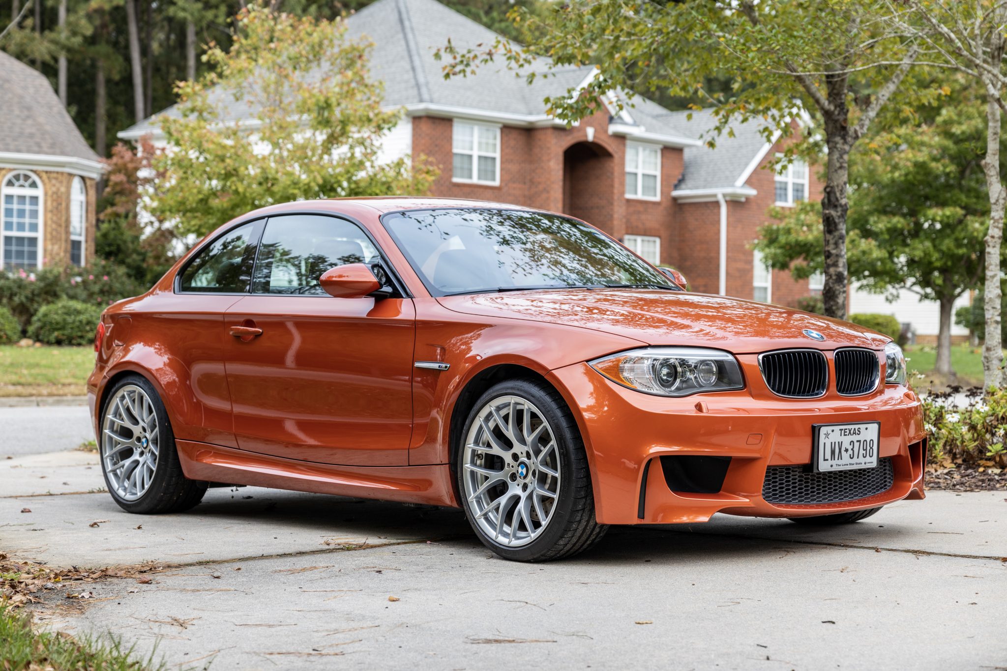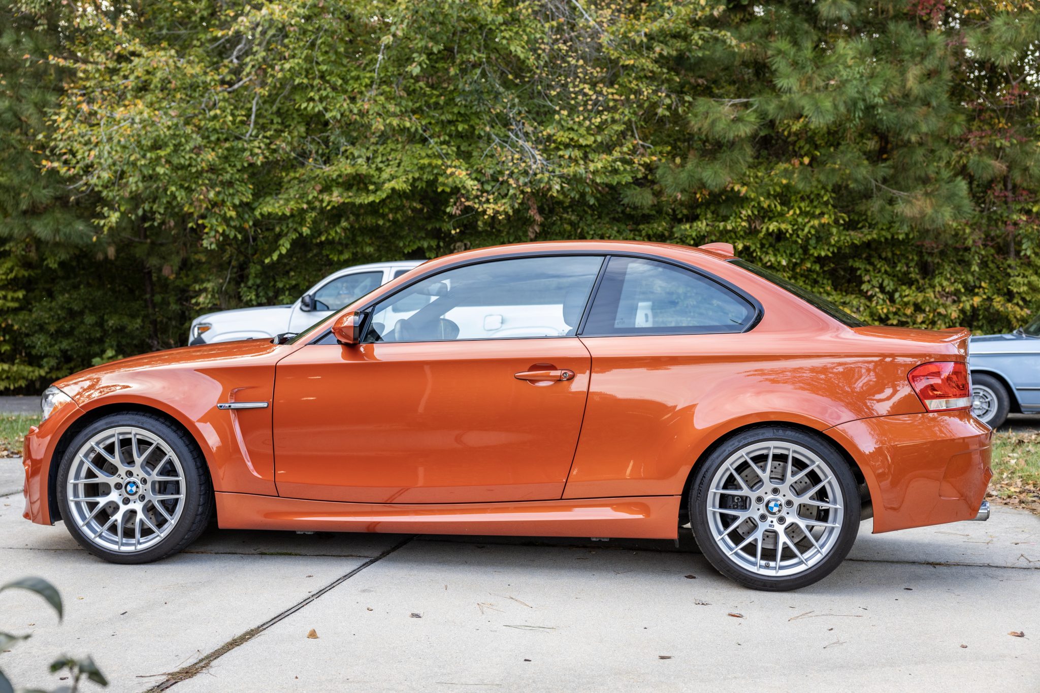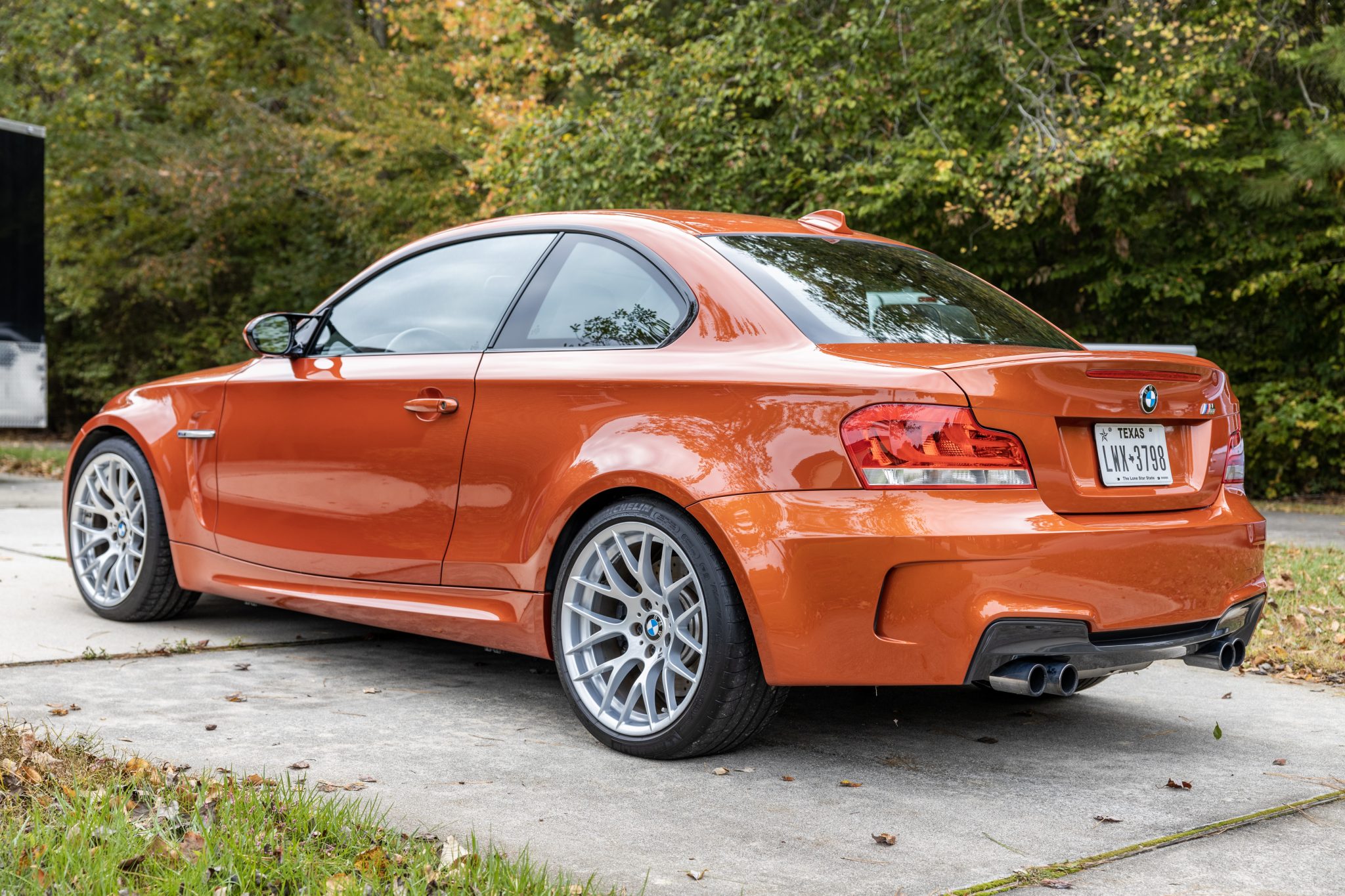 Silver-finished 19″ Style 359 alloy wheels wear Michelin Pilot Sport tires that show 2015 tires. The 1M utilizes suspension and braking components sourced from the contemporary M3, including the rear subframe.